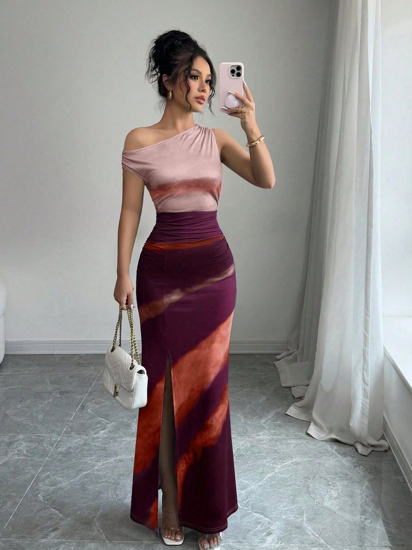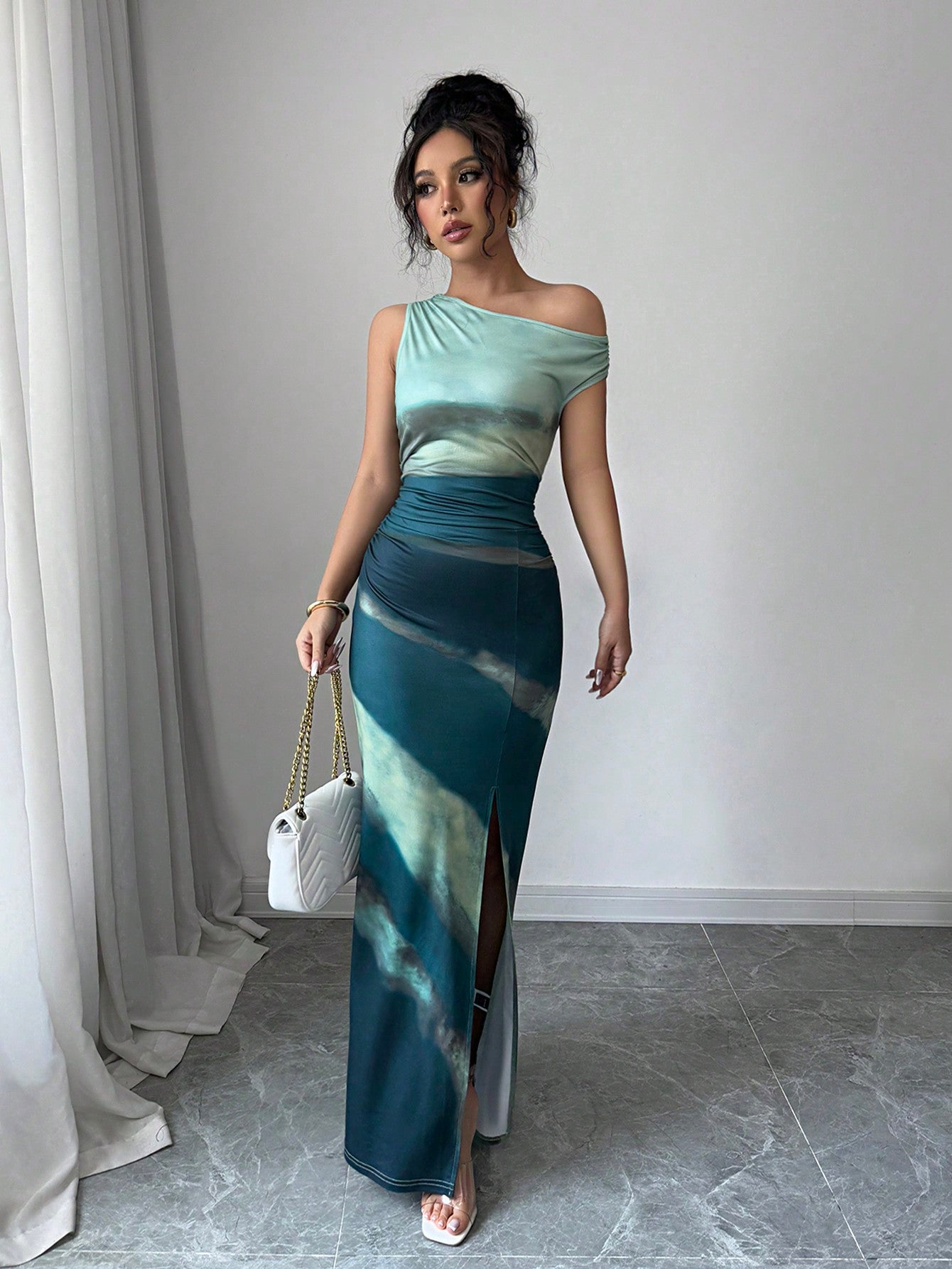 \Raffinéa Asymmetric Neckline Sleeveless Split Hem Bodycon Midi Dress