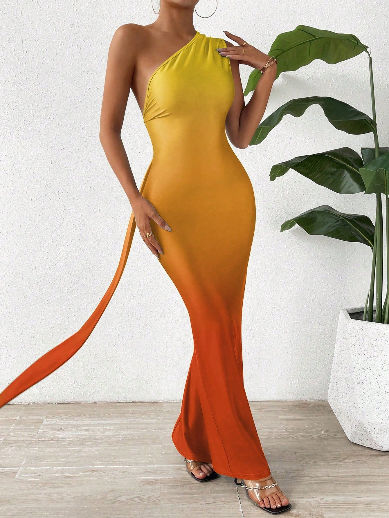 Raffinéa Asymmetrical Neckline Ombre Dress Maxi Women Outfit