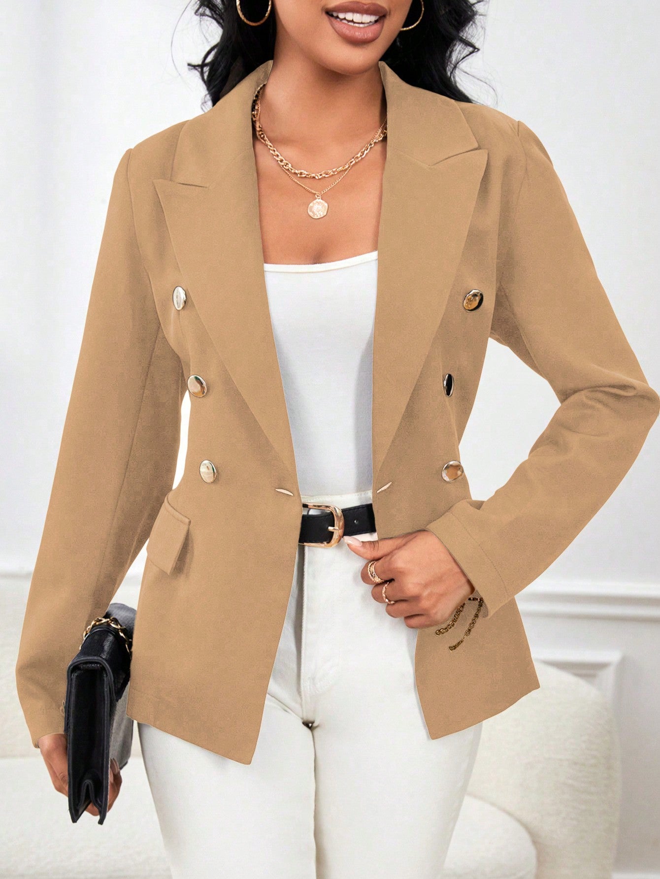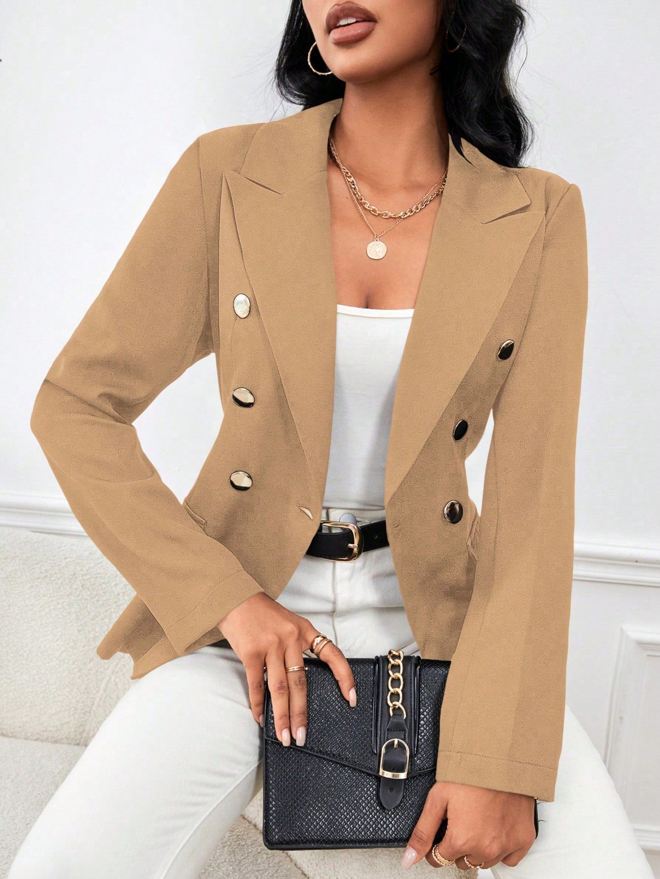 Raffinéa Ladies' Solid Color Double Breasted Blazer With Lapel Collar