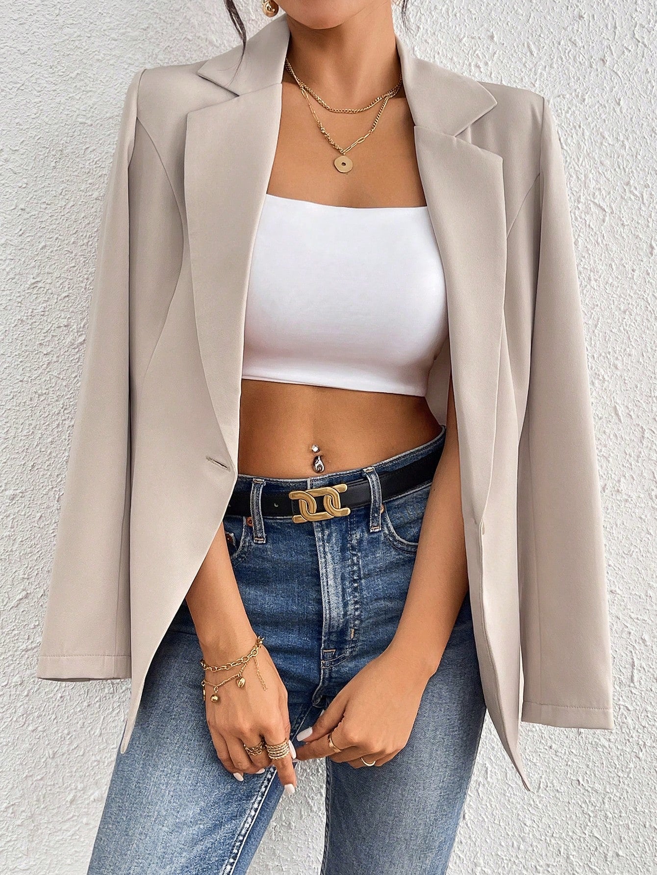 Raffinéa Plain Color Single-Breasted Work Suit Jacket With Simple Design