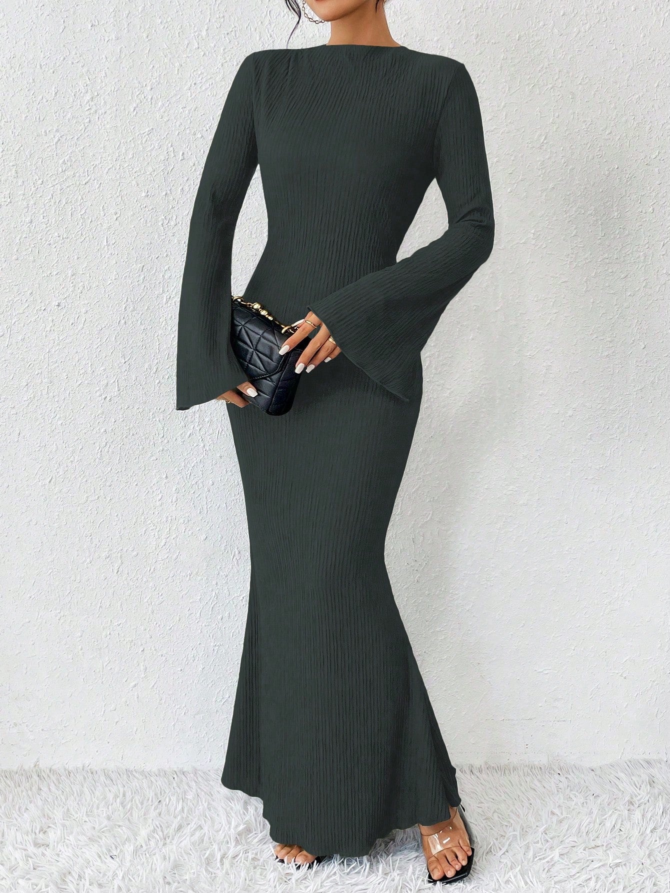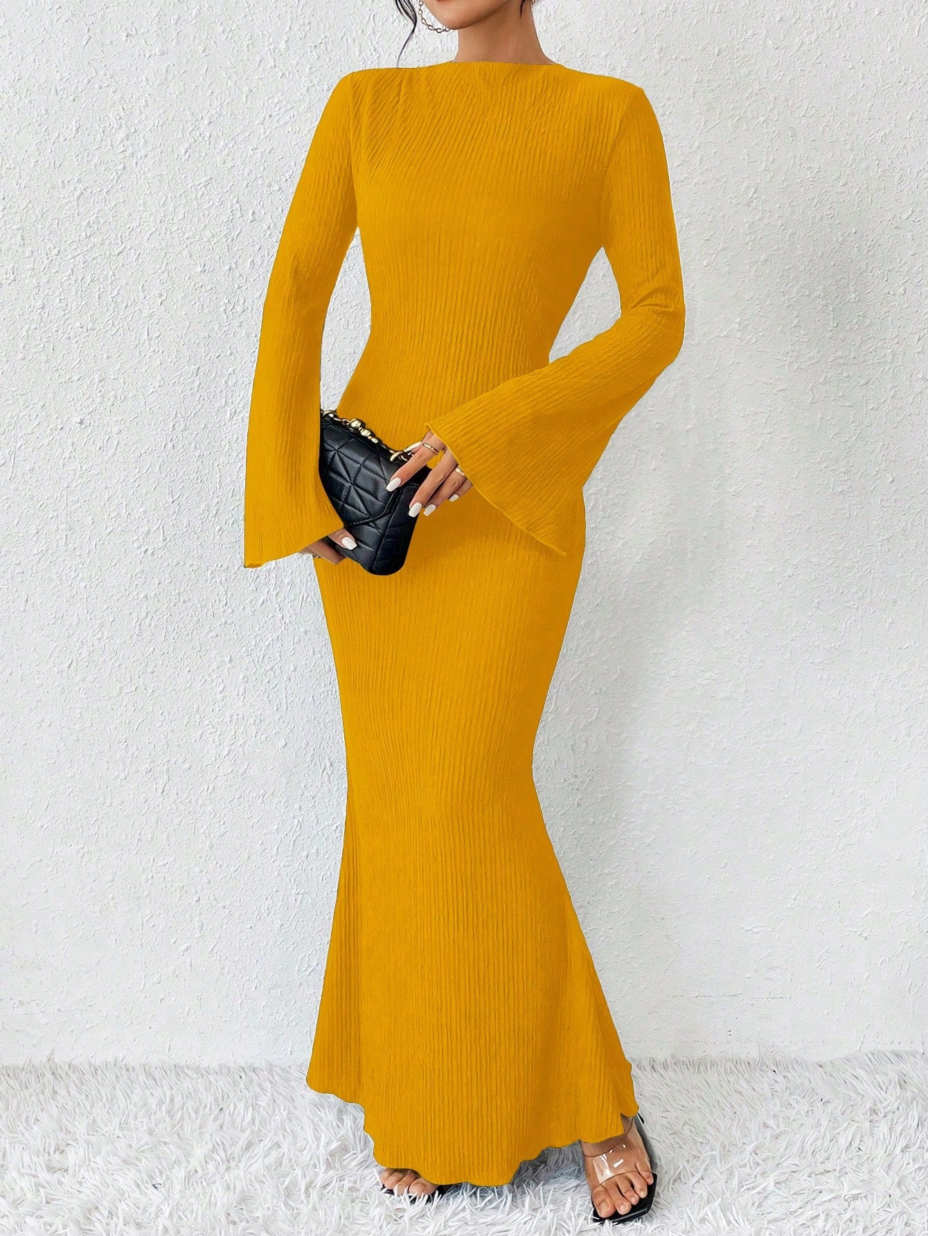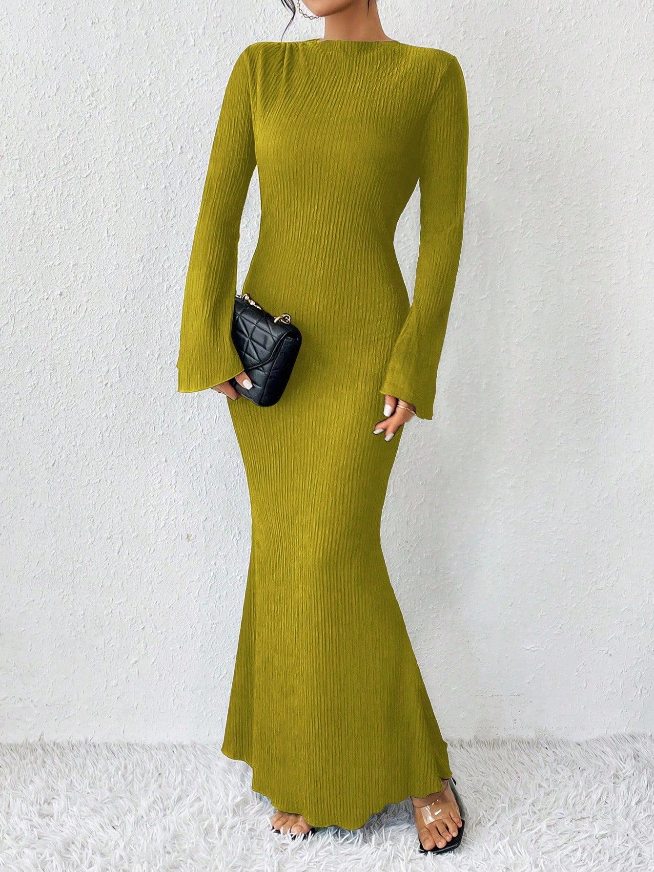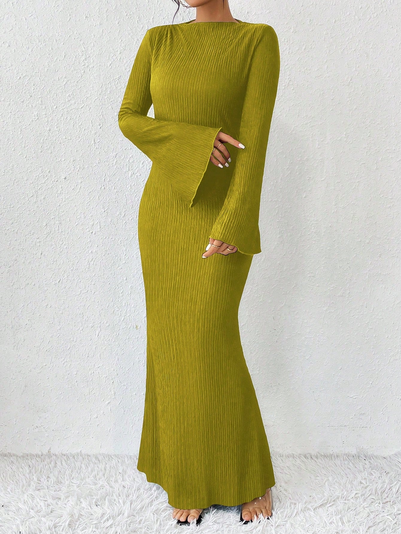 Raffinéa Solid Color Mermaid Hem Flare Sleeve Dress Maxi Women Outfit