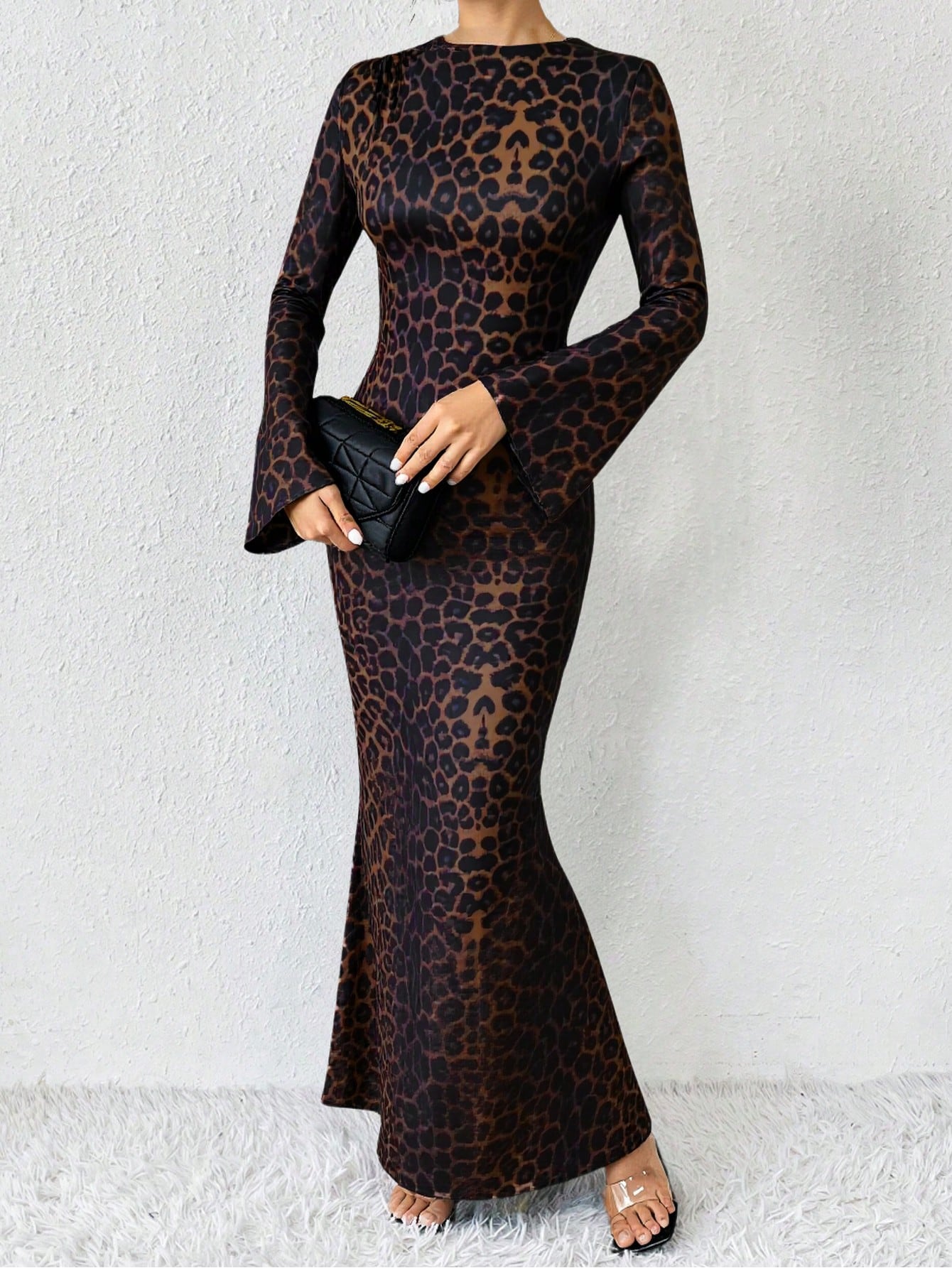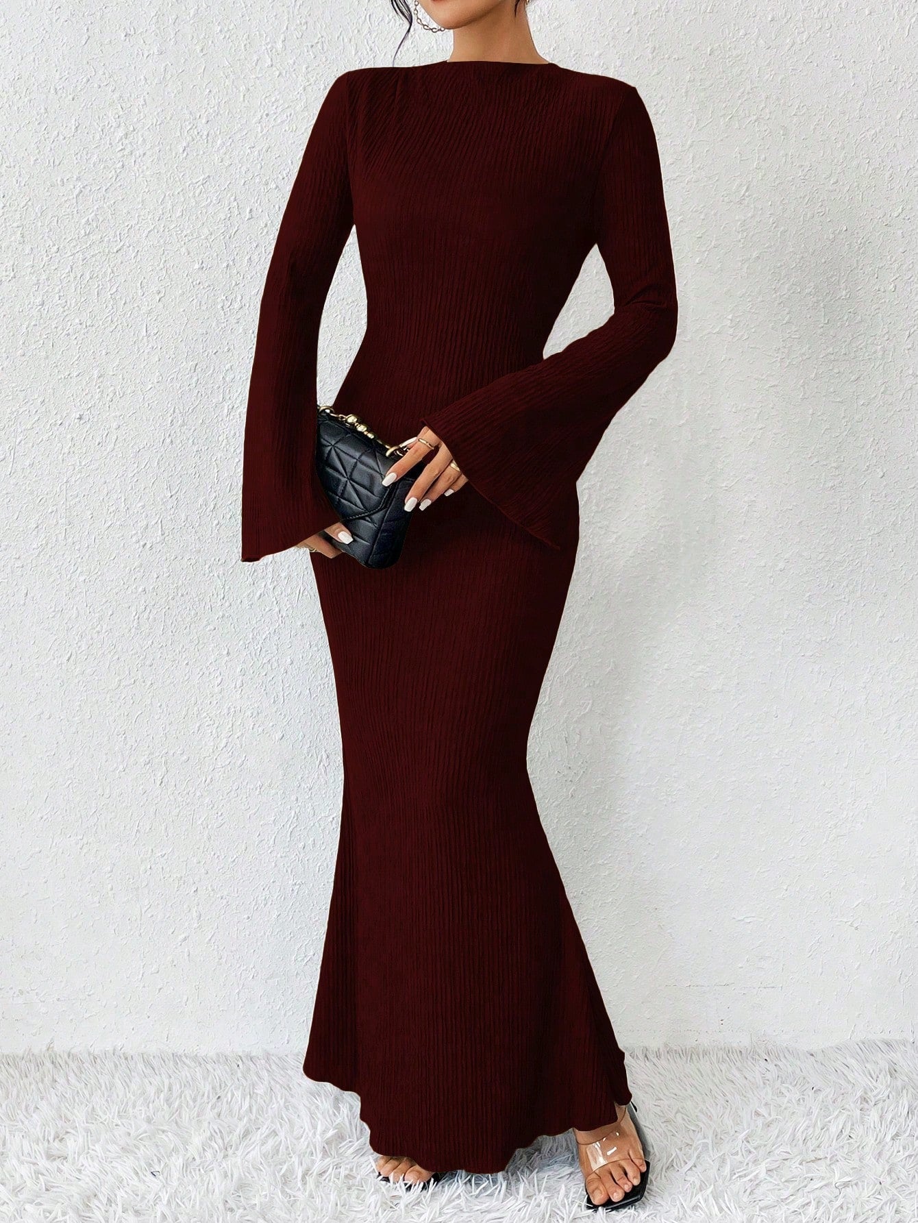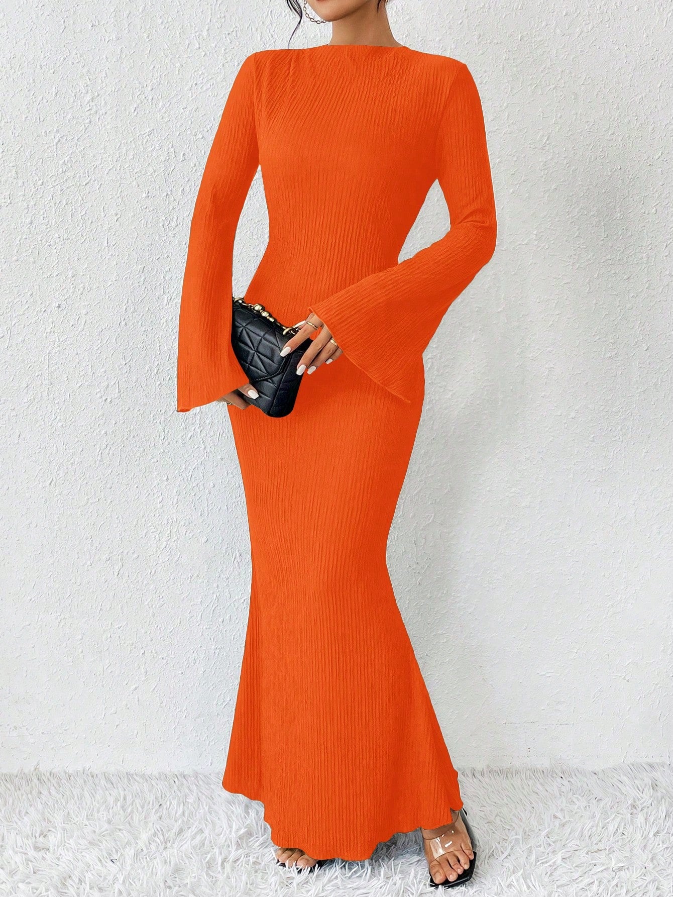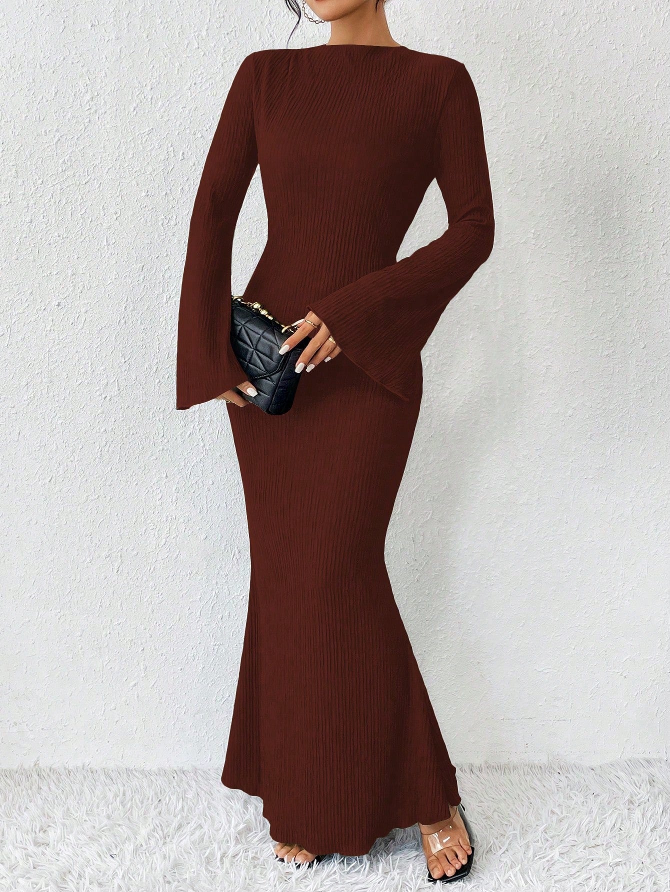 Raffinéa Solid Color Mermaid Hem Flare Sleeve Dress Maxi Women Outfit