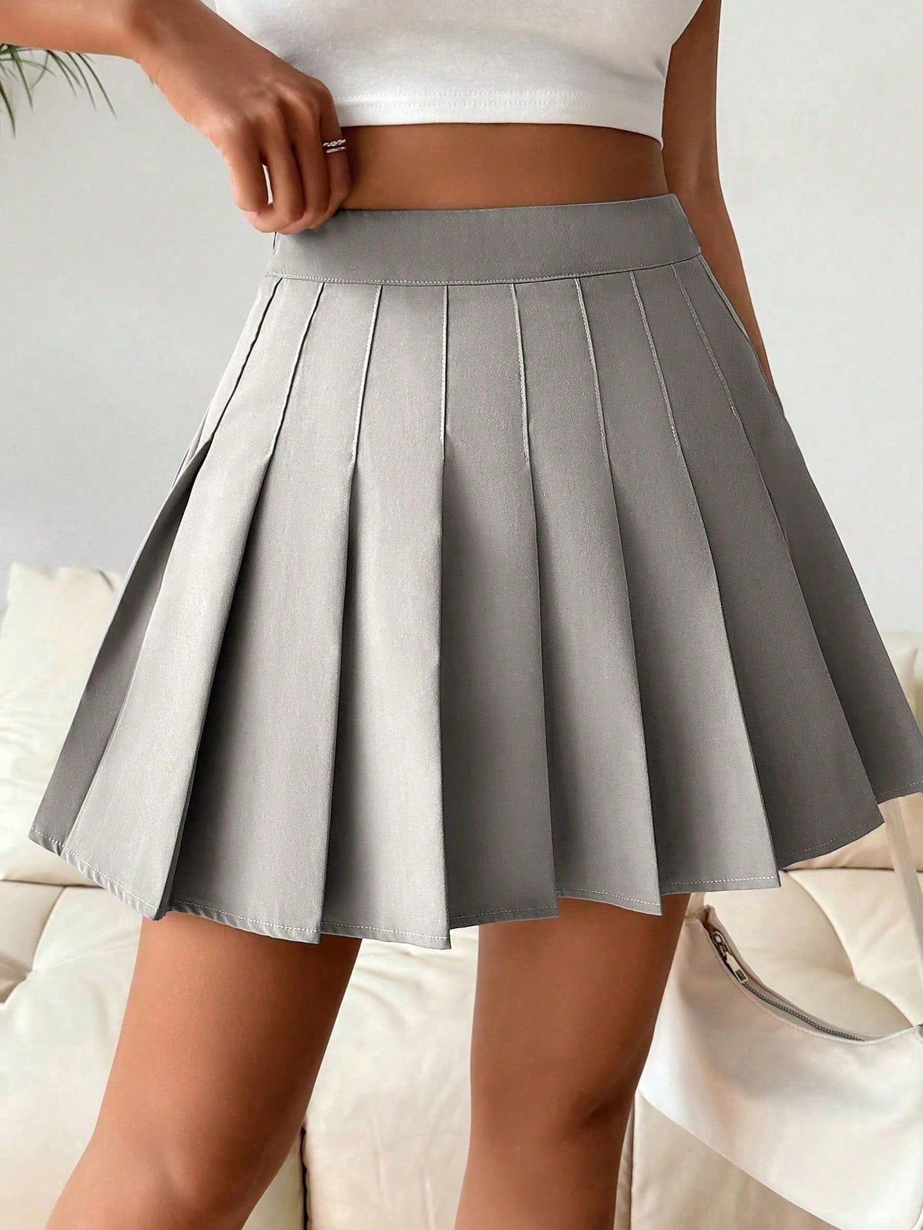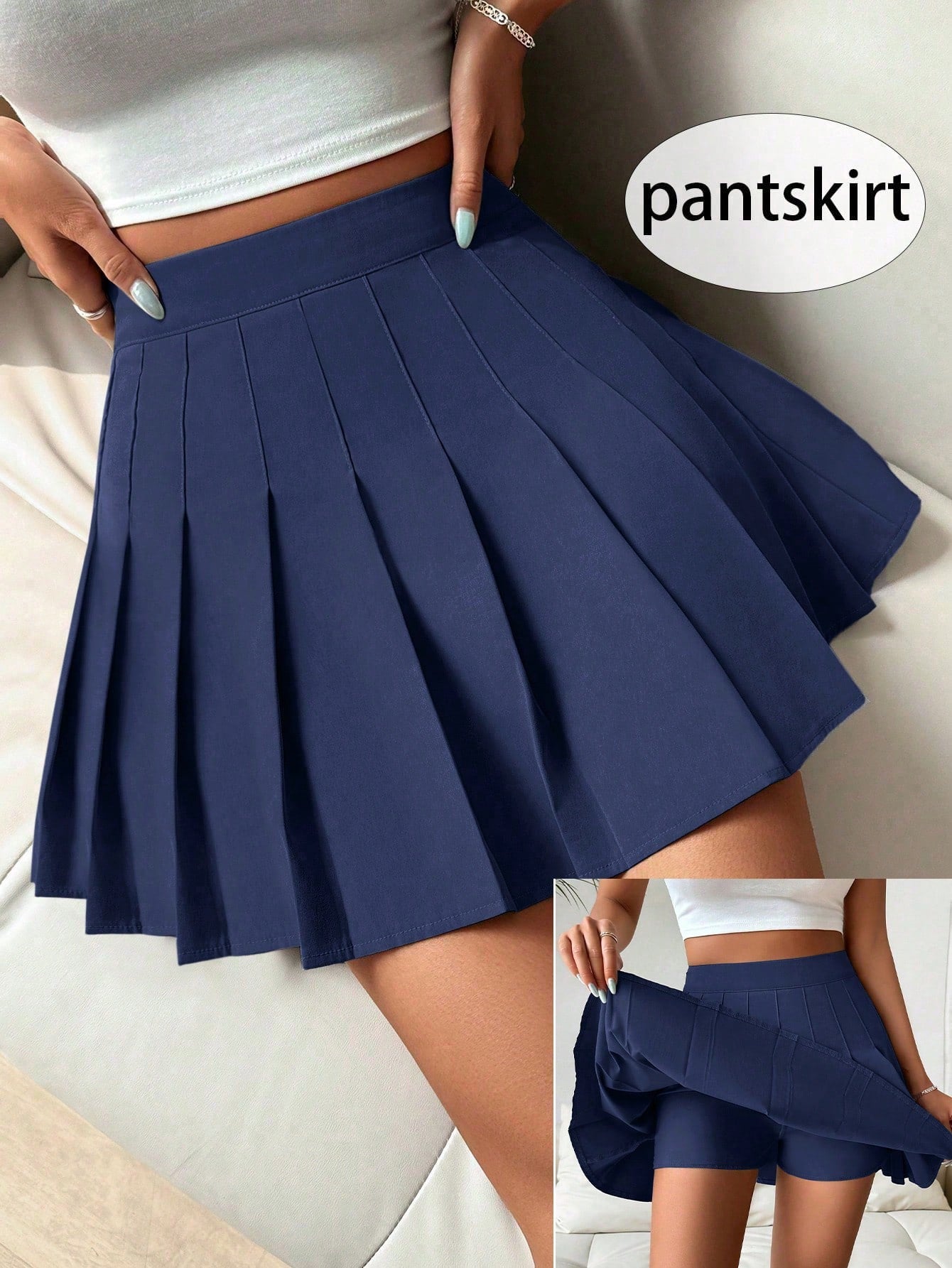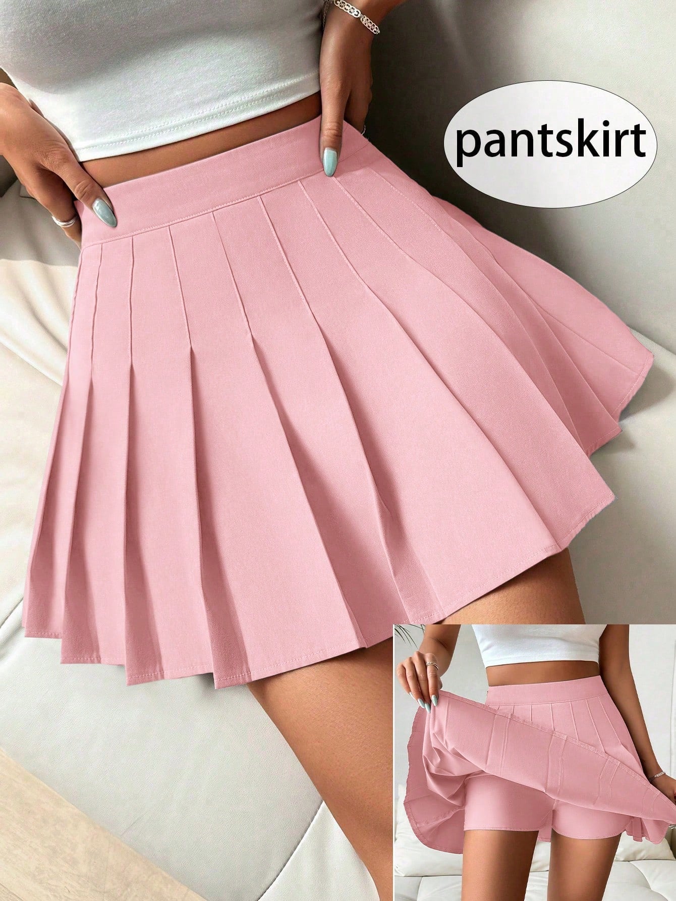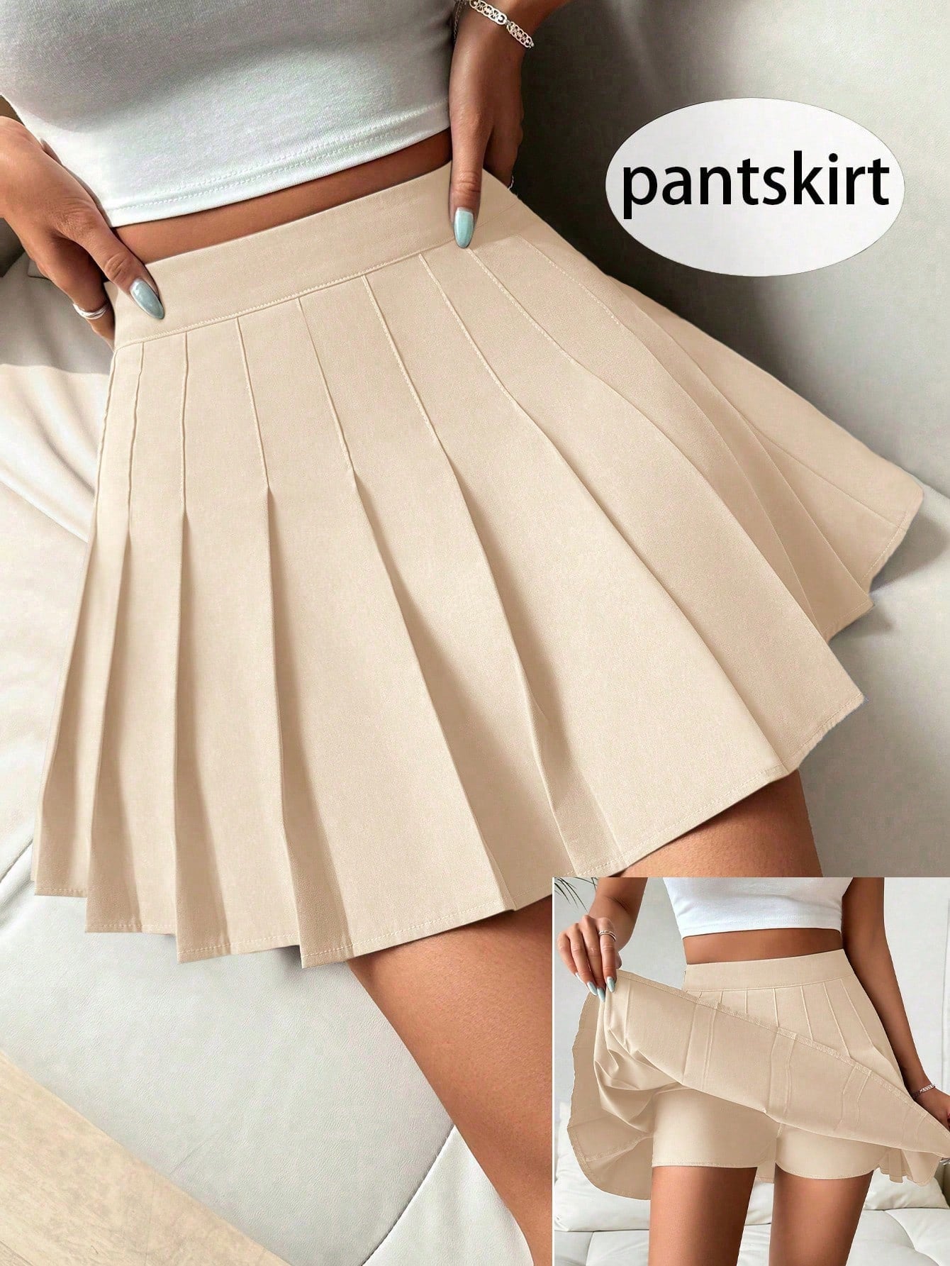 Raffinéa Summer Solid Color Elastic Waist Pleated Skirt Shorts