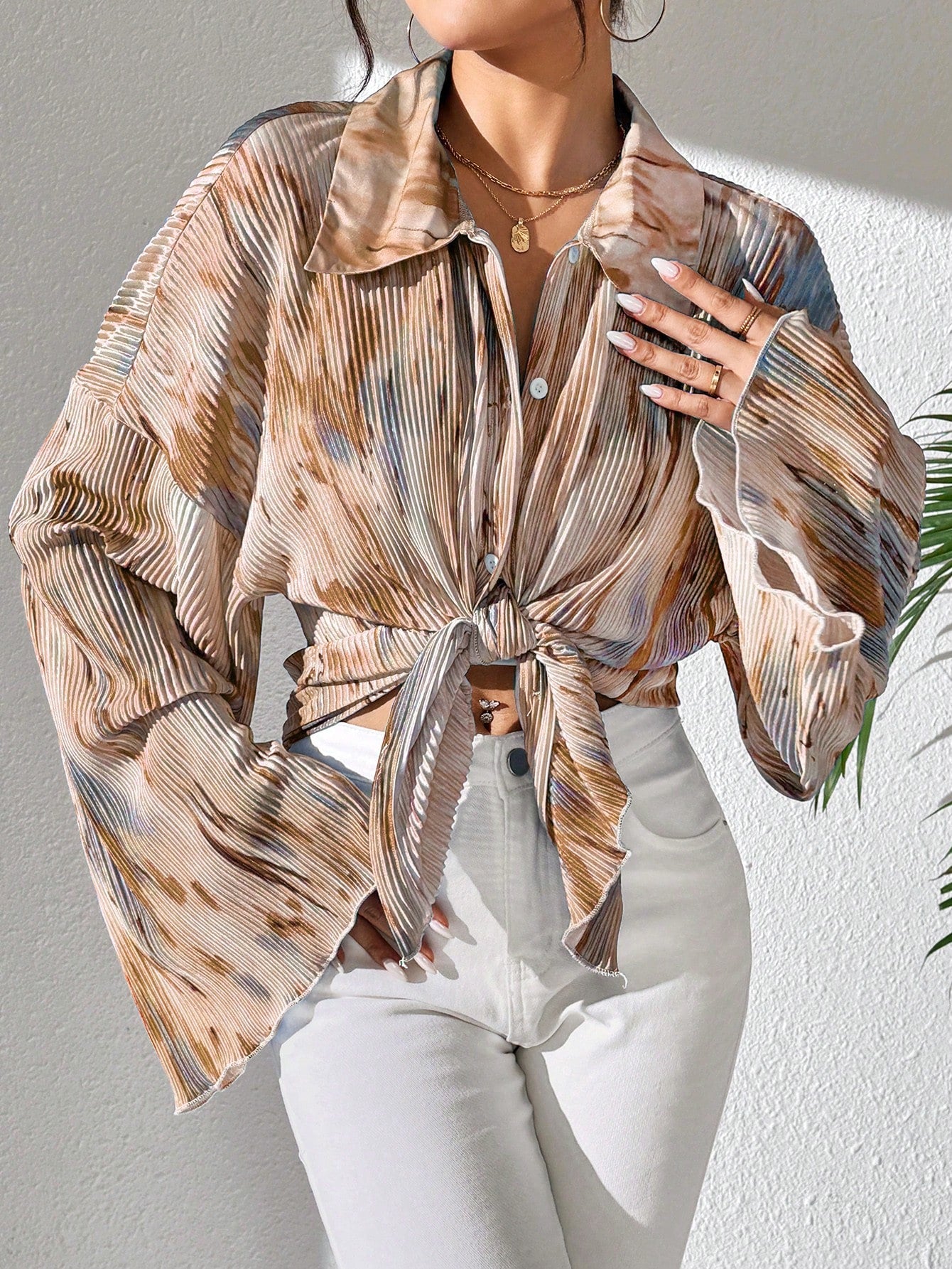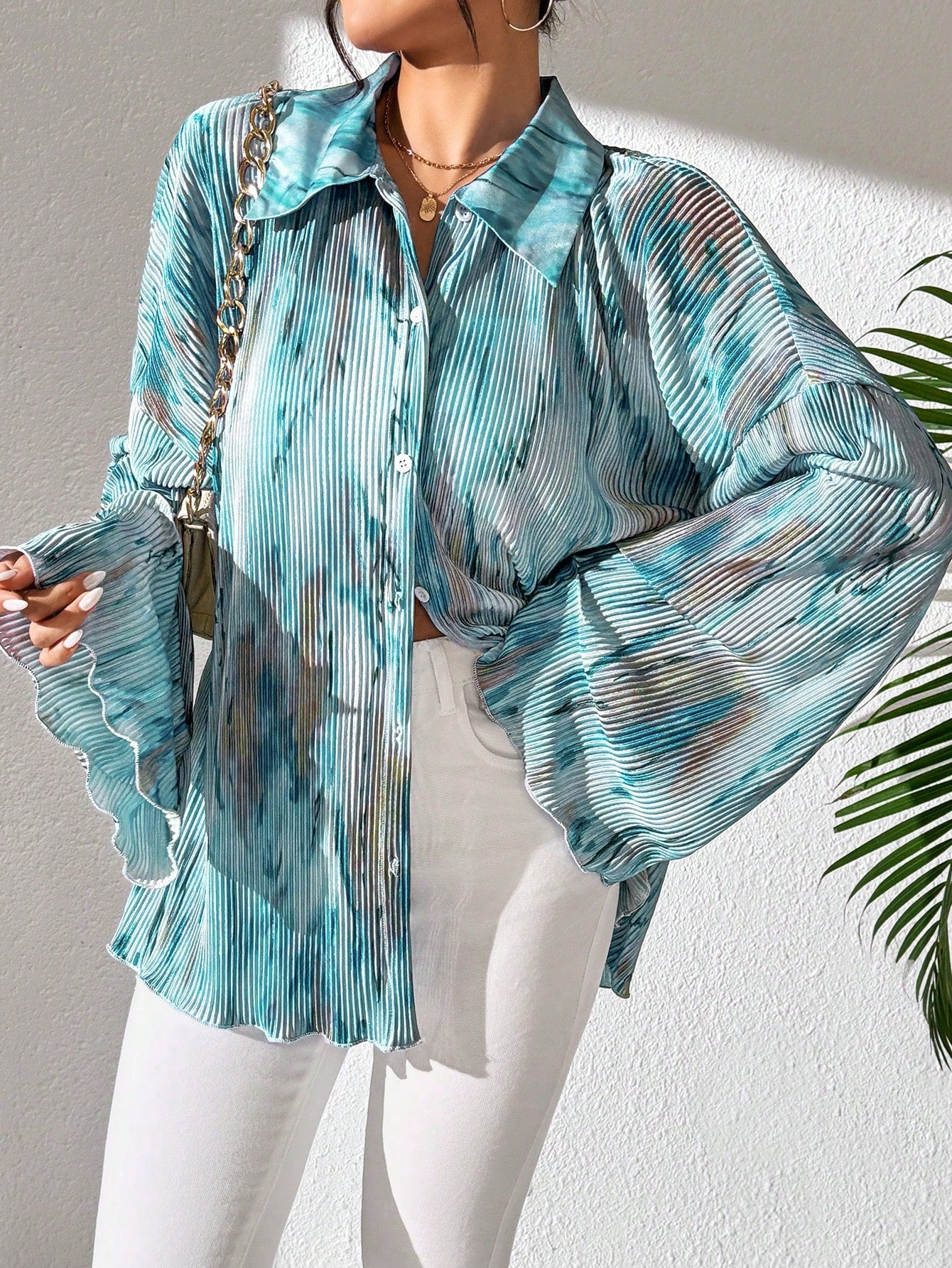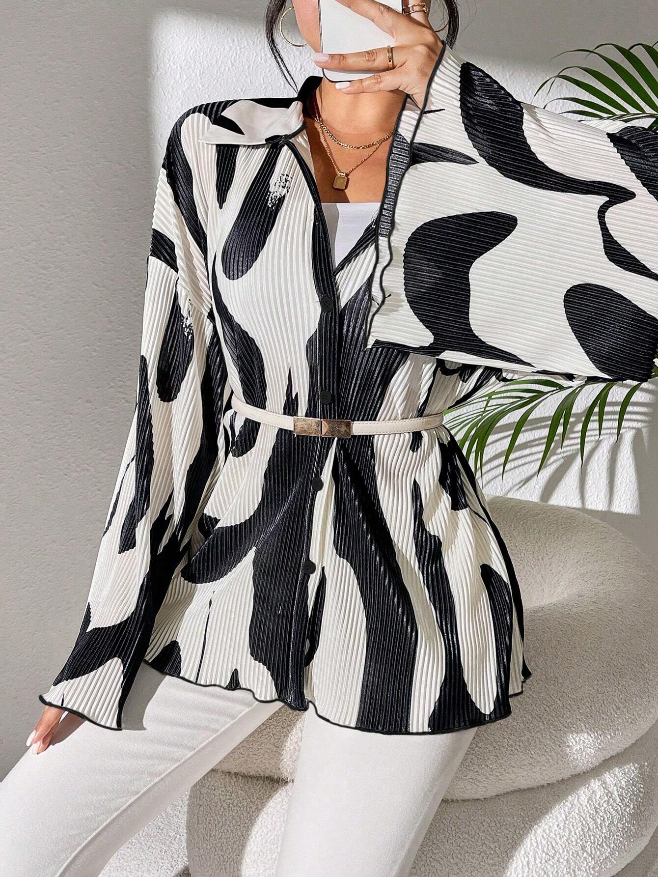 Raffinéa Women Spring/Summer Casual Holiday Commute Random Floral Print Flare Sleeve Shirt, Long Sleeve Blouse