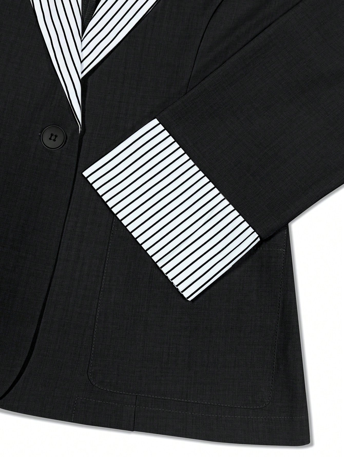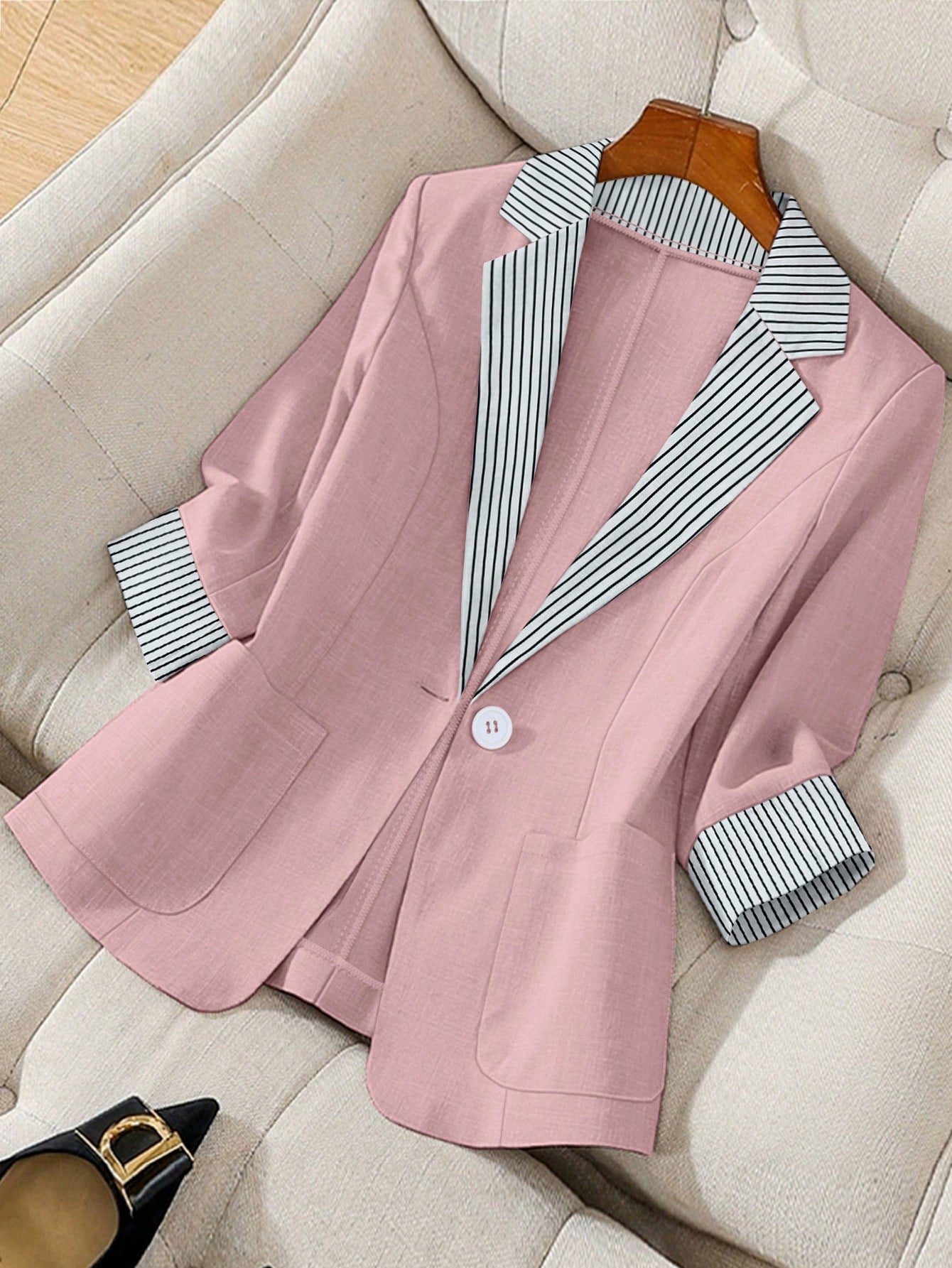 Raffinéa Women's Autumn/Winter Stripe Patchwork Long Sleeve Button Blazer Jacket, Casual Office Wear