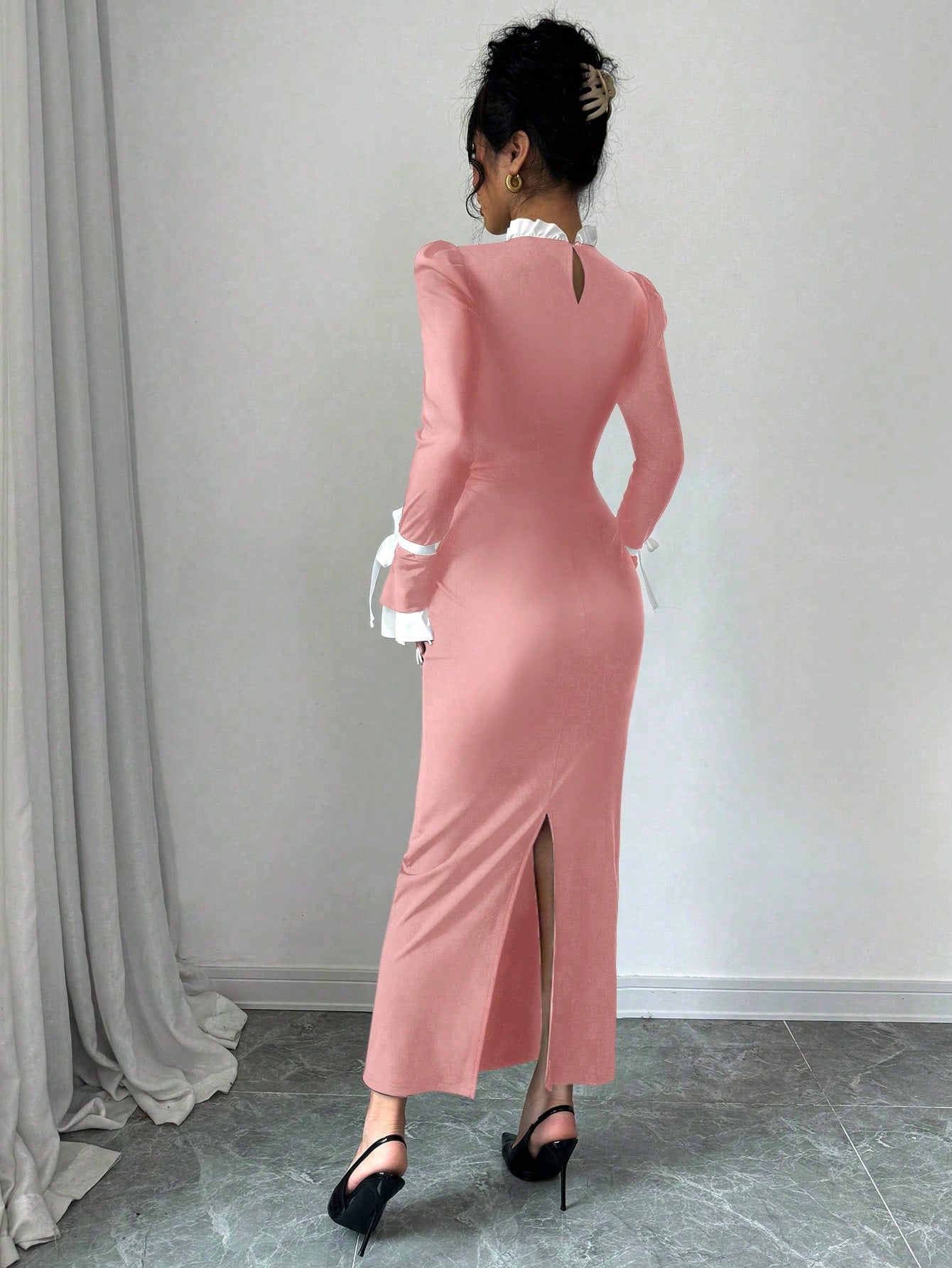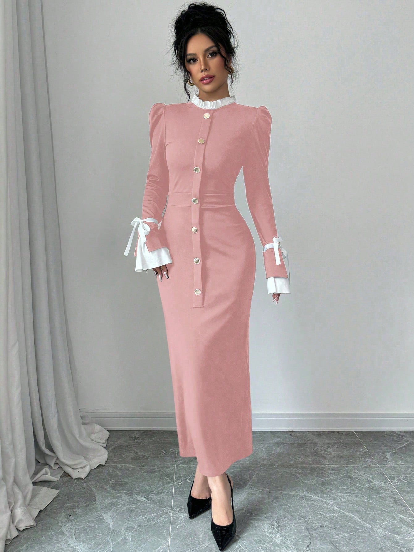Raffinéa Women's Elegant Color Blocking Slim Dress, Autumn/Winter Maxi Women Outfit