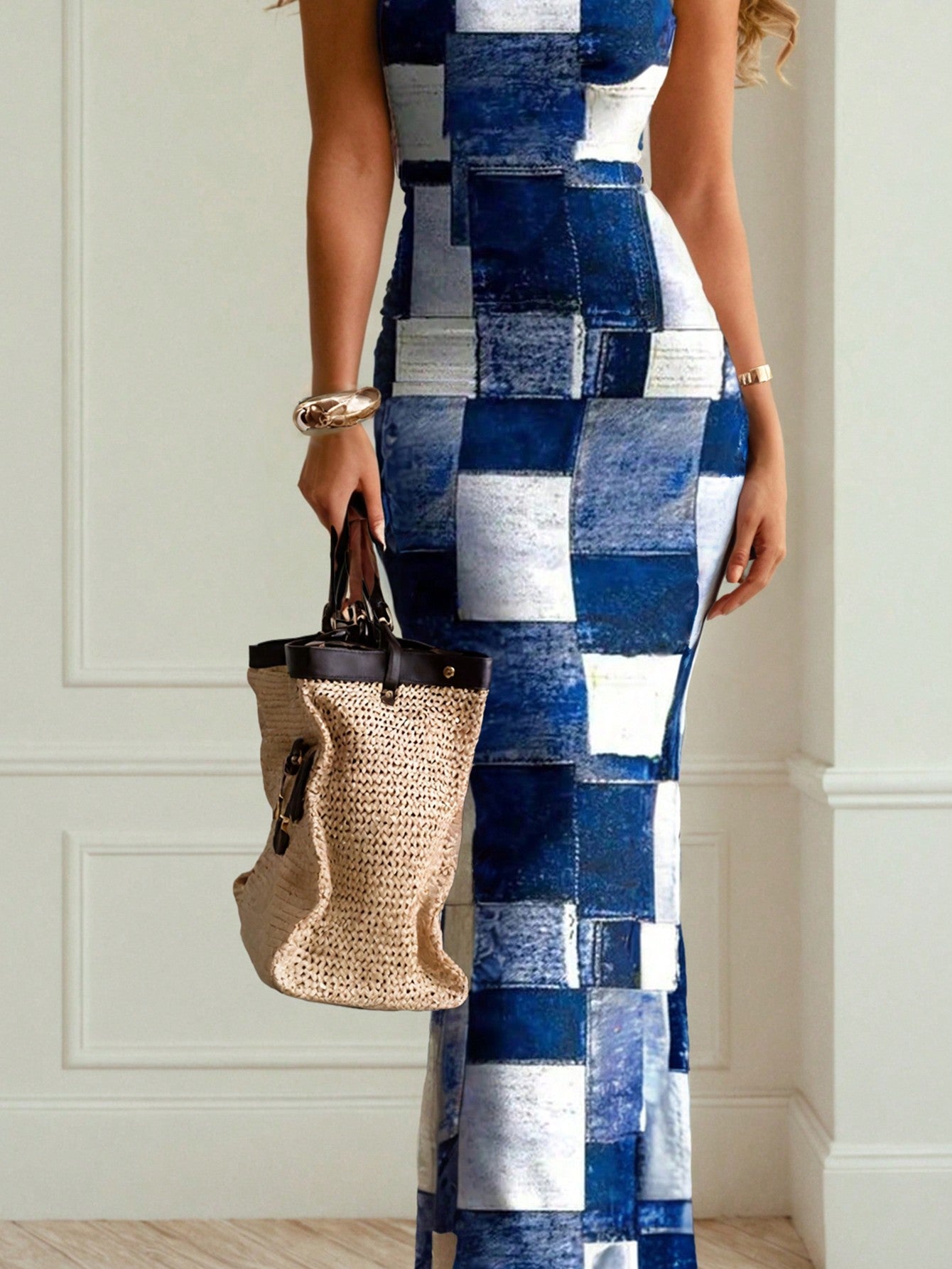 Raffinéa Women's Fashionable Grid Patterned Slim Fit Bodycon Dress Maxi Women Outfit