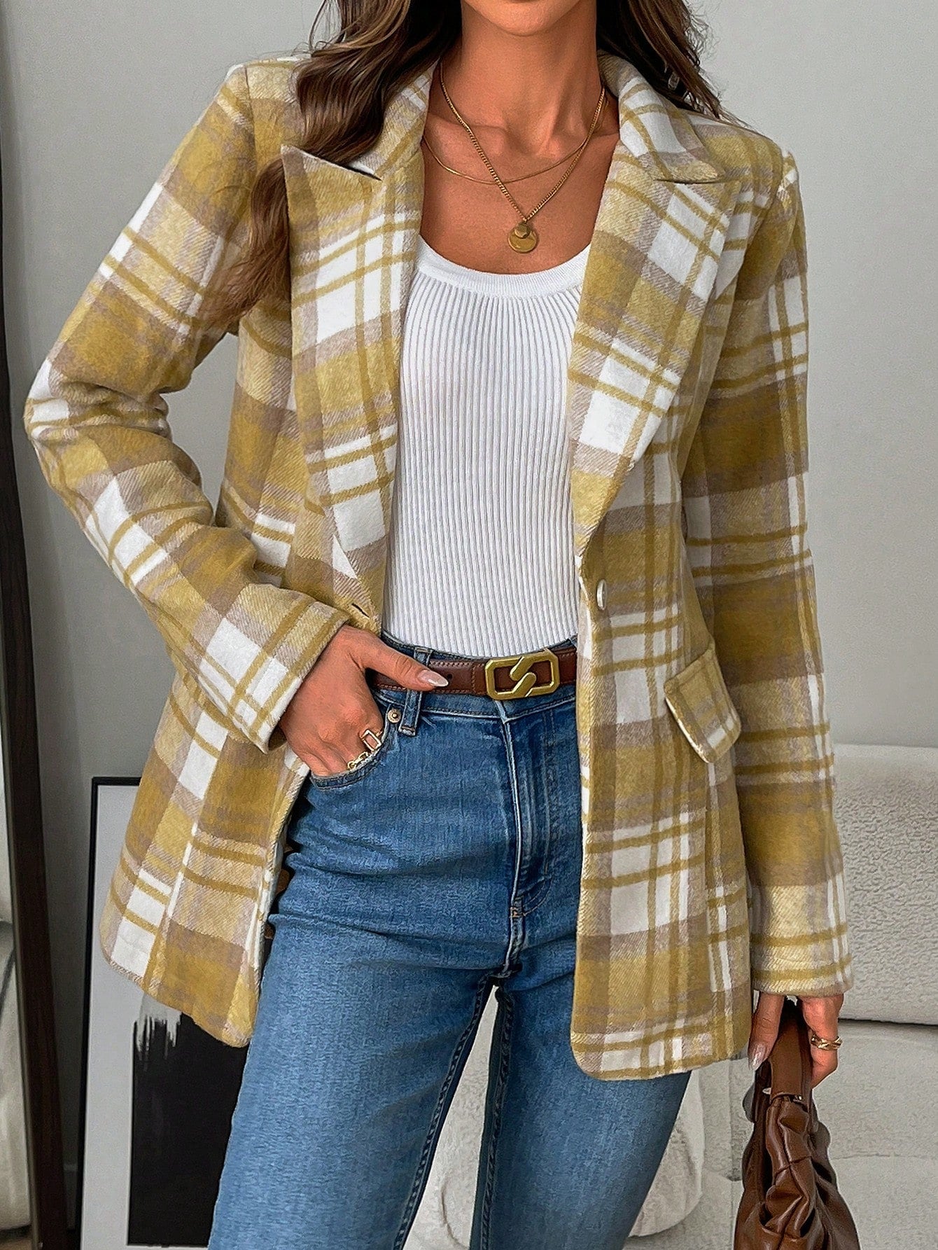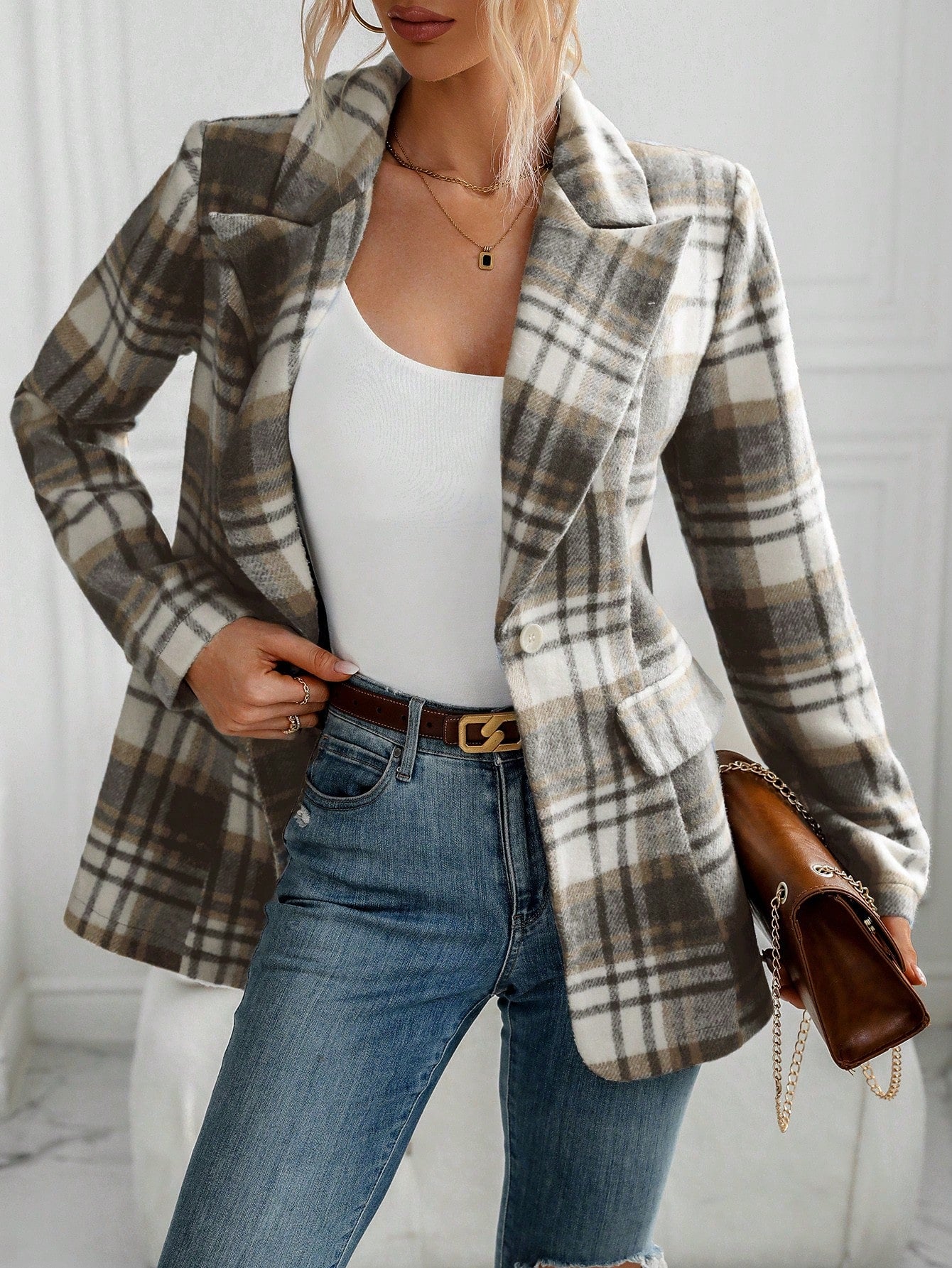 Raffinéa Women's Plaid Long Sleeve Suit Jacket