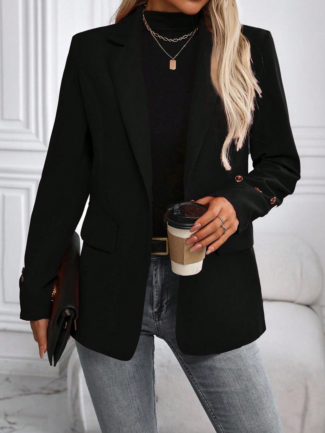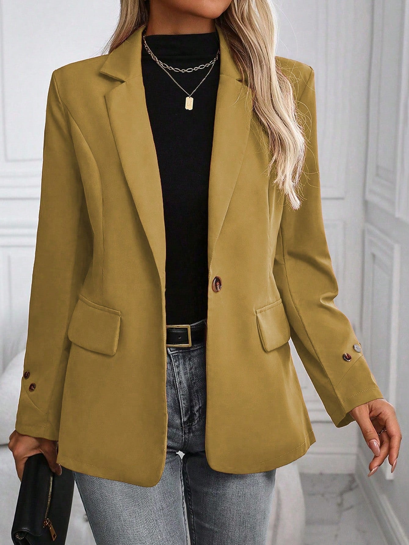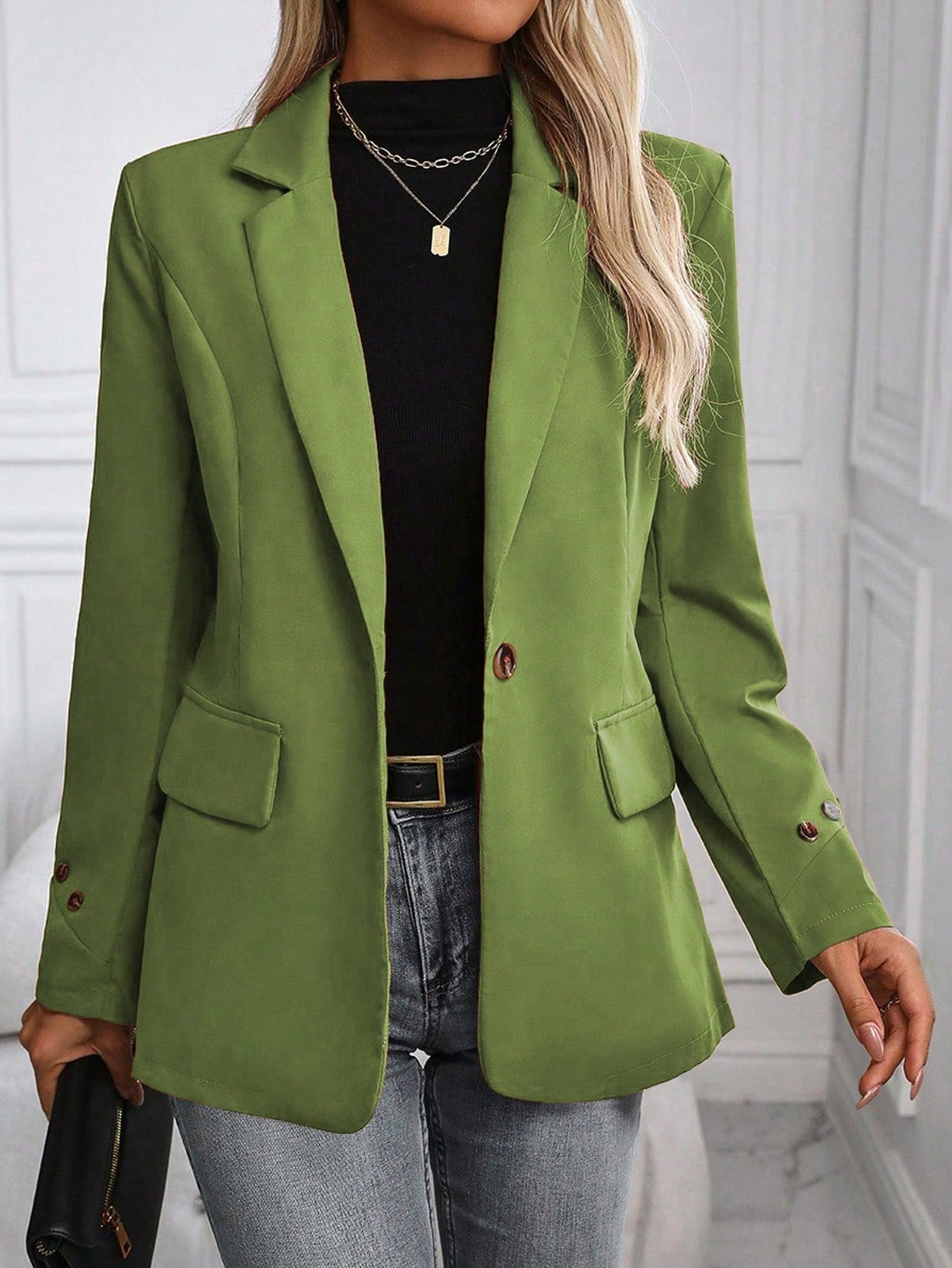 Raffinéa Women's Solid Color Patch Lapel Long Sleeve Casual Work Blazer Jacket For Spring And Autumn