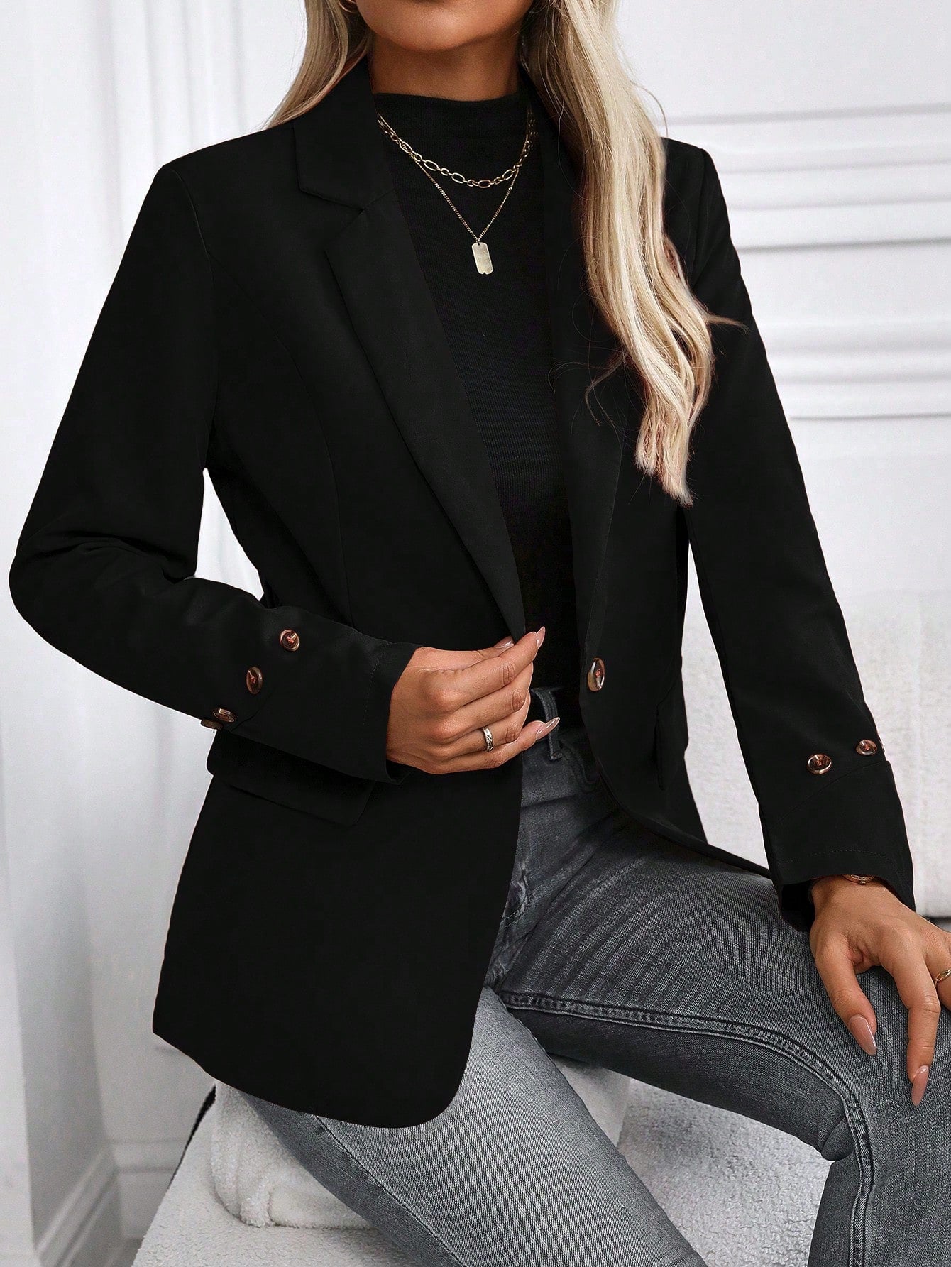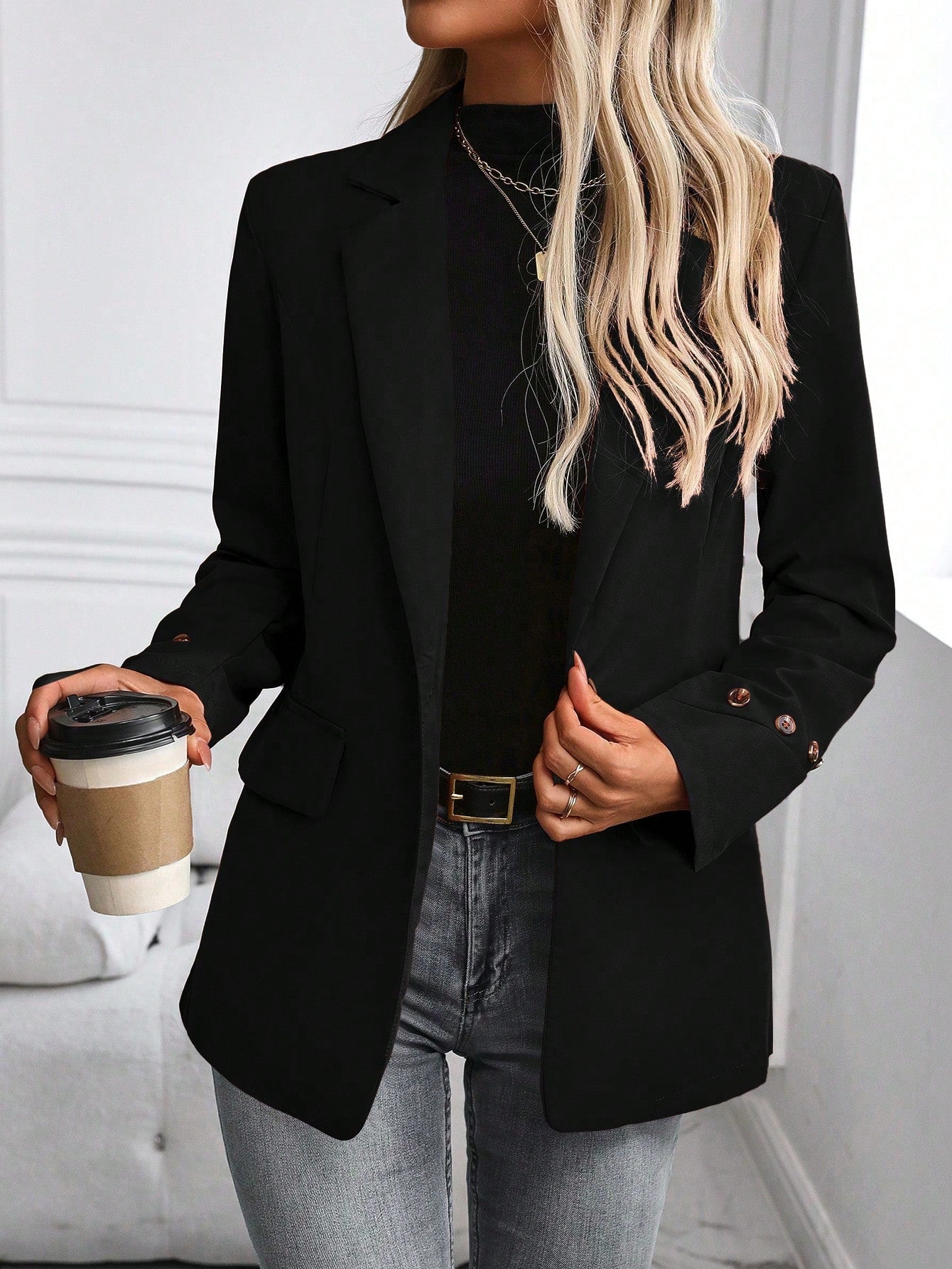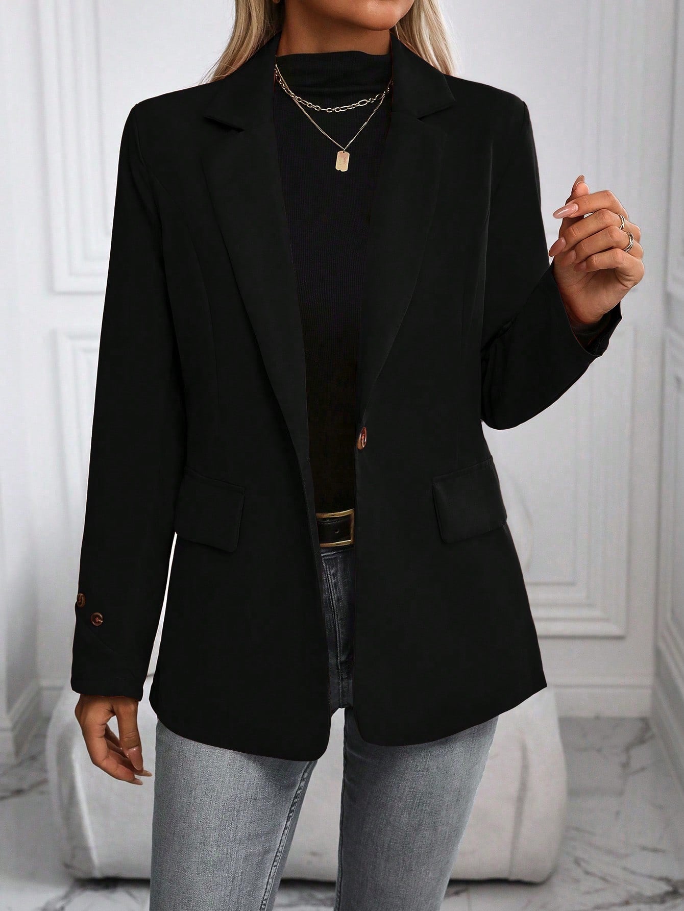 Raffinéa Women's Solid Color Patch Lapel Long Sleeve Casual Work Blazer Jacket For Spring And Autumn