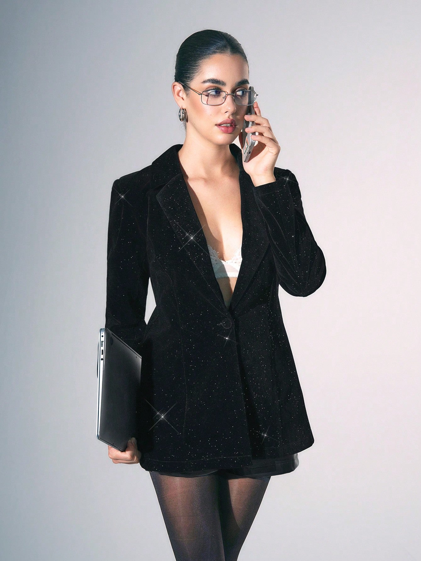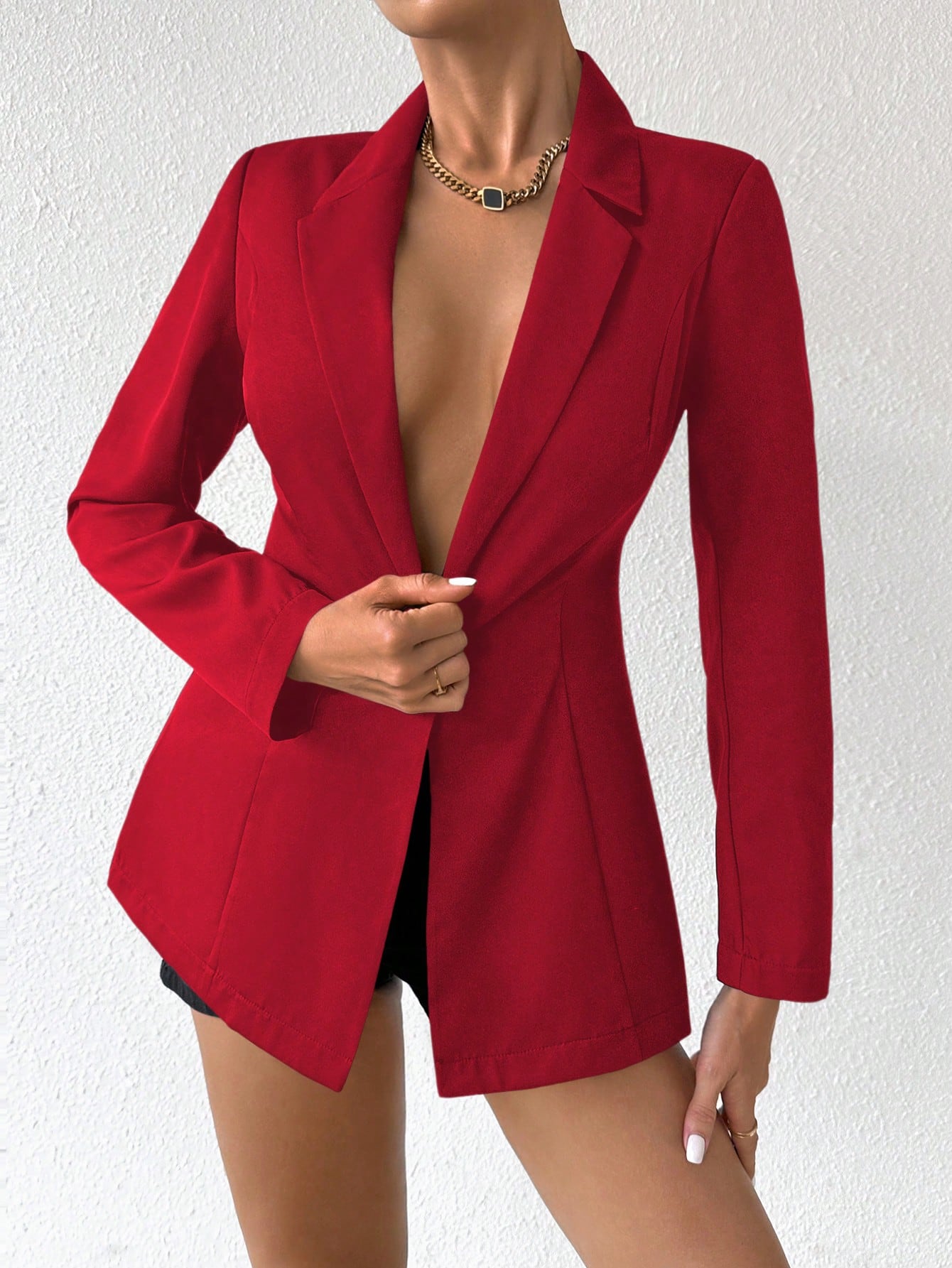 Raffinéa Women's Solid Color Stand Collar Long Sleeve Single Breasted Casual Blazer Jacket, Autumn