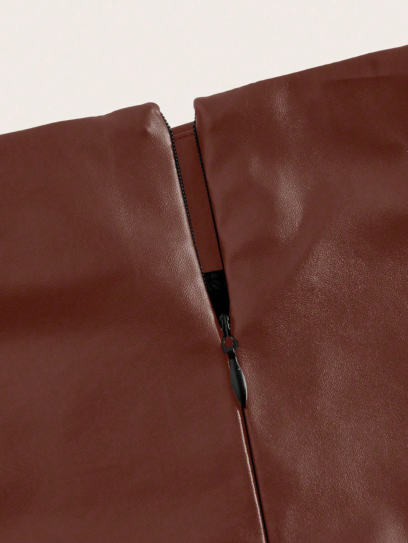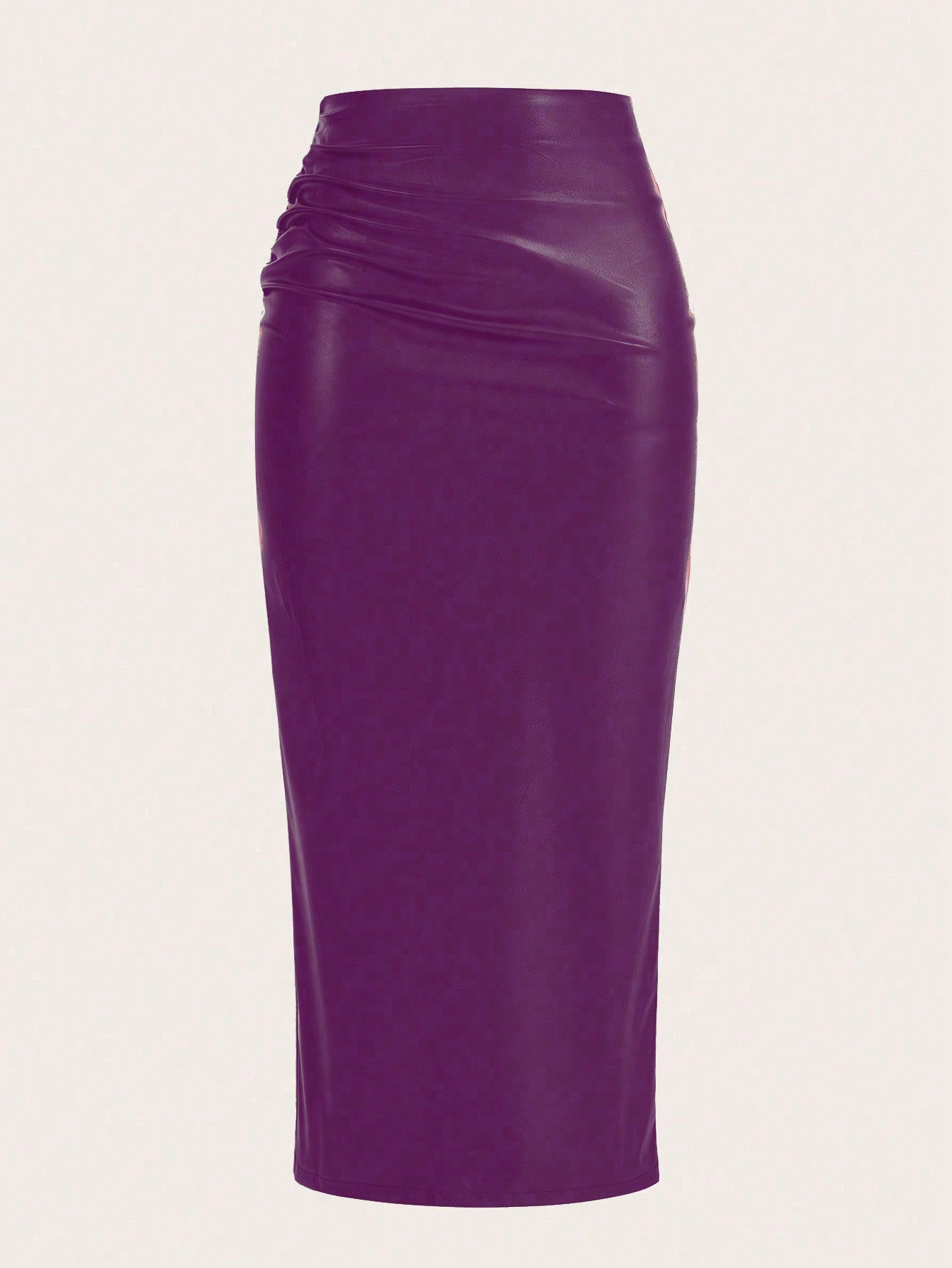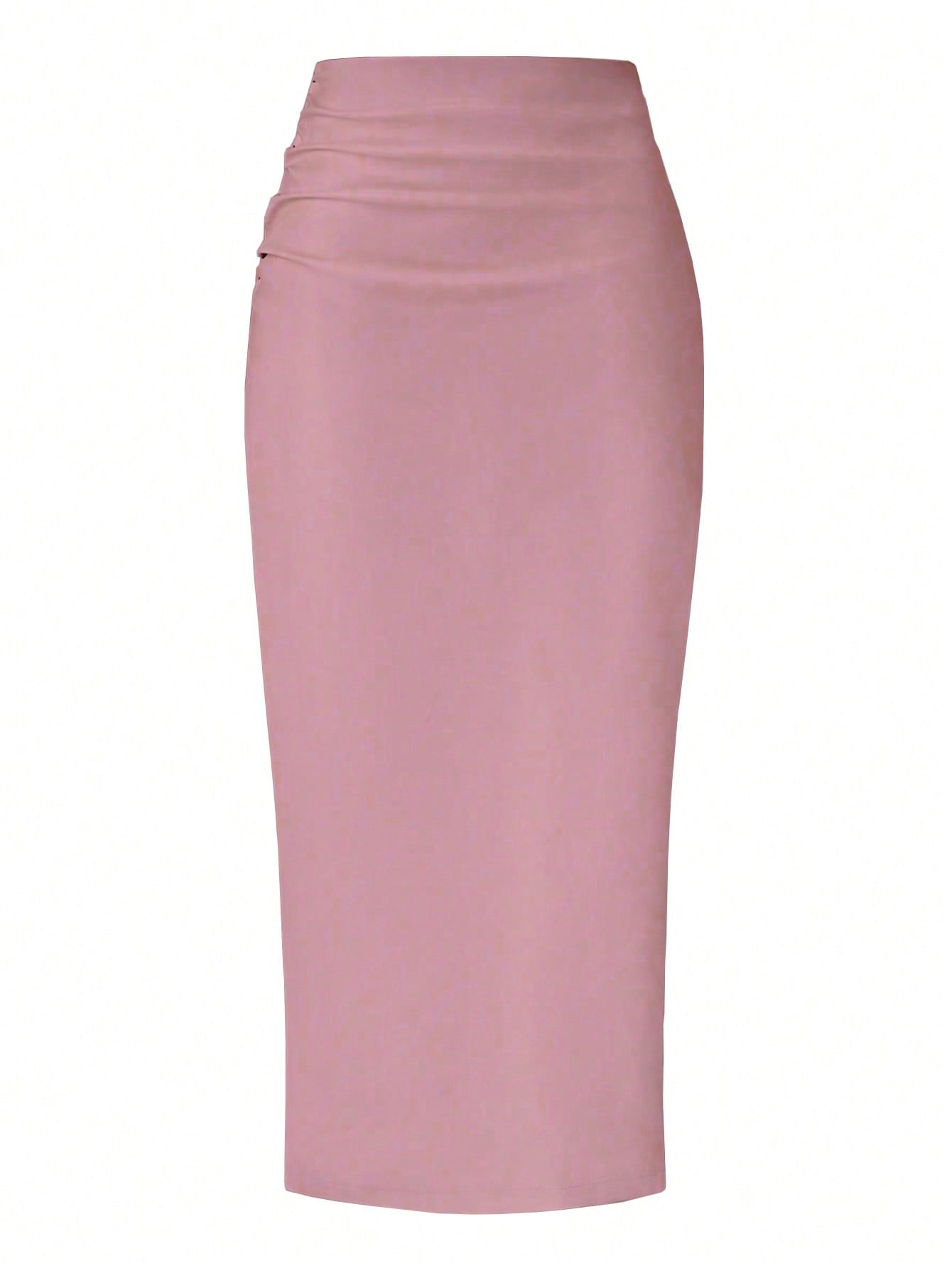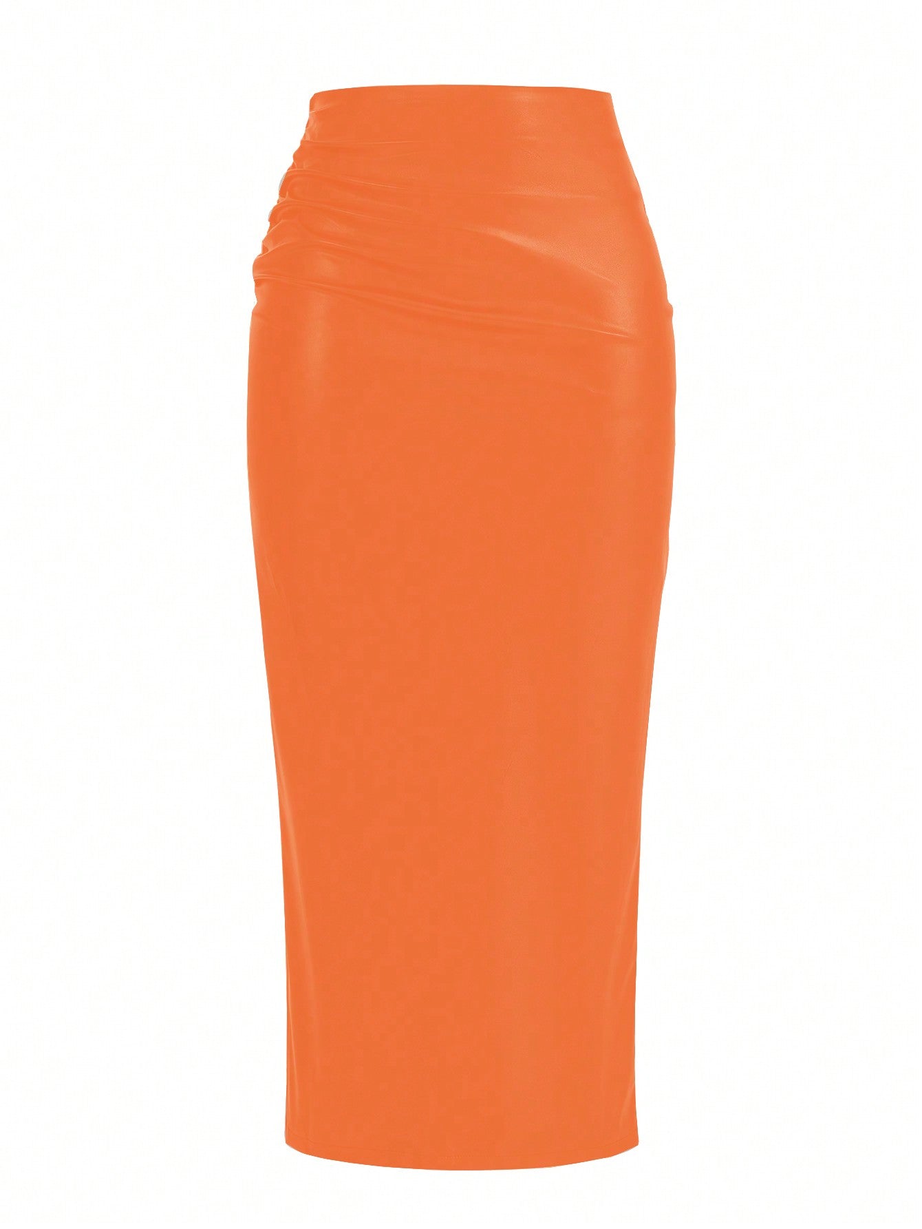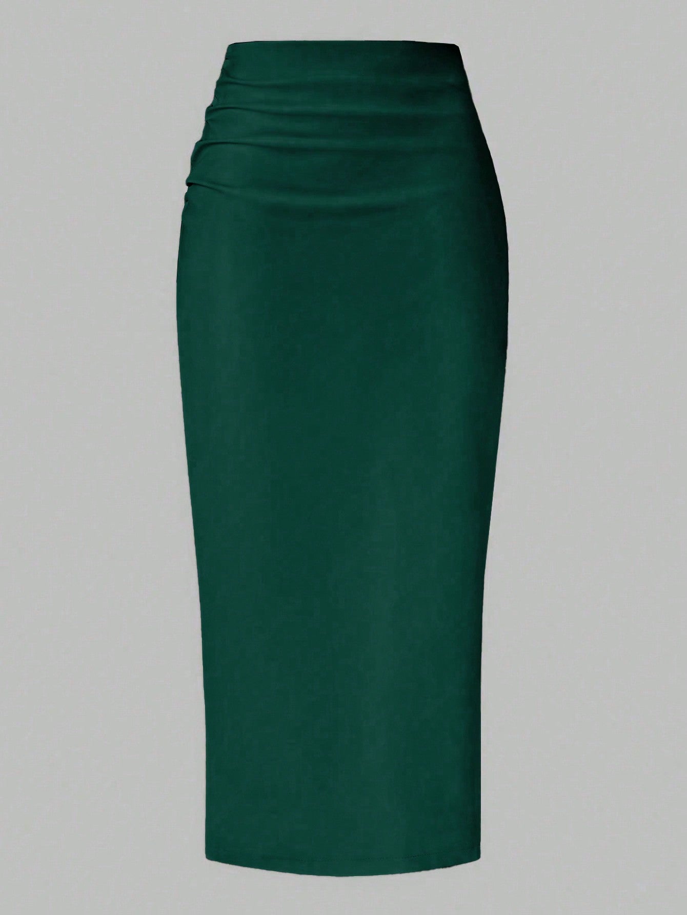 Raffinéa Women's Solid Color Zipper Skirt,Ladies Late Fall Elegant,Party Ruched,Split Thigh,Zipper Long Regular Fit High Waist Brown Plain Women Skirts , Casual Daily Wear Maxi Women Outfit