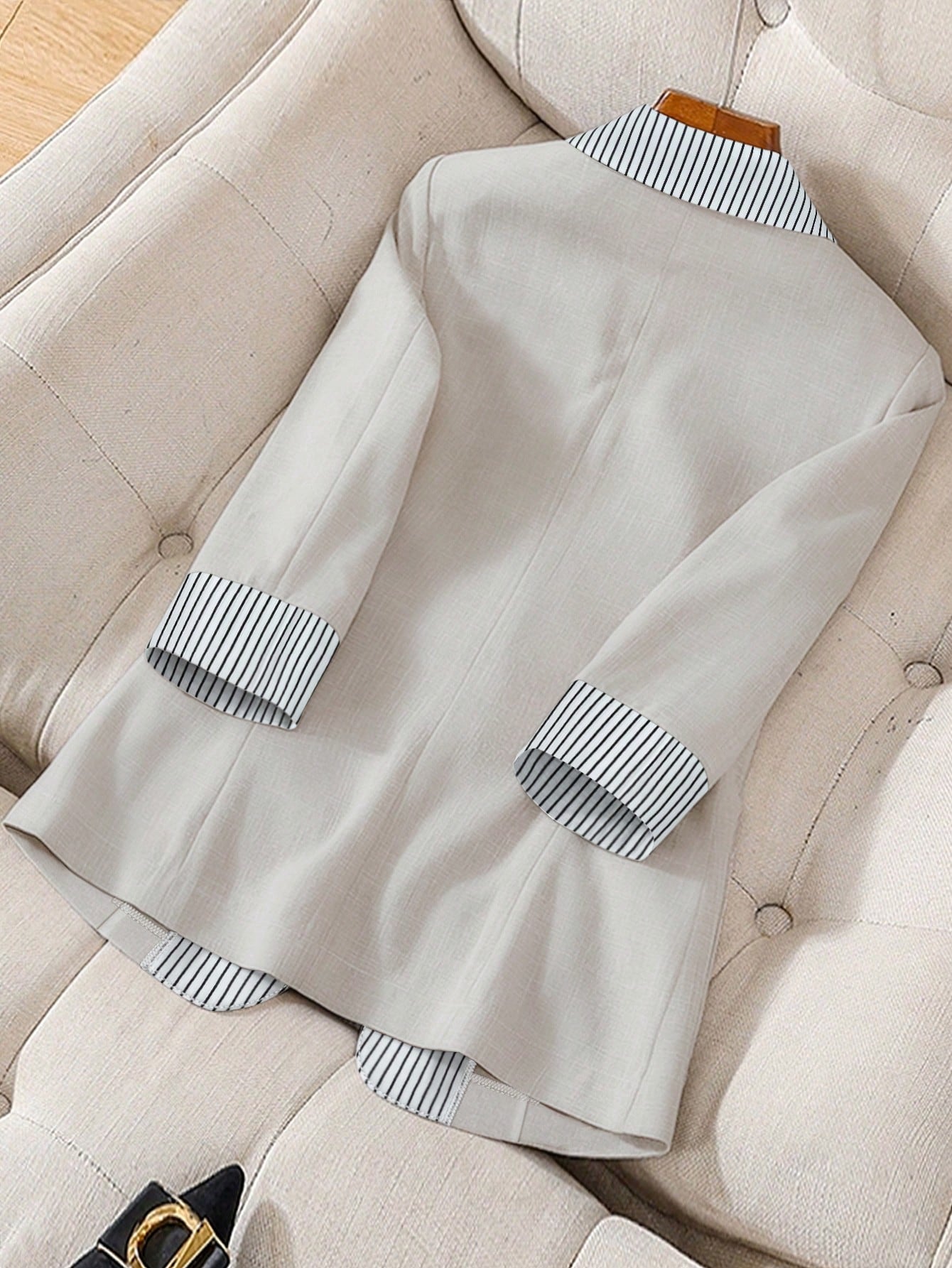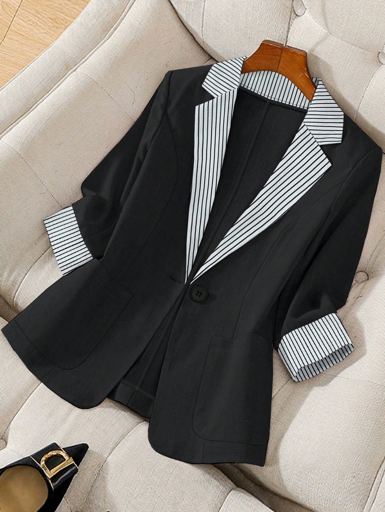 Raffinéa Women's Striped Splice Long Sleeve Button Casual Blazer Jacket, Suitable For Commuting, Autumn/Winter