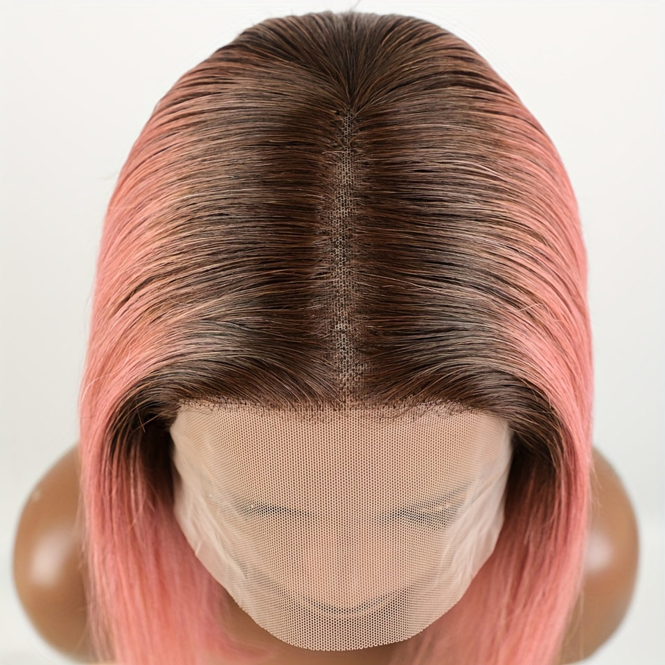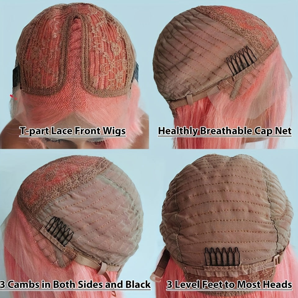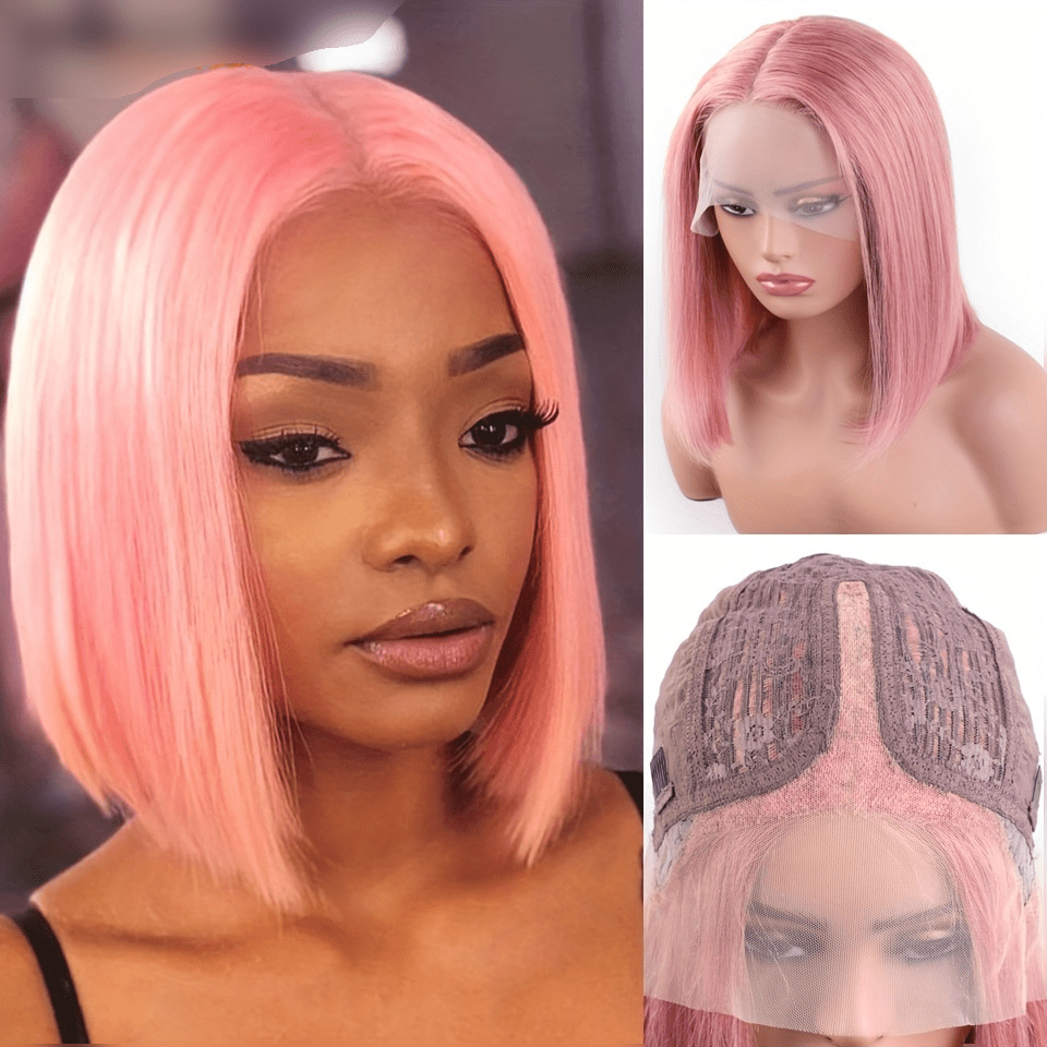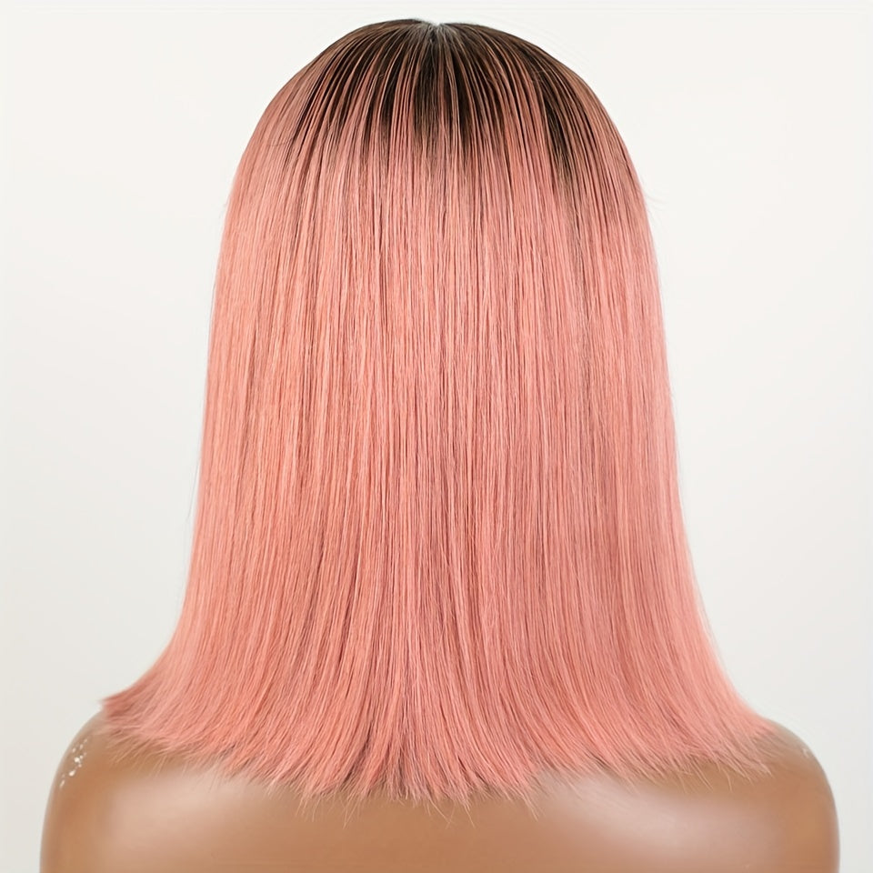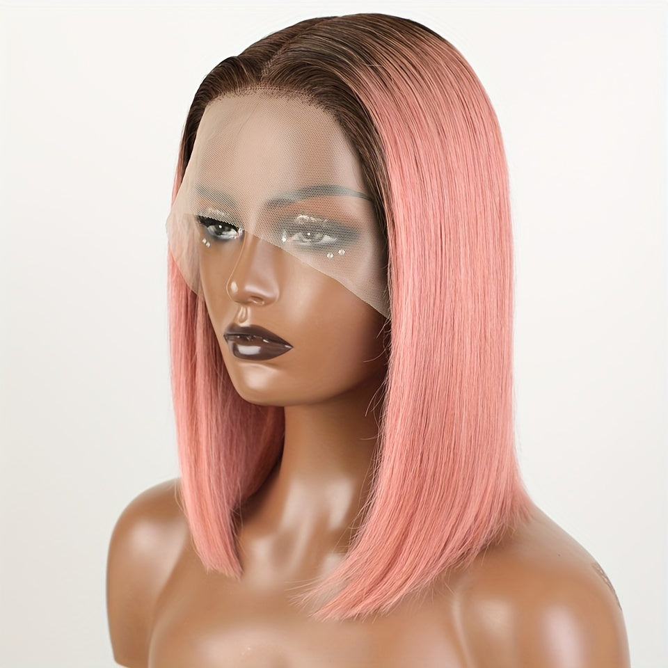 Rebecca Beauty Unisex-Adult Pink Bob Lace Front Wig 13*5*1 Transparent HD Lace - 150% Density Straight Human Hair Wig Pre-Plucked with Bleached Knots - Suitable for All People