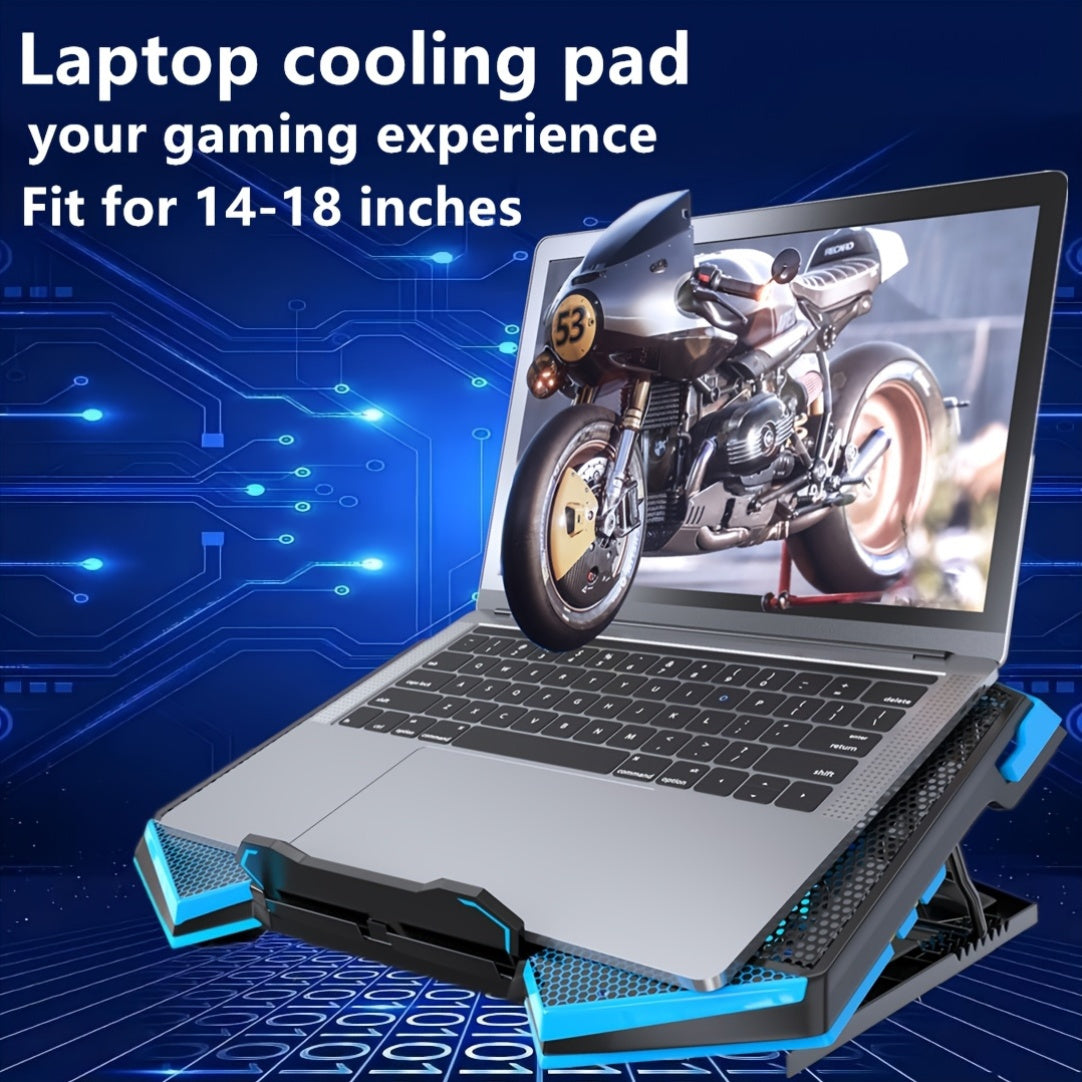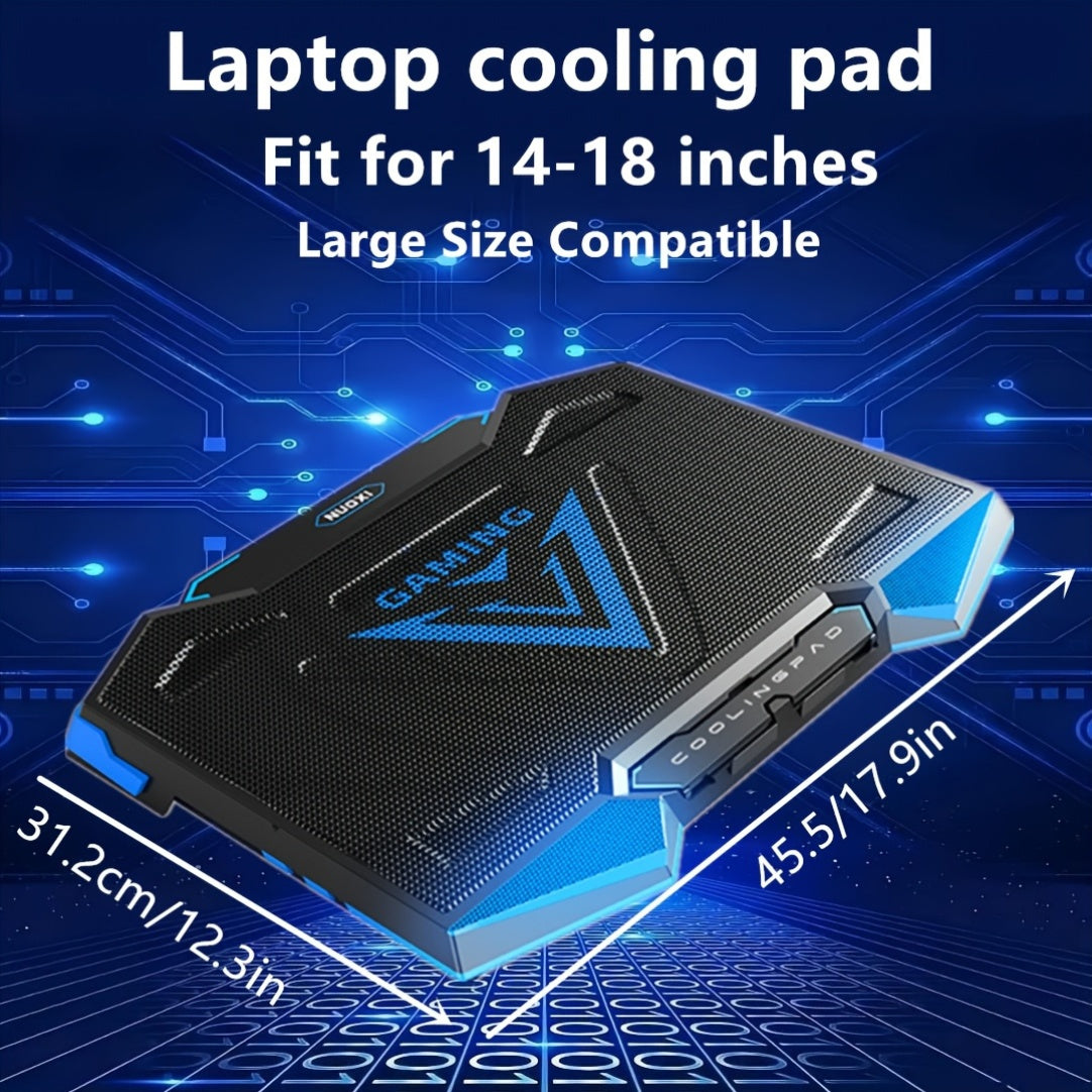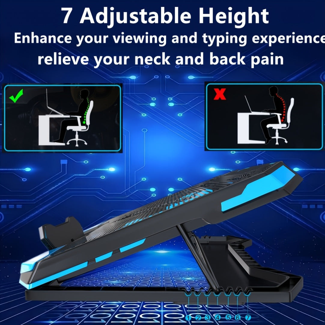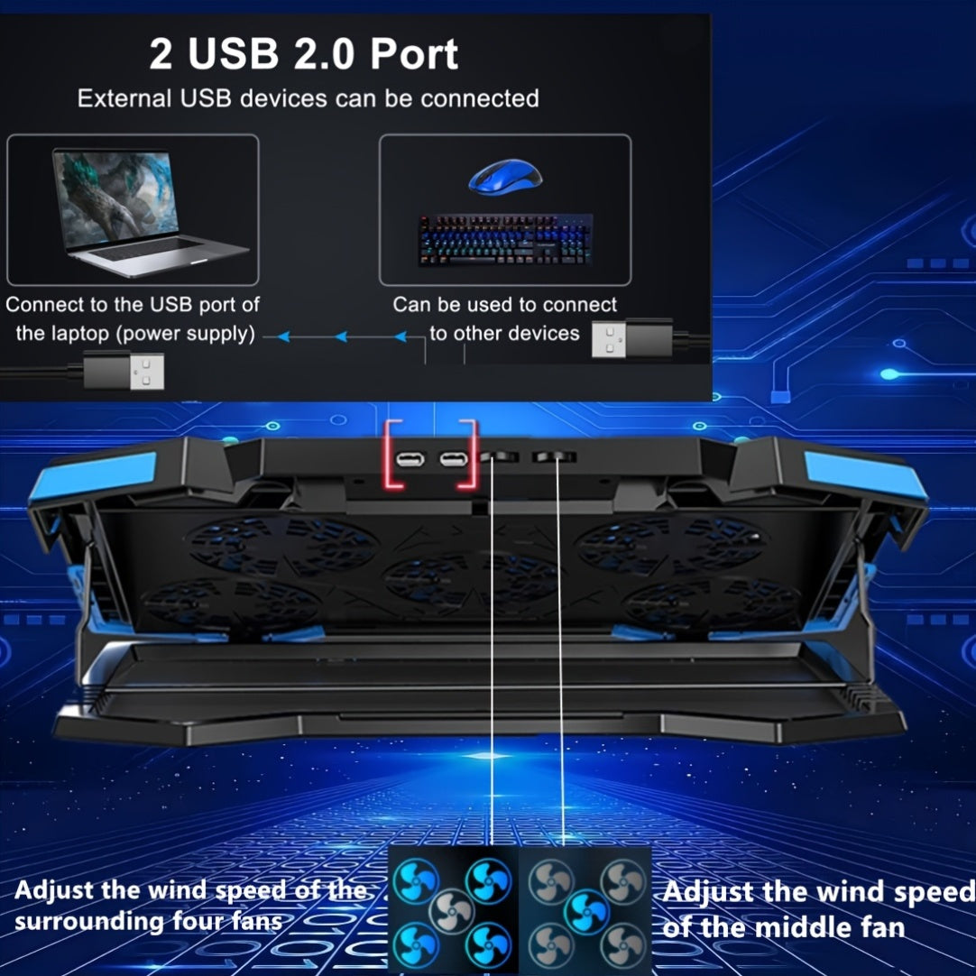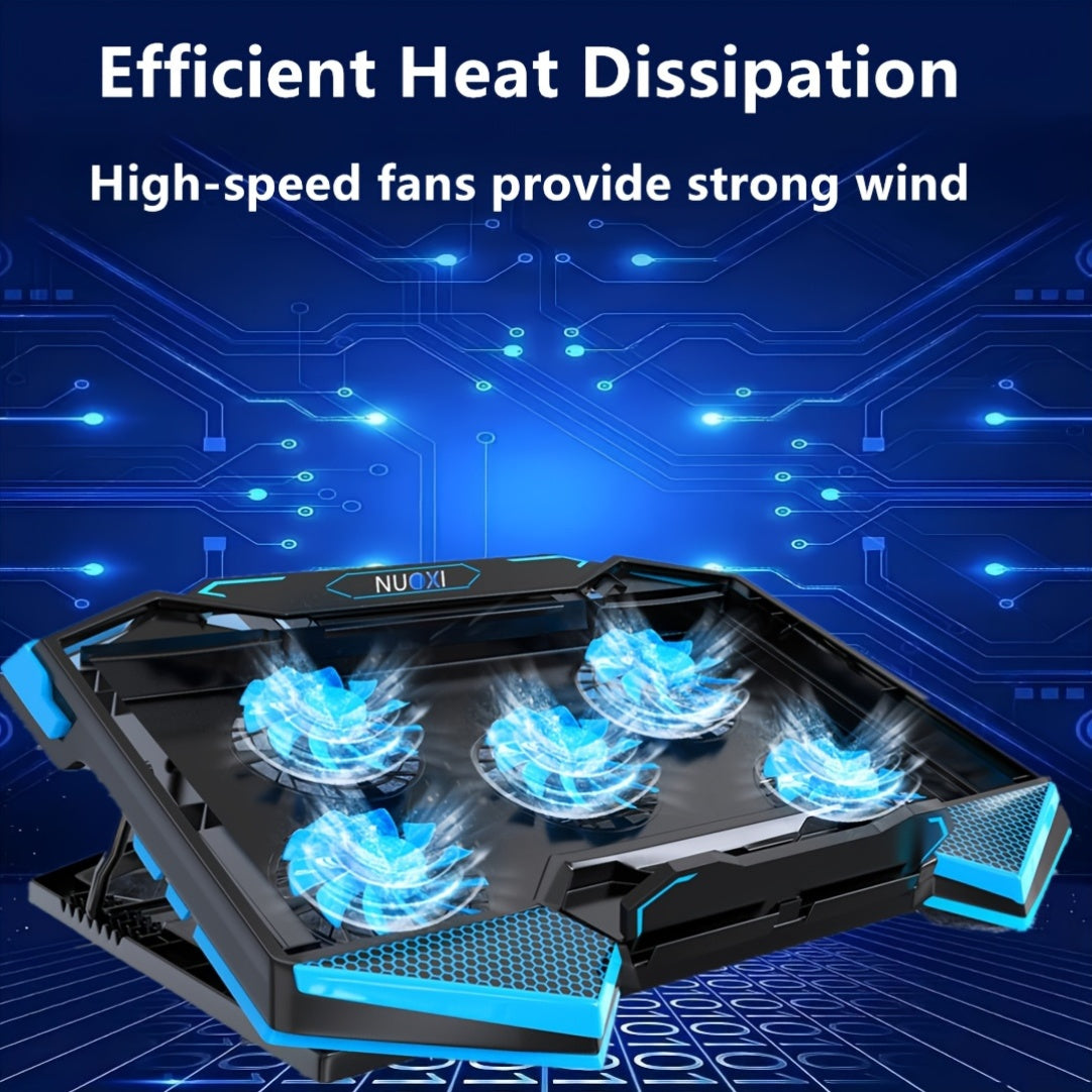 Refroidisseur de PC de jeu avec un dissipateur de chaleur de 17 pouces, doté de 5 ventilateurs silencieux, d'éclairages LED, de ports USB doubles et d'un pad de refroidissement portable qui sert de support pour PC de 14 à 18 pouces, garantissant un refroi