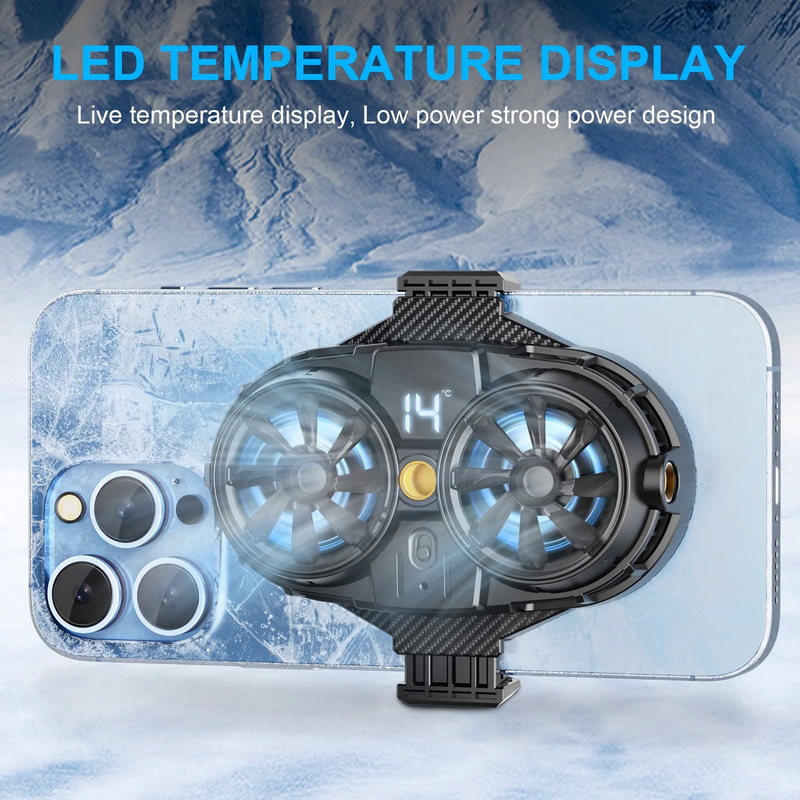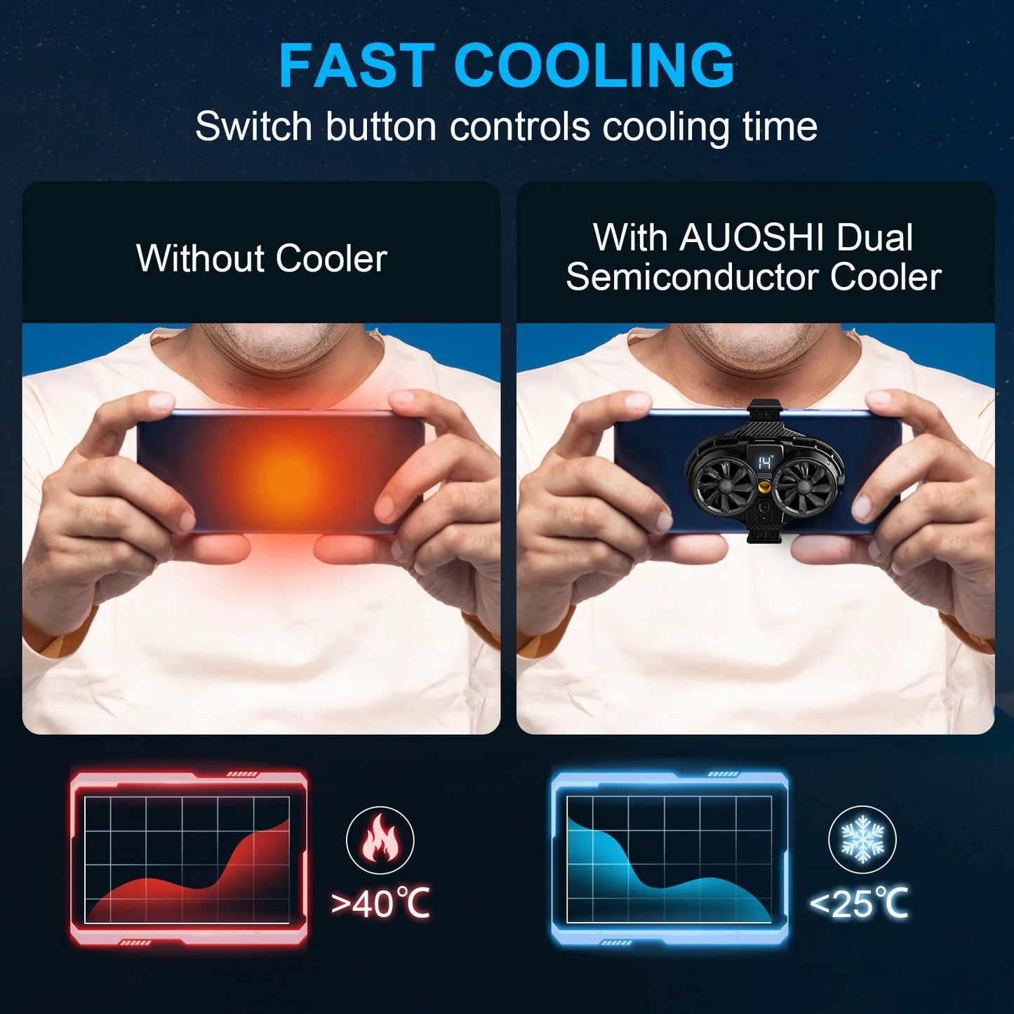 Refroidisseur de téléphone AUOSHI à double semi-conducteur, radiateur de téléphone portable magnétique avec affichage de la température LED pour la diffusion en direct, le vlog en extérieur, les jeux mobiles, la conduite automobile, convient à l'iPhone.