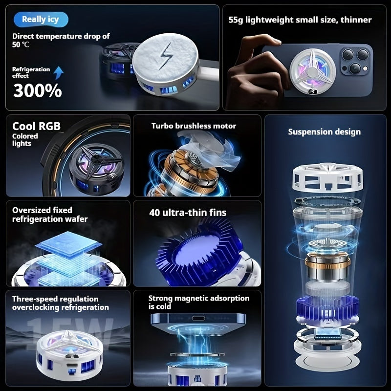 Refroidisseur de téléphone mobile universel, clip-on radiateur en ABS à semi-conducteur avec alimentation USB, refroidisseur ajustable à trois vitesses pour le jeu, fixation magnétique forte, pas de batterie requise