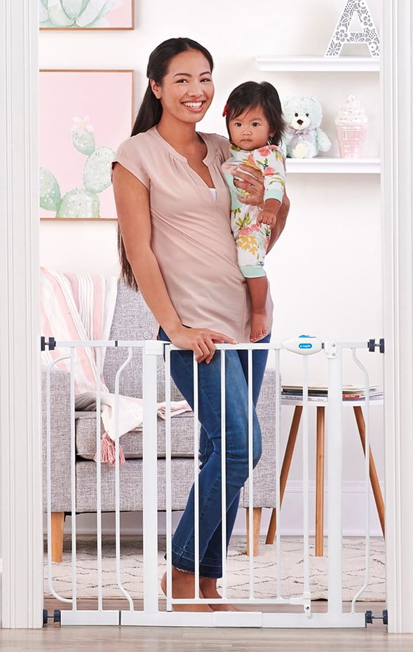 A baby gate is an essential tool to childproof your home when baby becomes mobile. As your little one begins this new chapter, allow the Regalo Extra Wide Assembly Baby Gate to be a safe and convenient way to protect both your child and home. Boasting an all-steel construction with durability and strength in mind, this attractive safety gate is adjustable to accommodate door openings between 29.5-38.5 inches. Designed for convenience, the baby gate can be install pressure mount the gate with the included rubberized tension knobs or use the included hardware to attach the gate to your wall.
