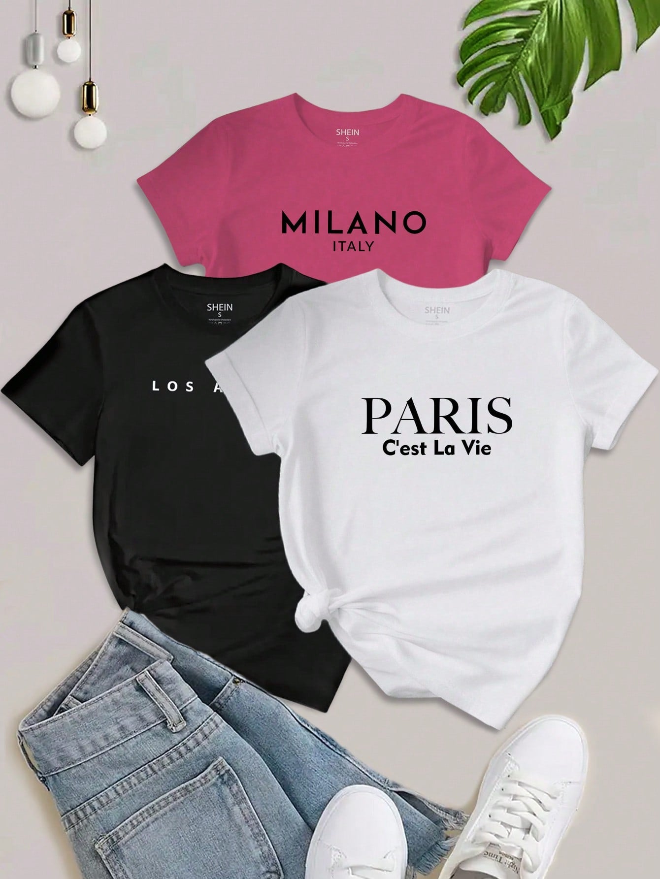 Relaxiva 5PCS Women's Simple Solid Color Crew Neck Short Sleeve T-Shirts
