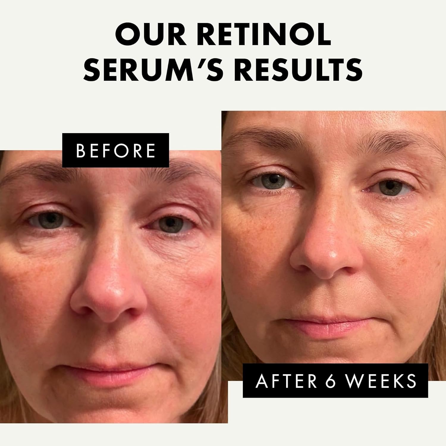 RESTORE YOUTHFUL RADIANCE: Our pure retinol serum helps reduce the appearance of fine lines and dark spots. We’ve added hyaluronic acid for heavenly hydration along with antioxidants like aloe vera, green tea, and vitamin E, promoting a radiant glow.