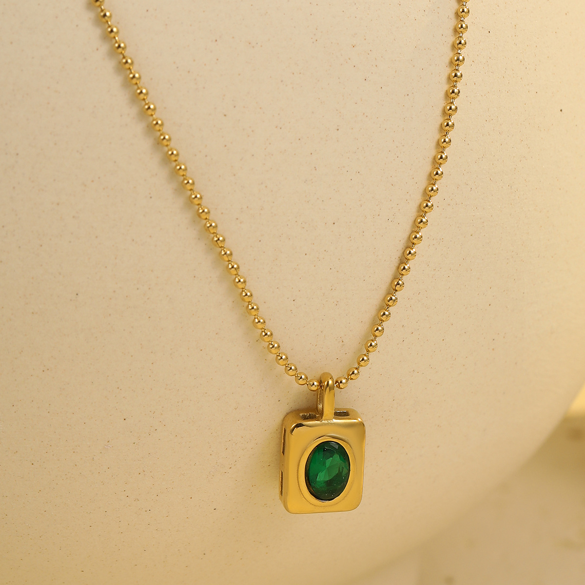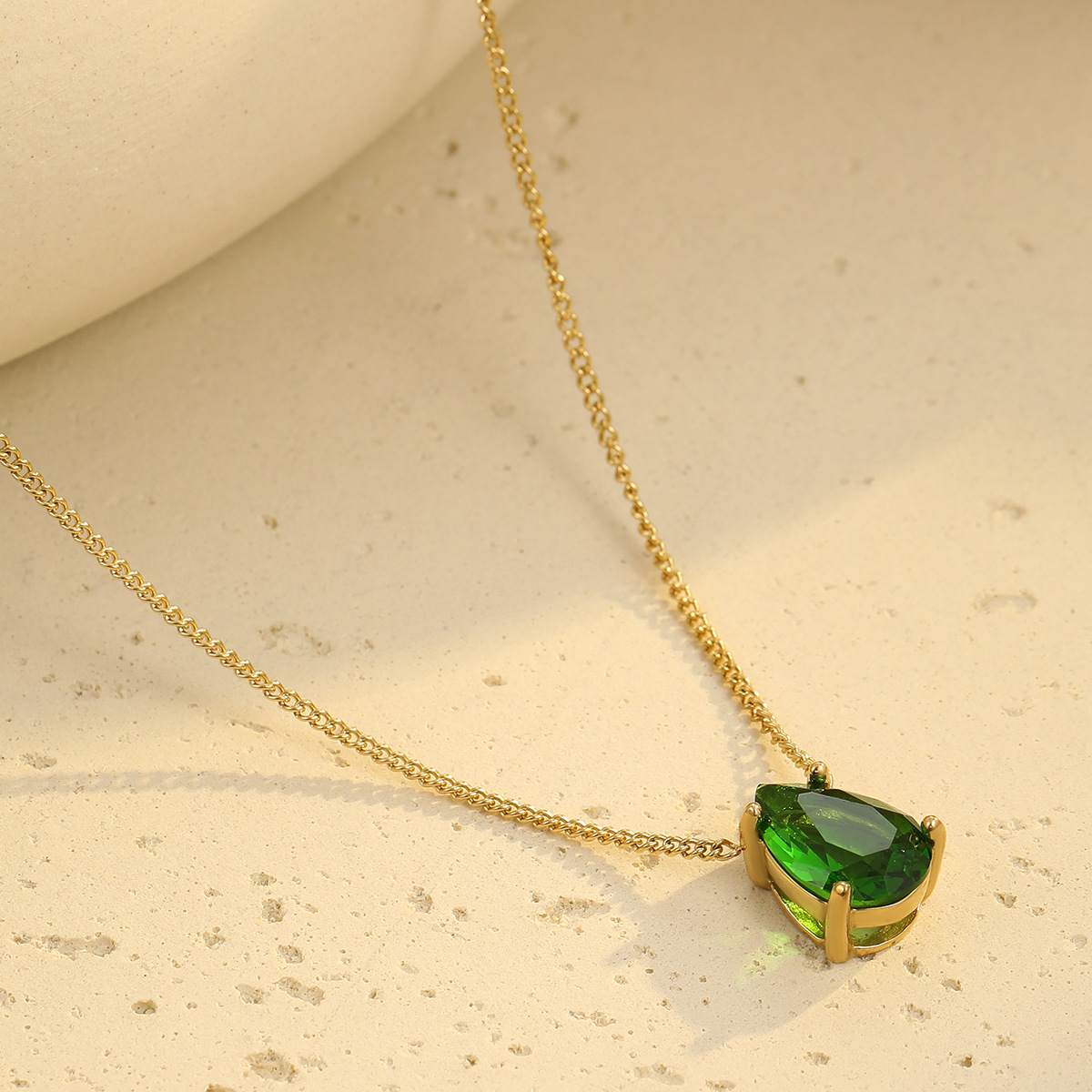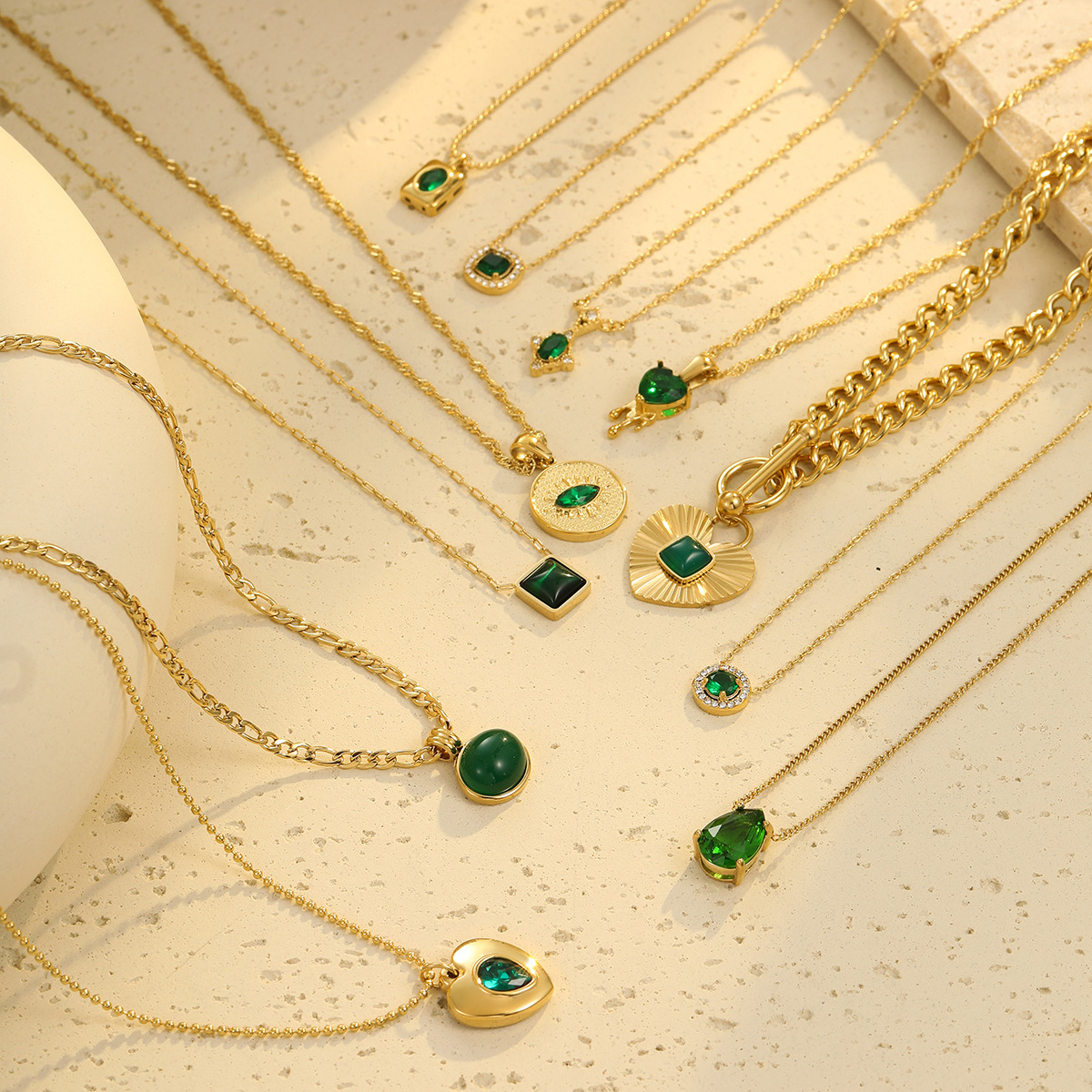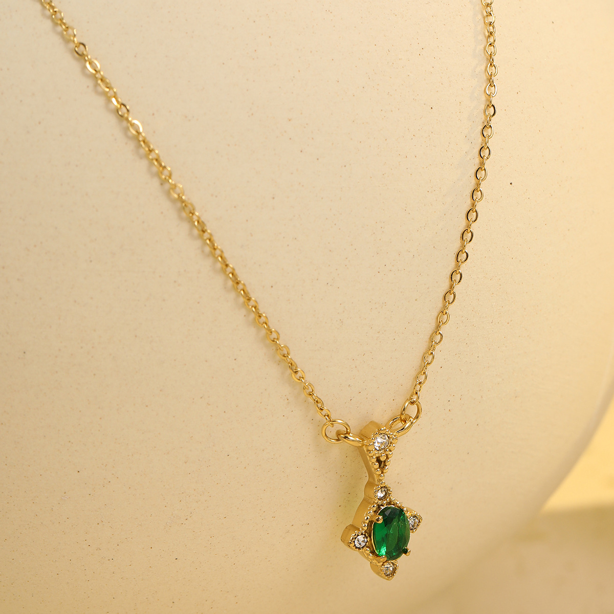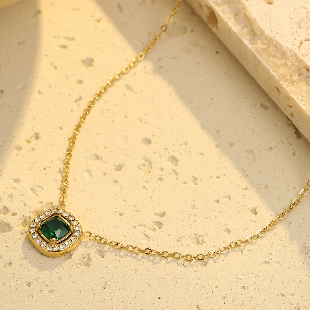 Retro Easy Matching Geometric Abstract Green Zircon Series 18K Gold Stainless Steel Necklace Women High Grade Clavicle Chain