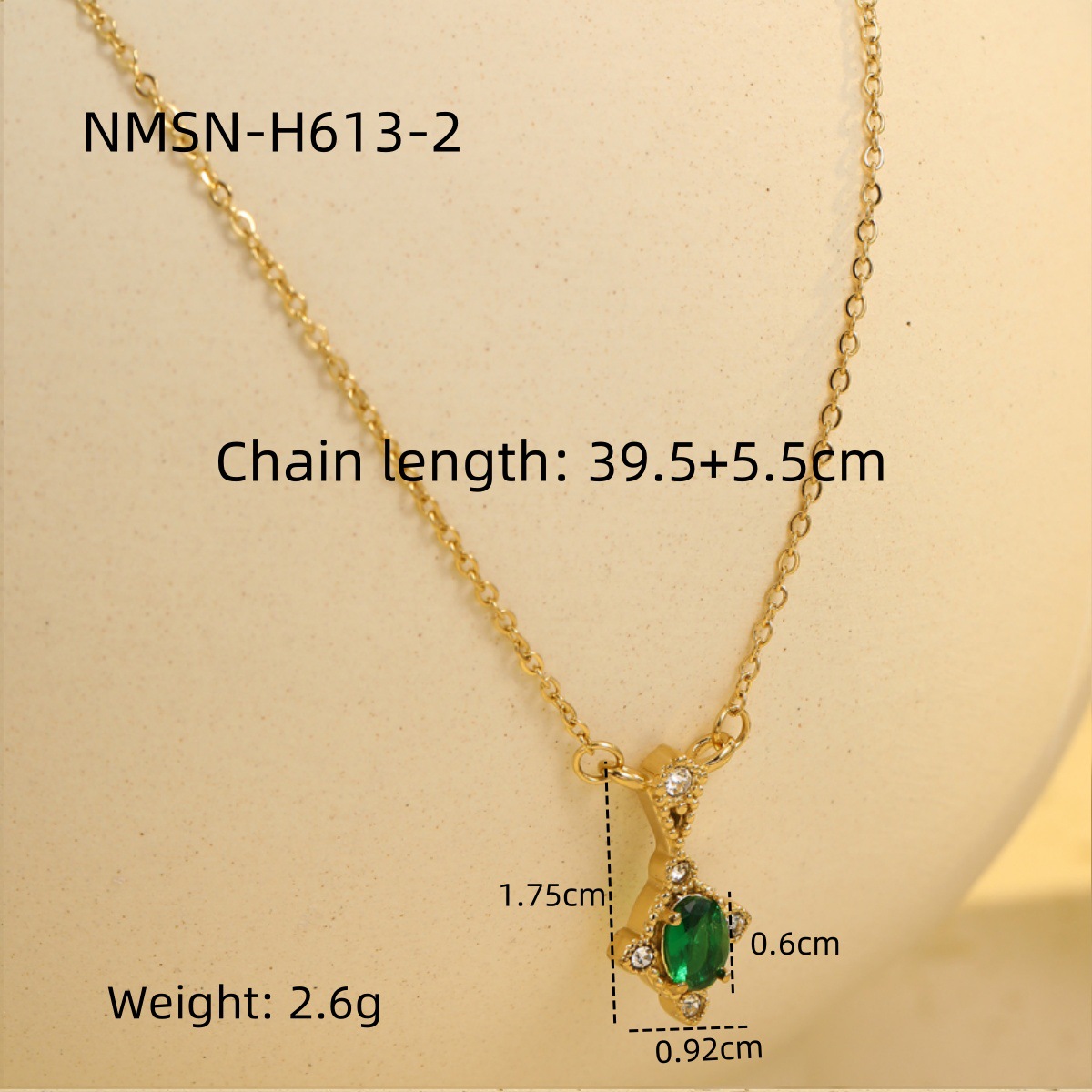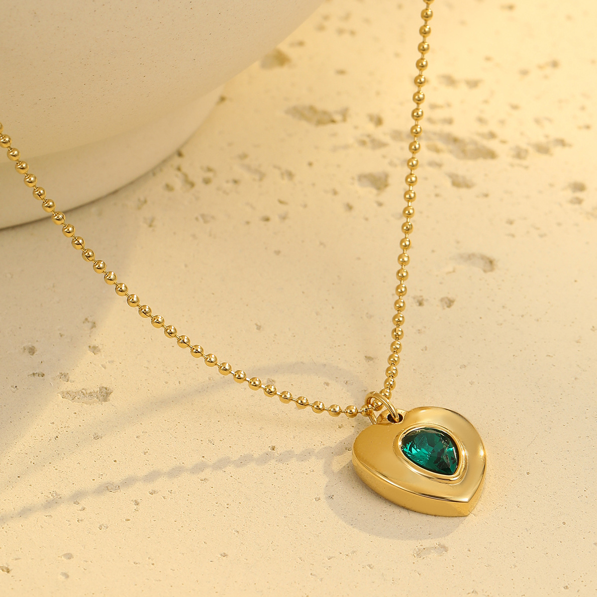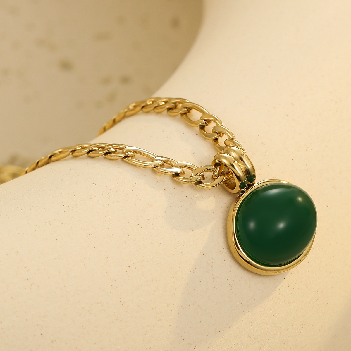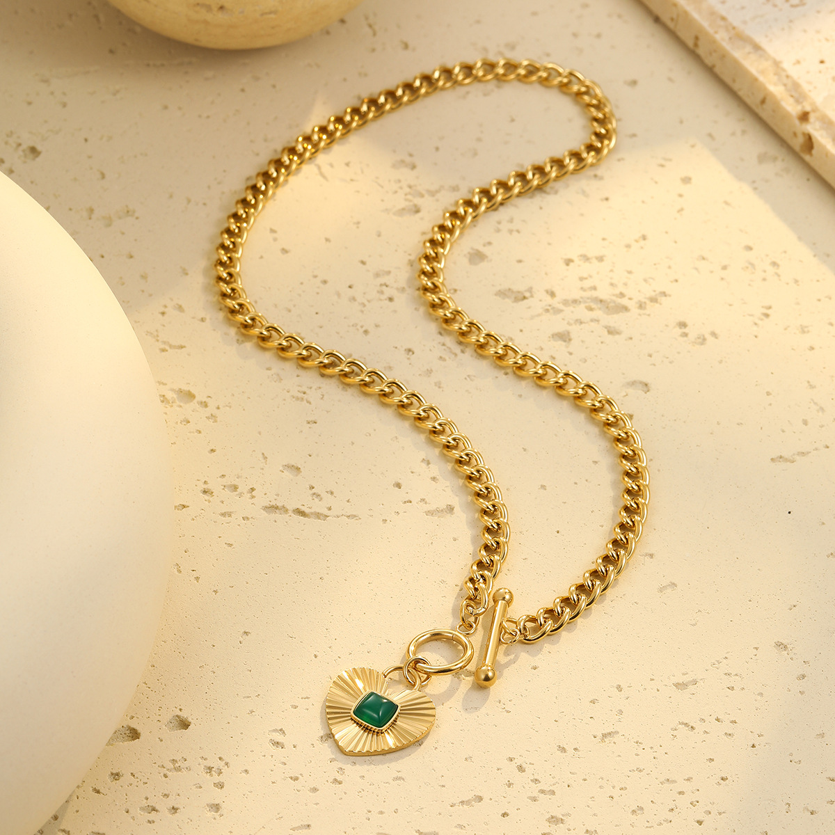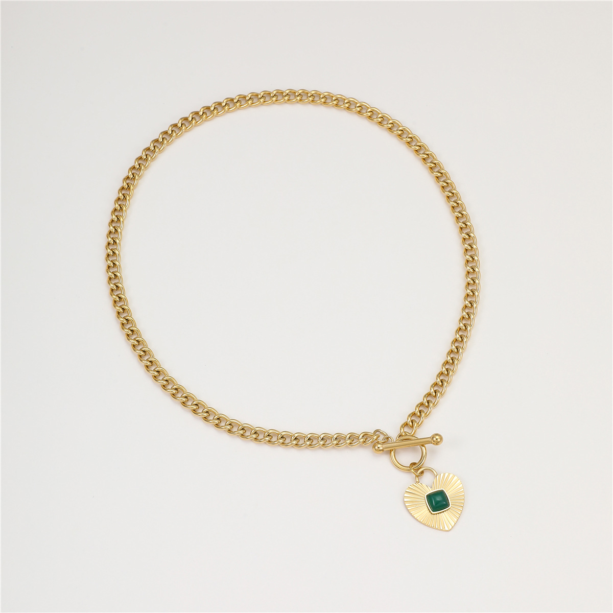 Retro Easy Matching Geometric Abstract Green Zircon Series 18K Gold Stainless Steel Necklace Women High Grade Clavicle Chain