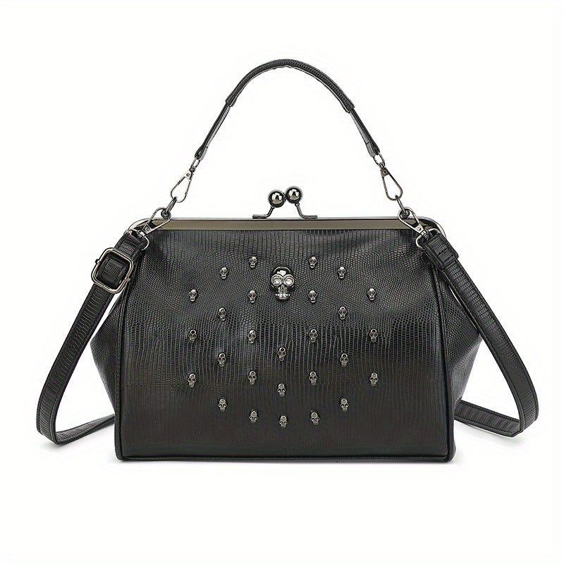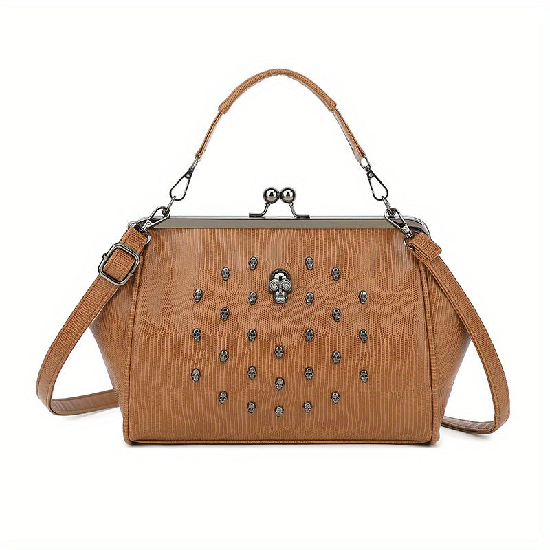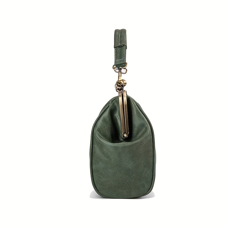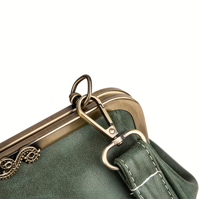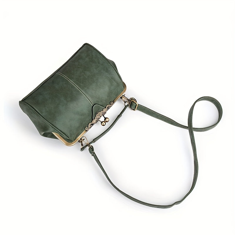 [Retro Faux Leather Crossbody] Retro-Inspired Thick Faux Leather Crossbody Bag - Detachable Strap, Classic Solid Color, Polyester Lining