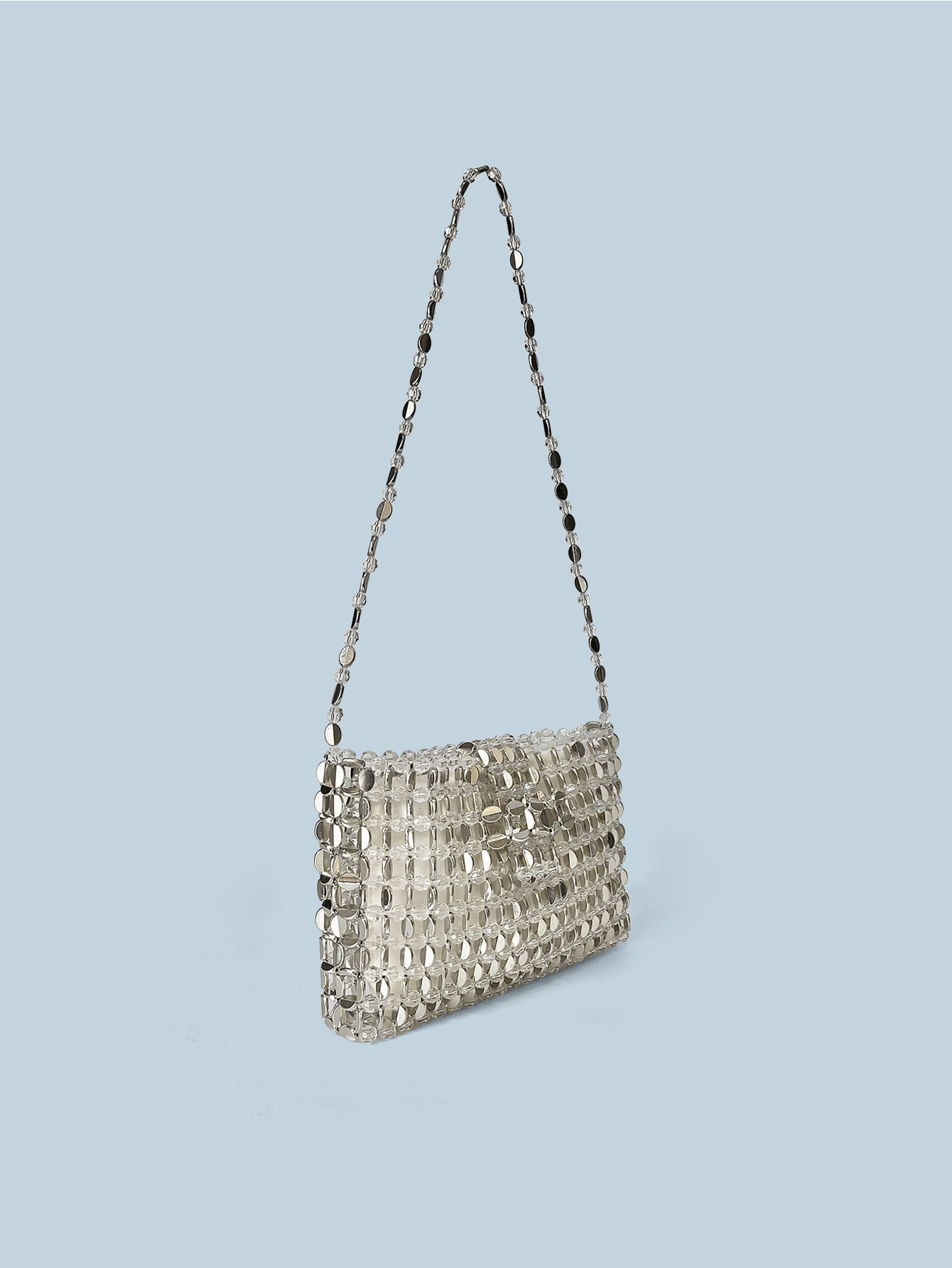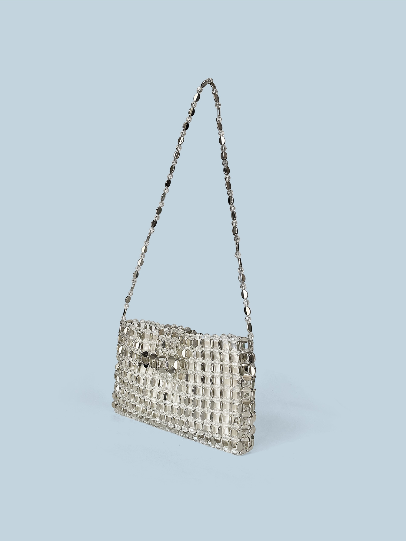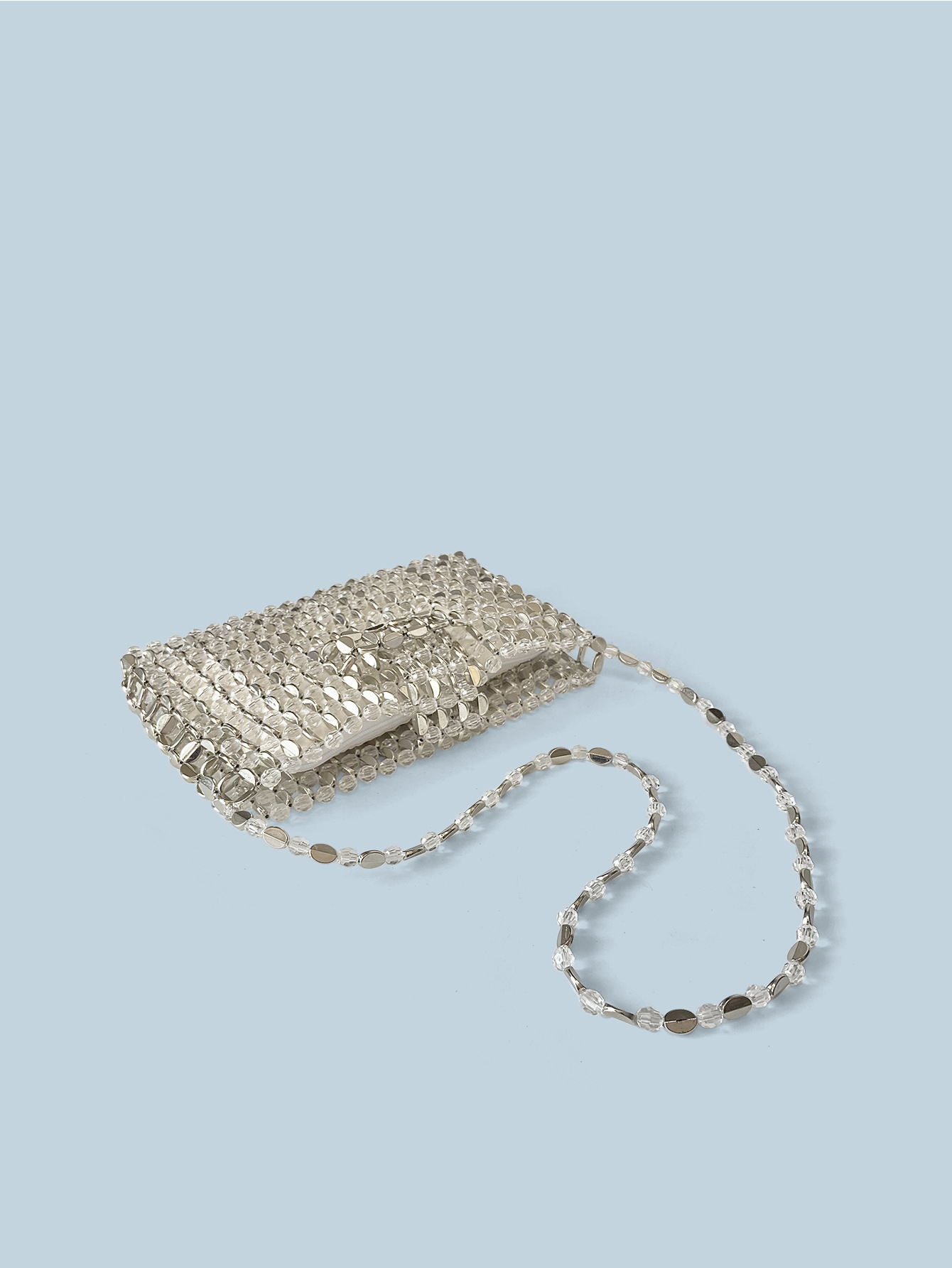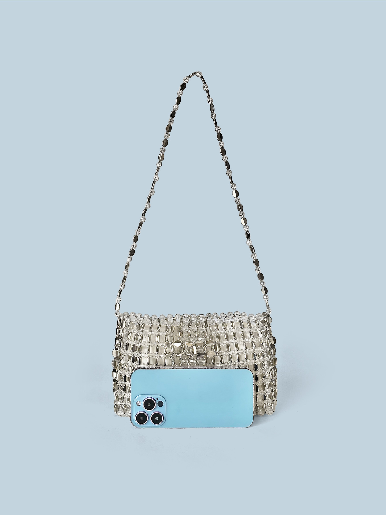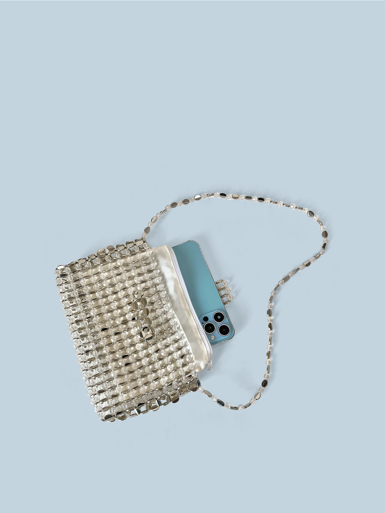 Retro Silver Beaded Bag Crossbody Bag Mobile Phone Bag Small Square Bag with Zip Hand Woven Bag