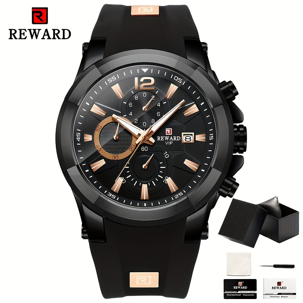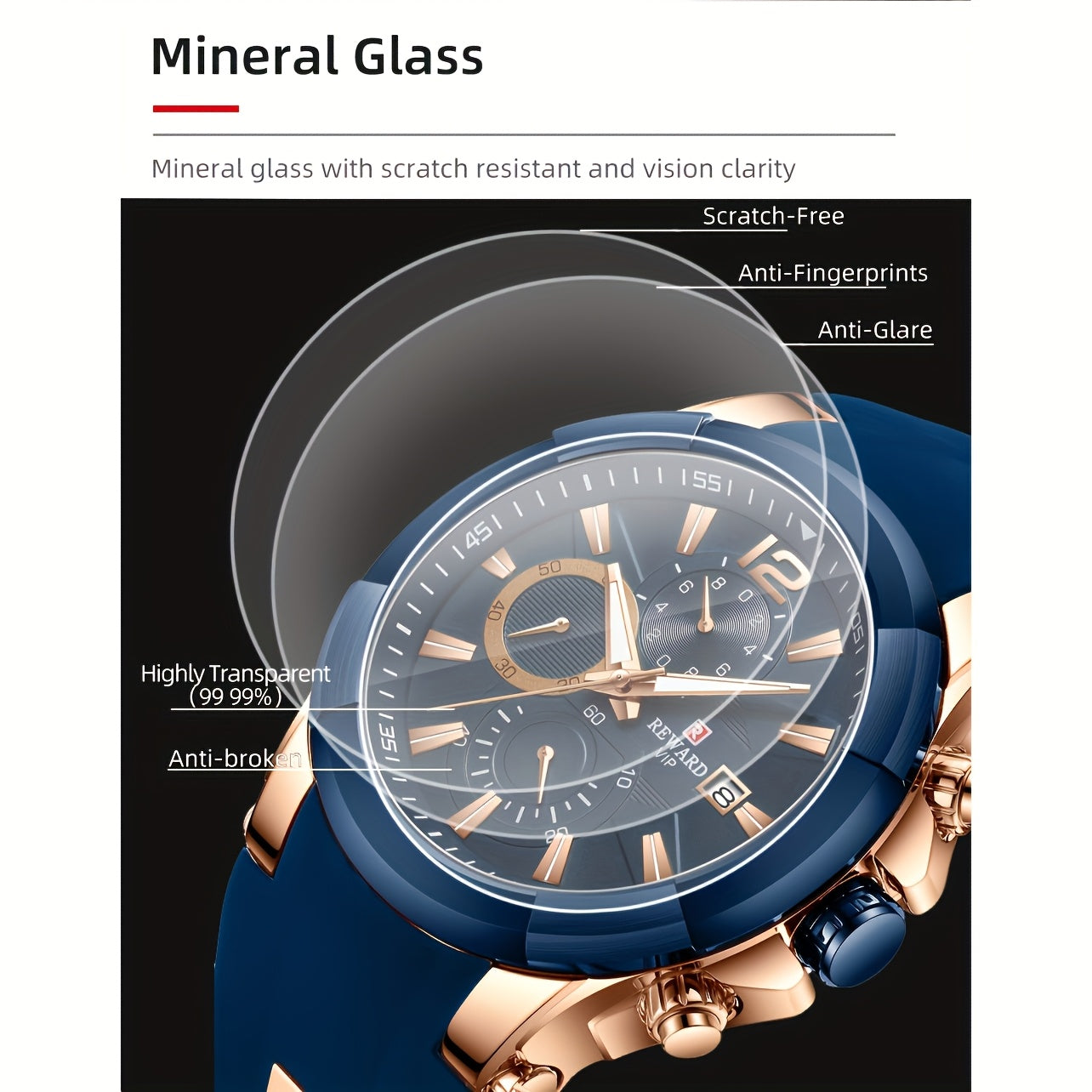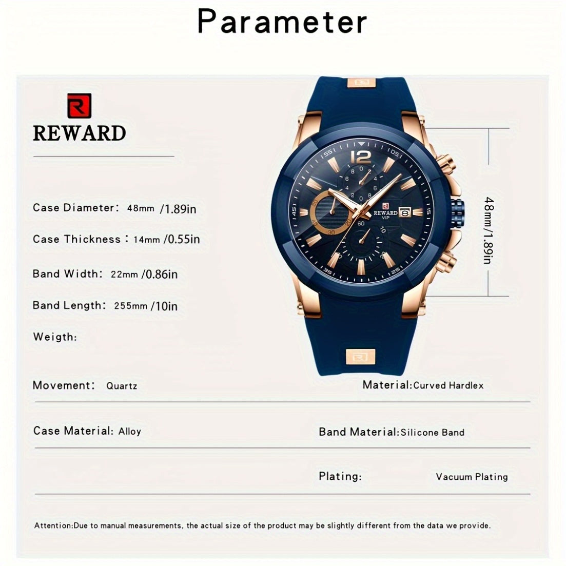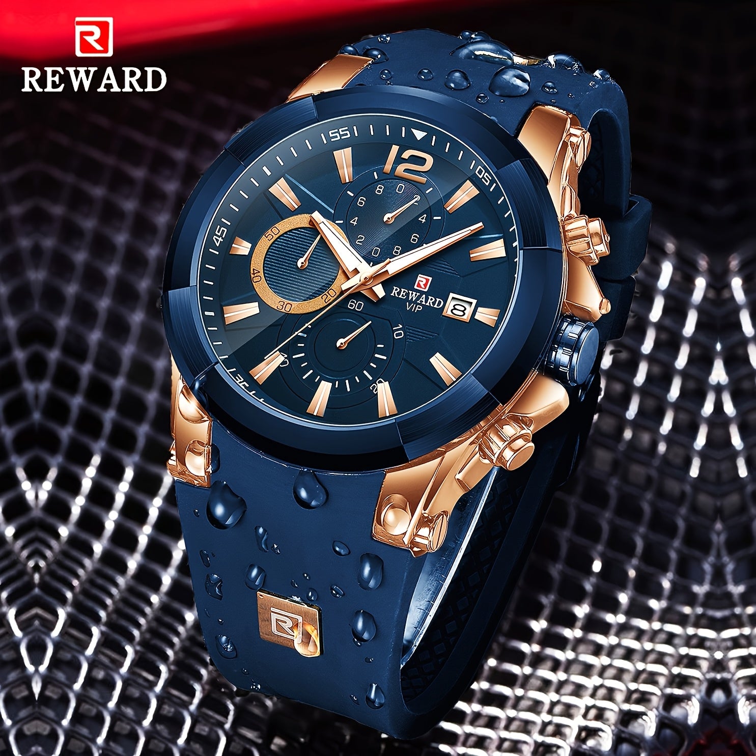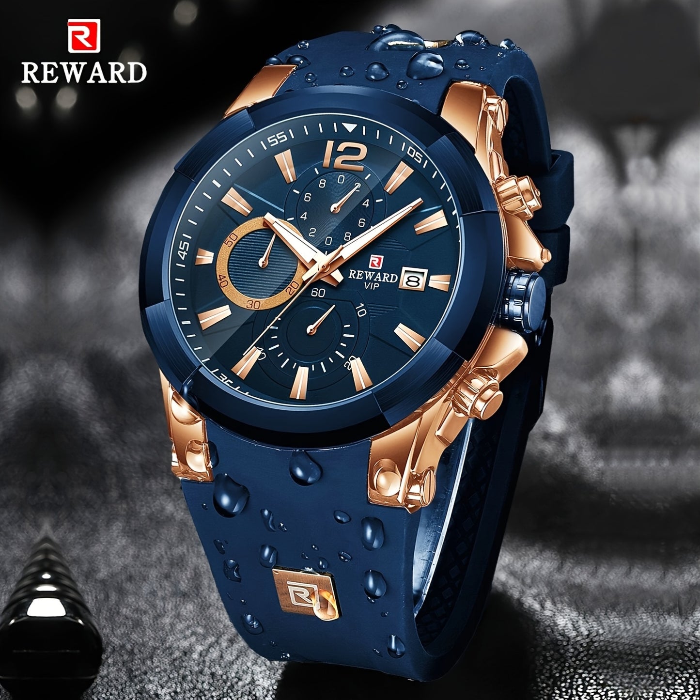 REWARD Men's Luxury Chronograph Sport Watch - Blue & Golden Accents, Quartz Movement with Date/Stopwatch/Second Timer, Casual Elegant Design for Casual Attire, Bling Watch, Versatile Wristwatch, Bold Accent Details, Durable Finish