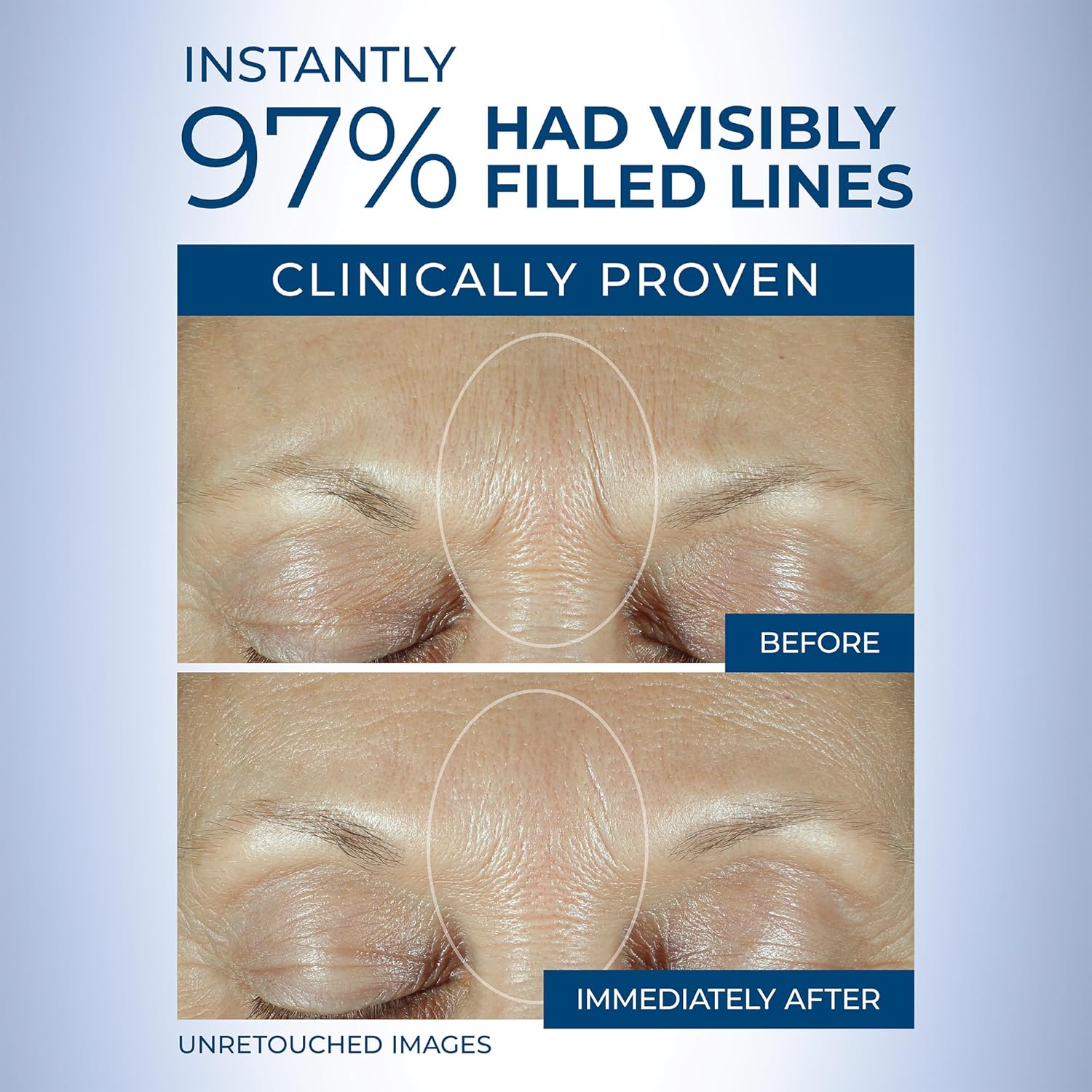 PROVEN RESULTS: In a clinical study, 97% of participants instantly had fine lines & wrinkles visibly plumped & filled - no injections needed. After 4 weeks, 100% had a visible improvement in the look of hard-to-treat wrinkles. Dermatologist tested. Fragrance-free. Paraben-free. Non-comedogenic. Phthalate-free.