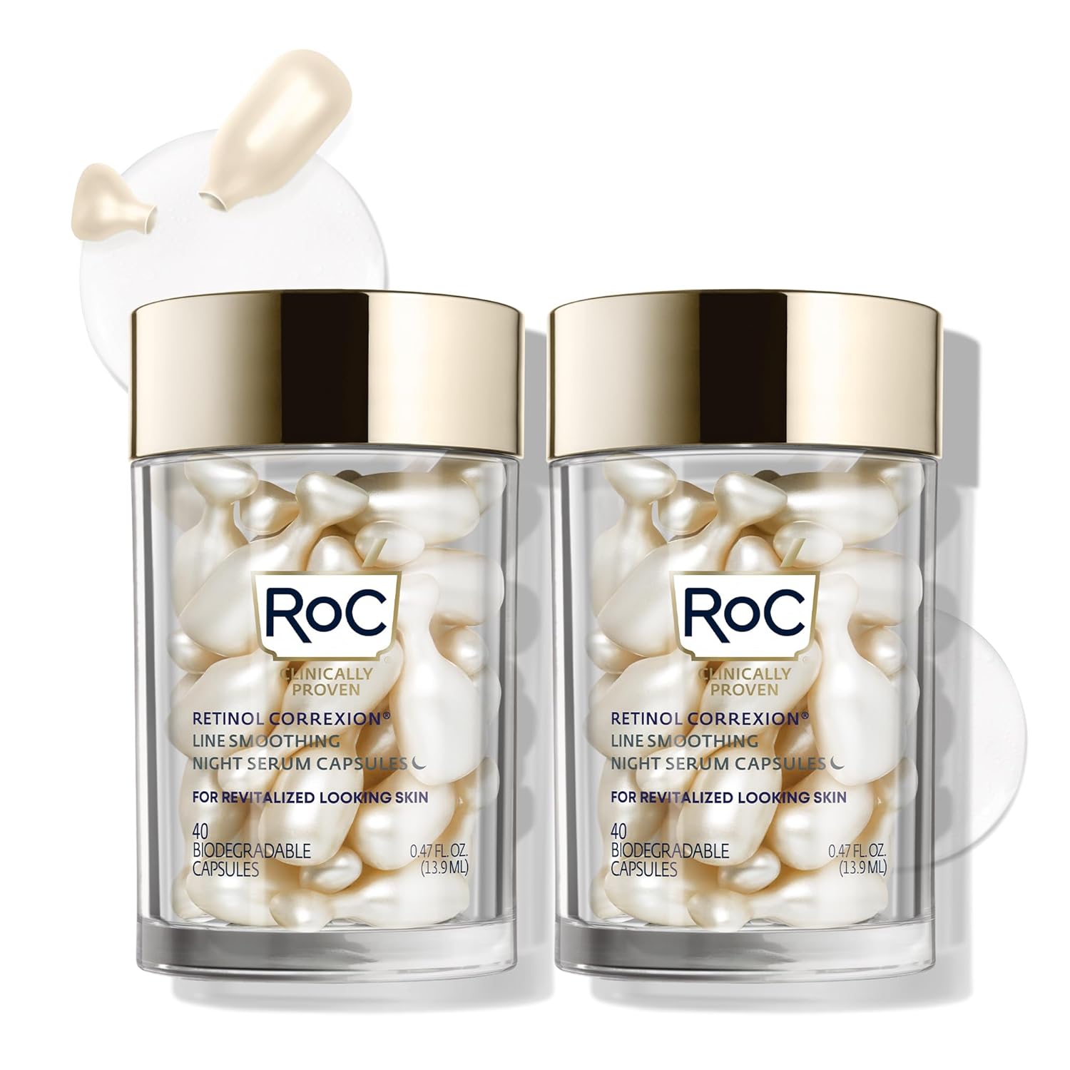 RoC Retinol Correxion Anti-Aging Wrinkle Night Serum, Daily Line Smoothing Skin Care Treatment for Fine Lines, Post-Acne Scars, 30 Individual Capsules, Unscented, 0.35 Fl Oz