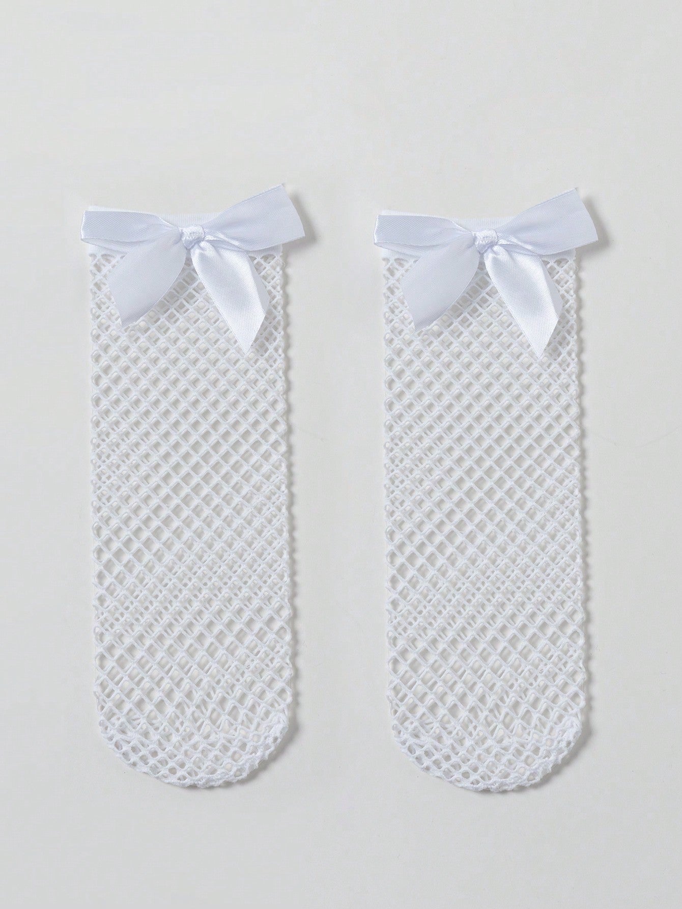 ROMWE Kawaii Women's Bowknot Decorated Fishnet Mid-Calf Stockings