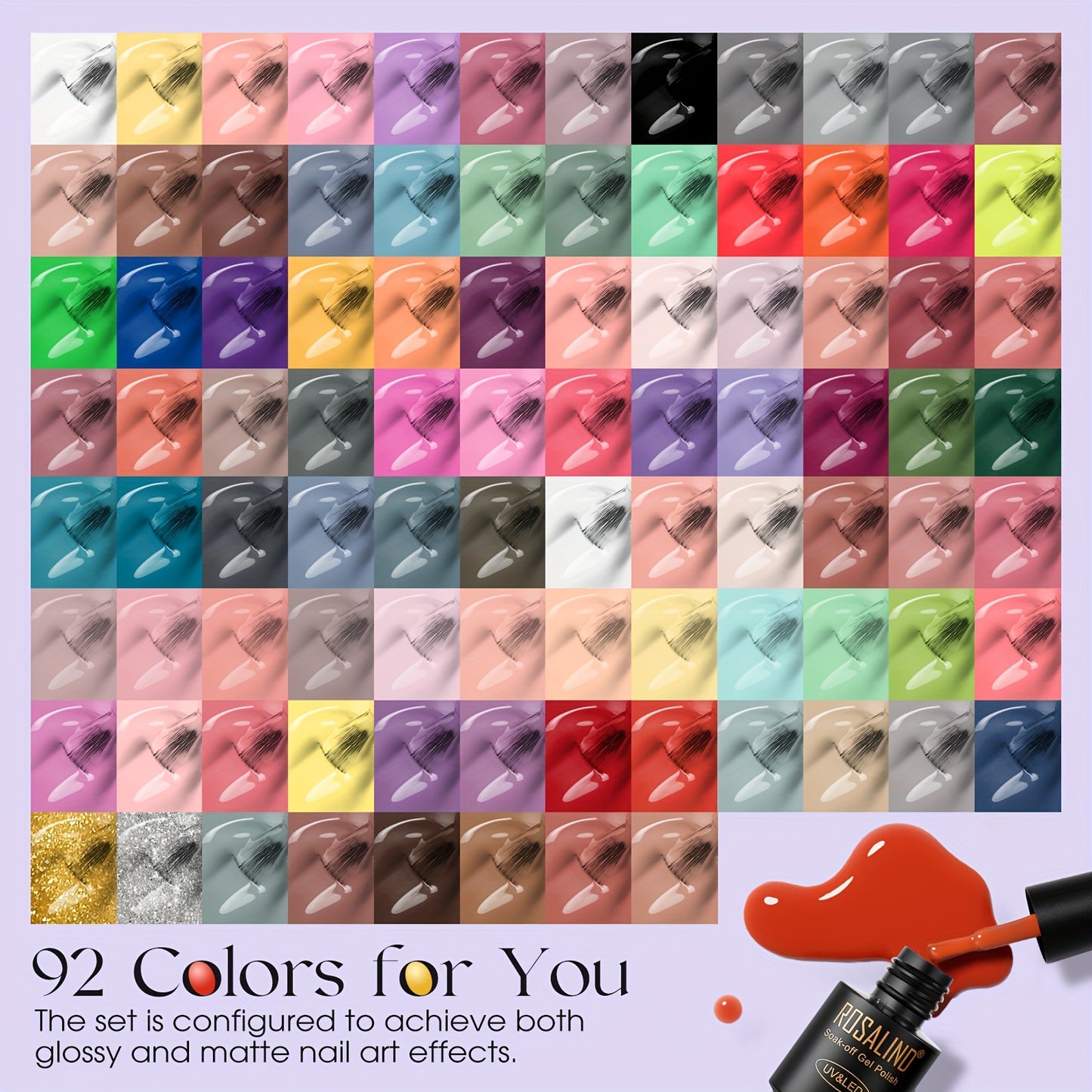 ROSALIND 100pcs Gel Nail Polish Set with Box-92 Vibrant Color UV Nail Lamp Gel Polish Kit 8pcs Base Coat Glossy Top Matt Top Coat Long Lasting Nail Art Design At Salon Or Home Perfect Nail Gift for Halloween/Christmas