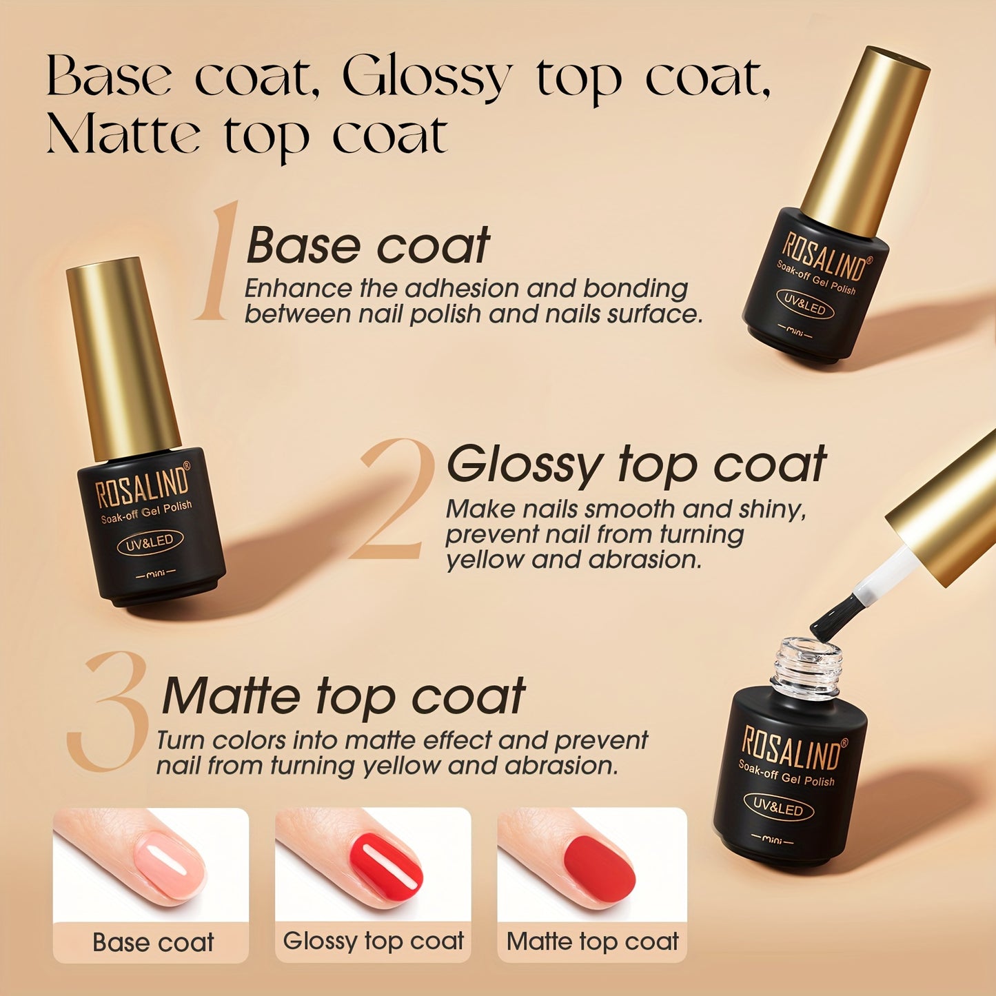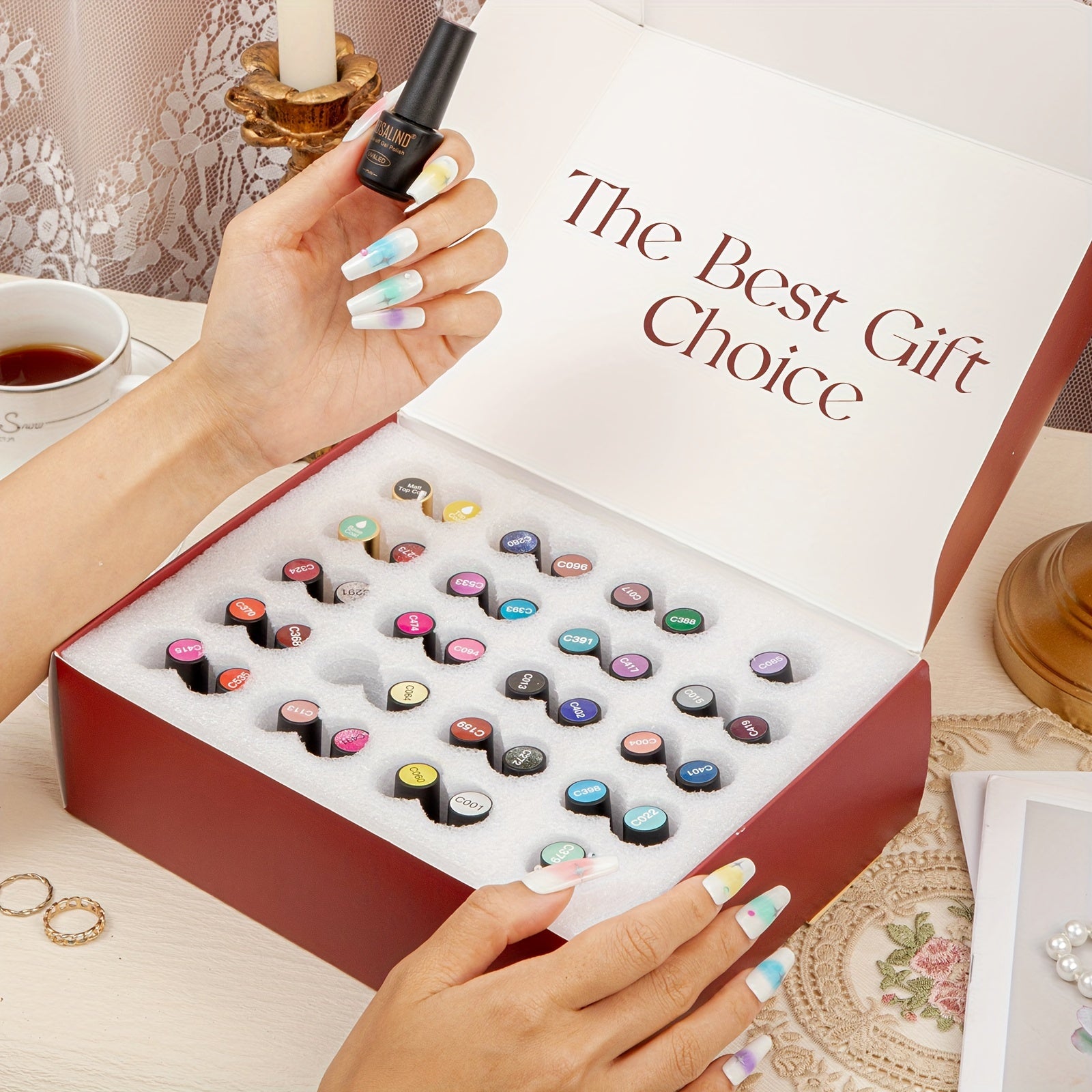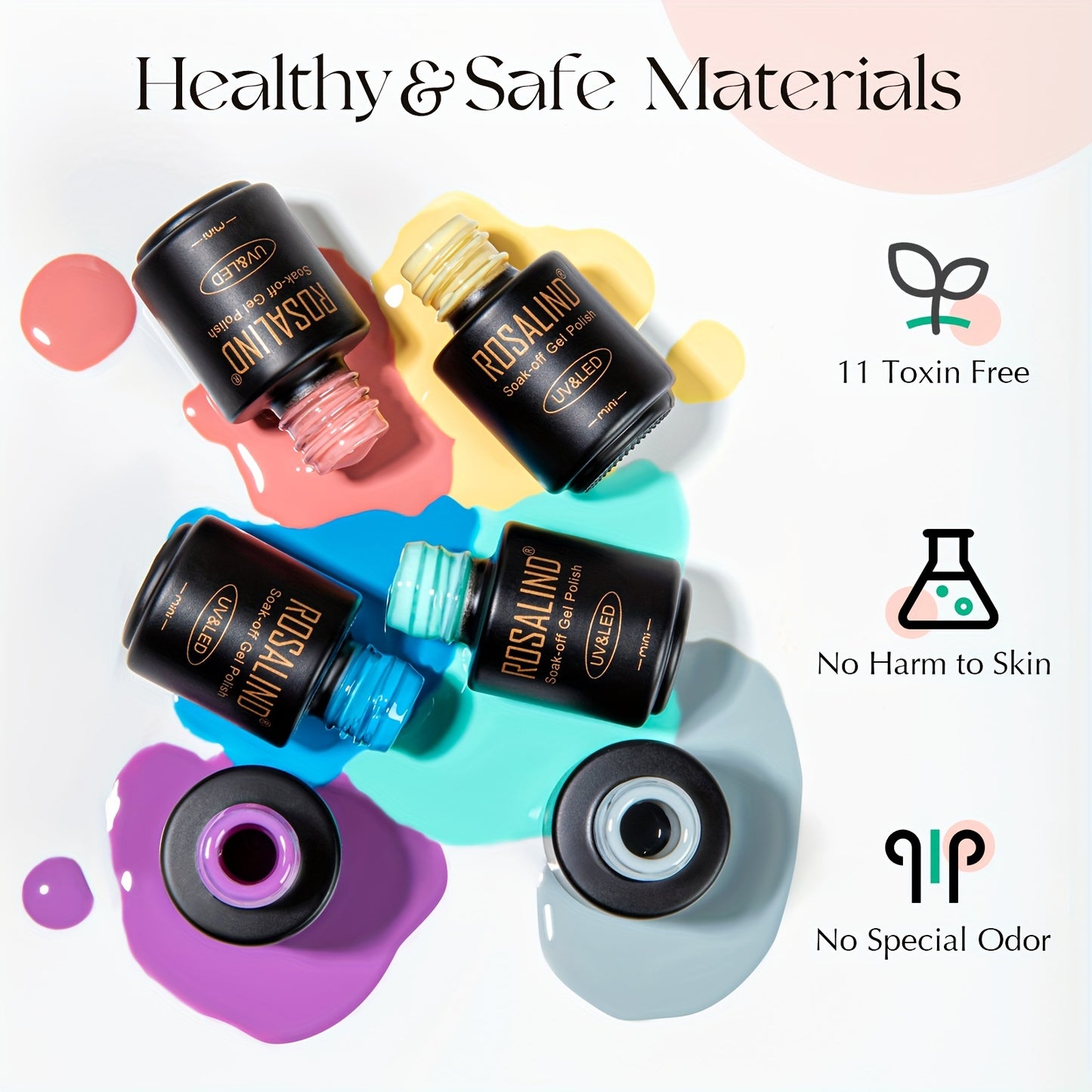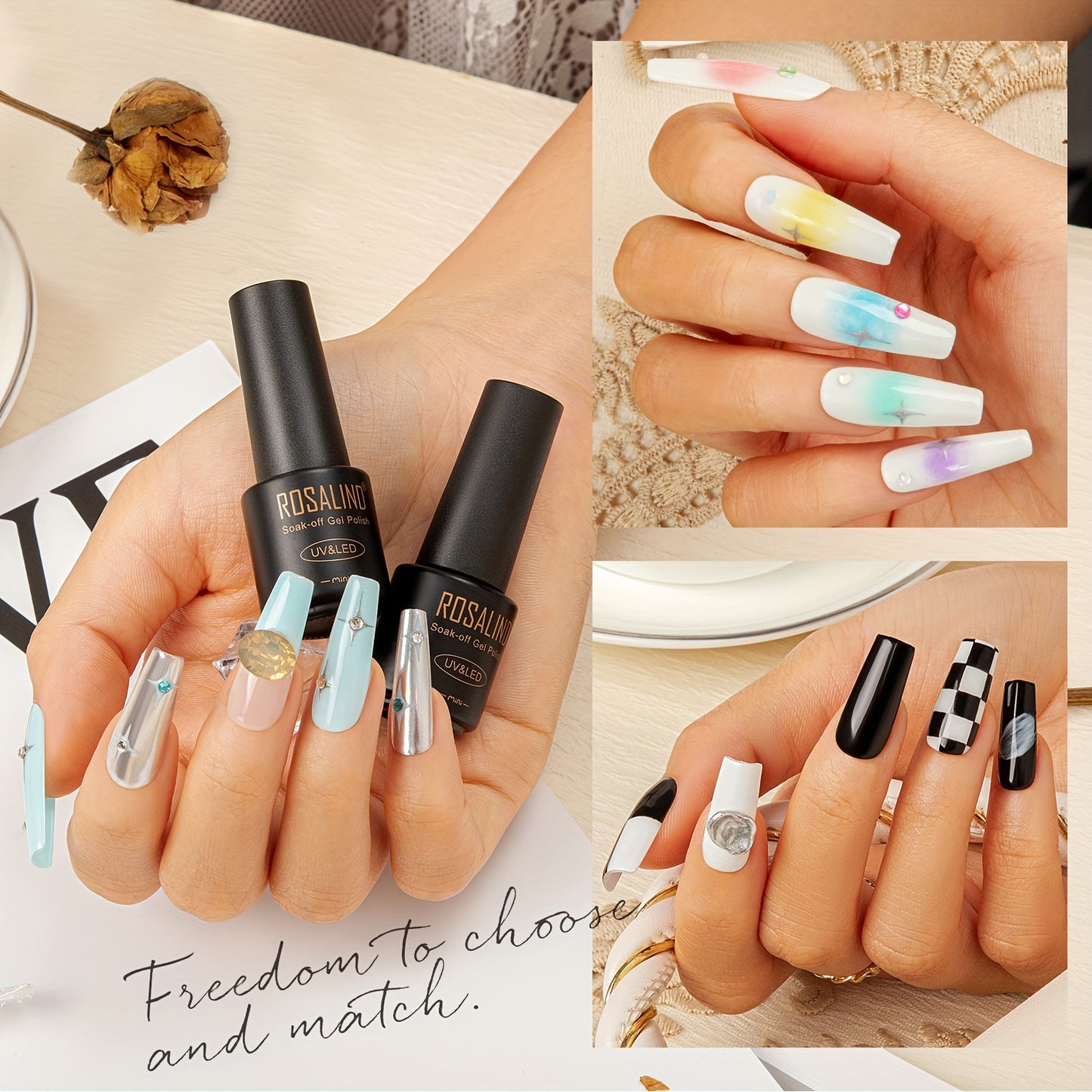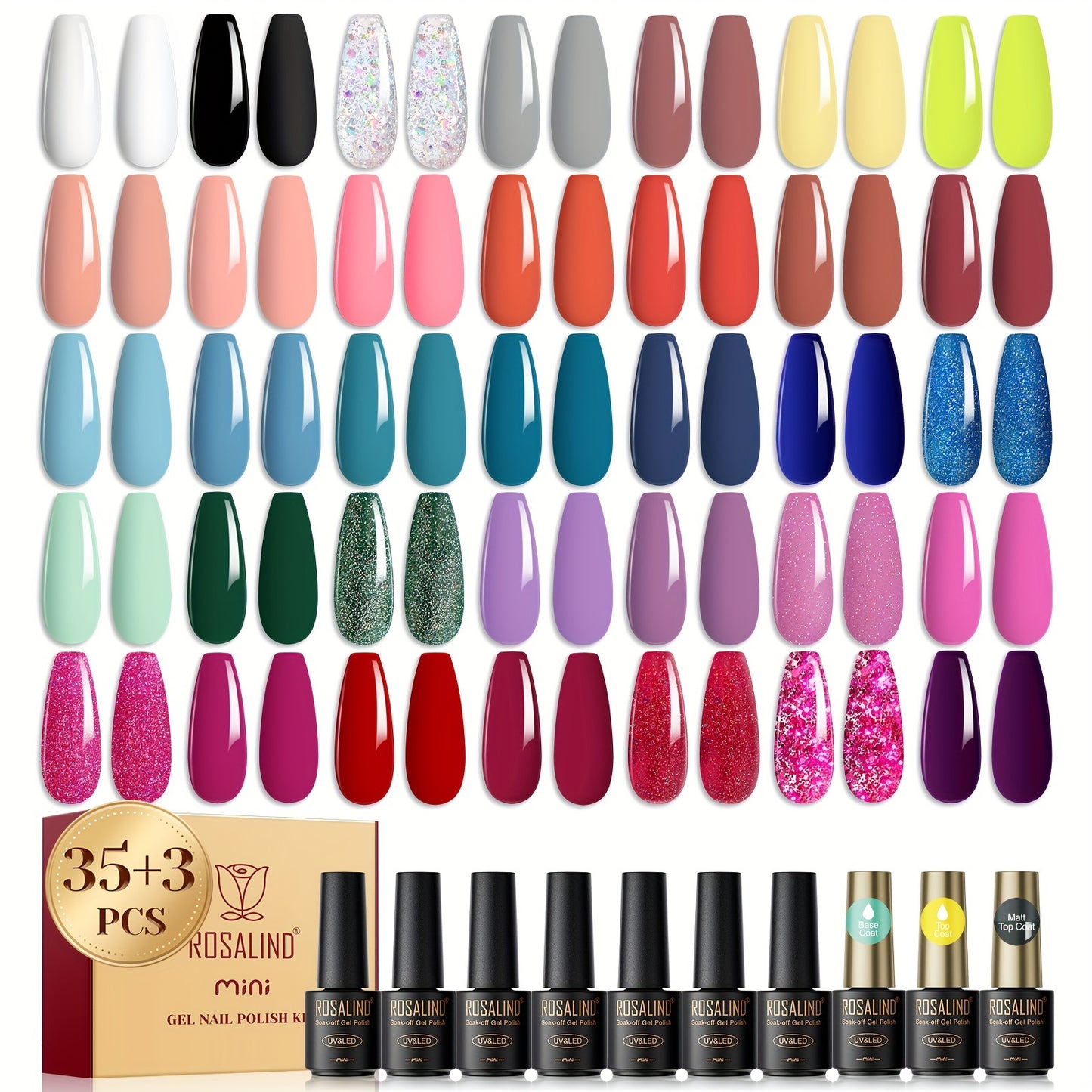 ROSALIND 38PCS Gel Nail Polish White Black Pink Color Gel Polish Long Lasting Base Top Coat Nail Polish Gel Set For Summer Nail Art Gift Nails Kit For Girls