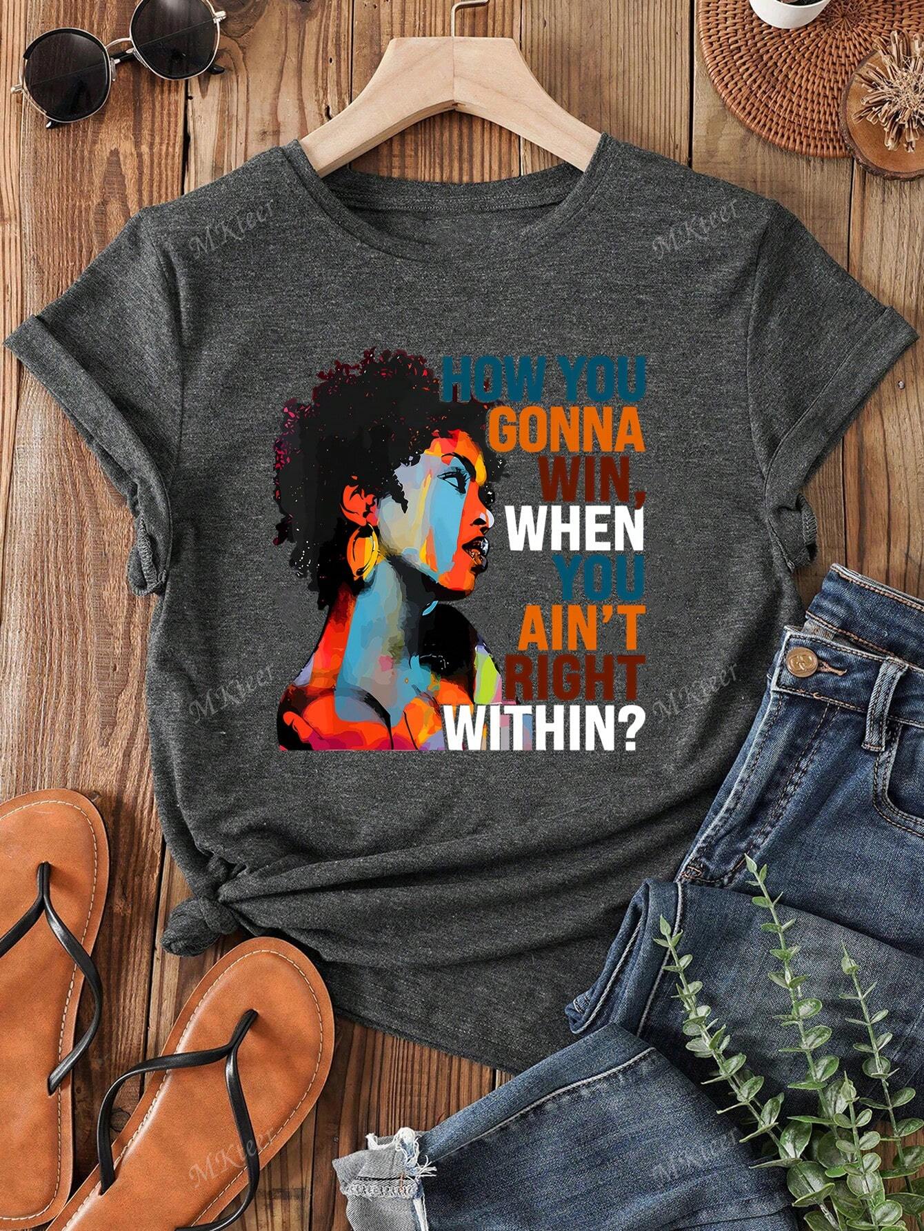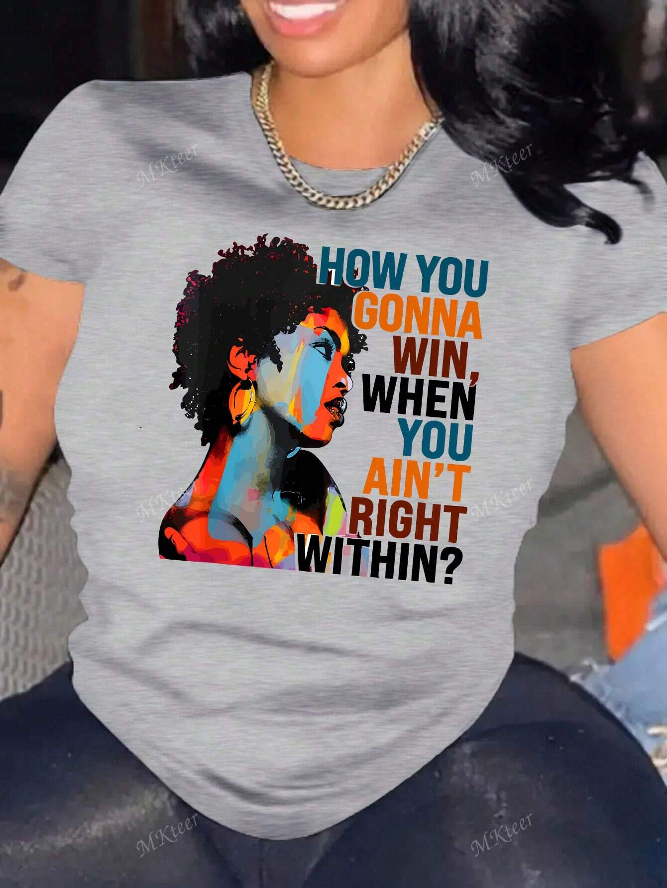 Round Neck Letter Print Women Short Sleeve T-Shirt