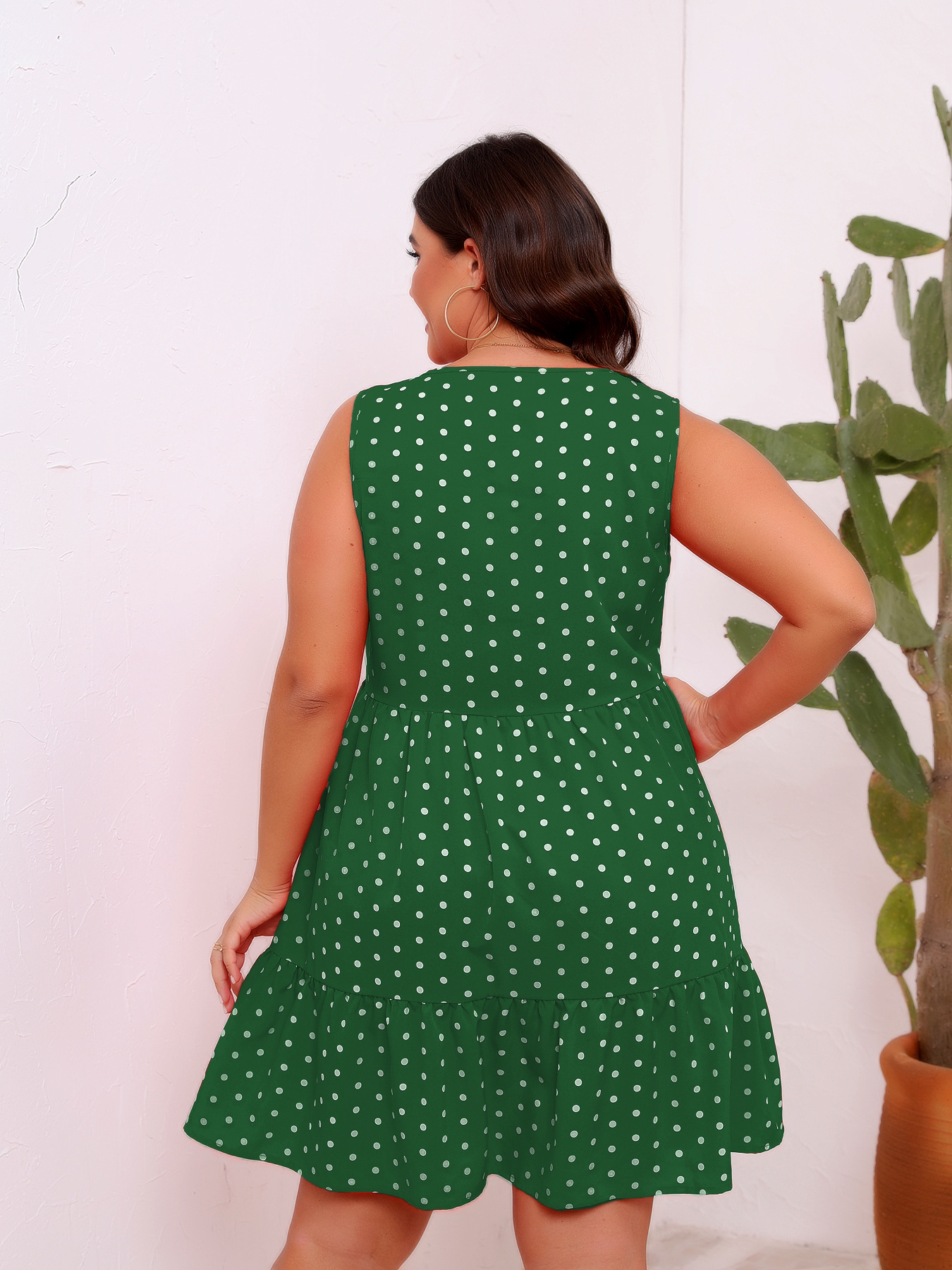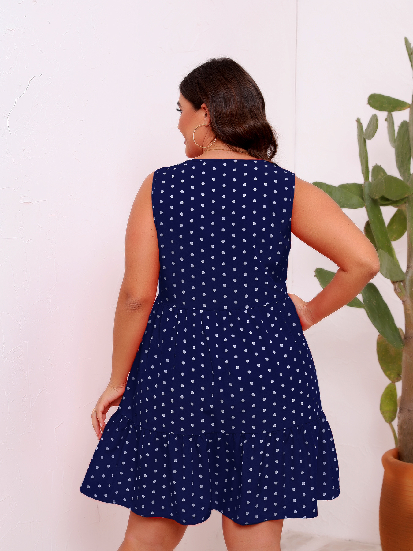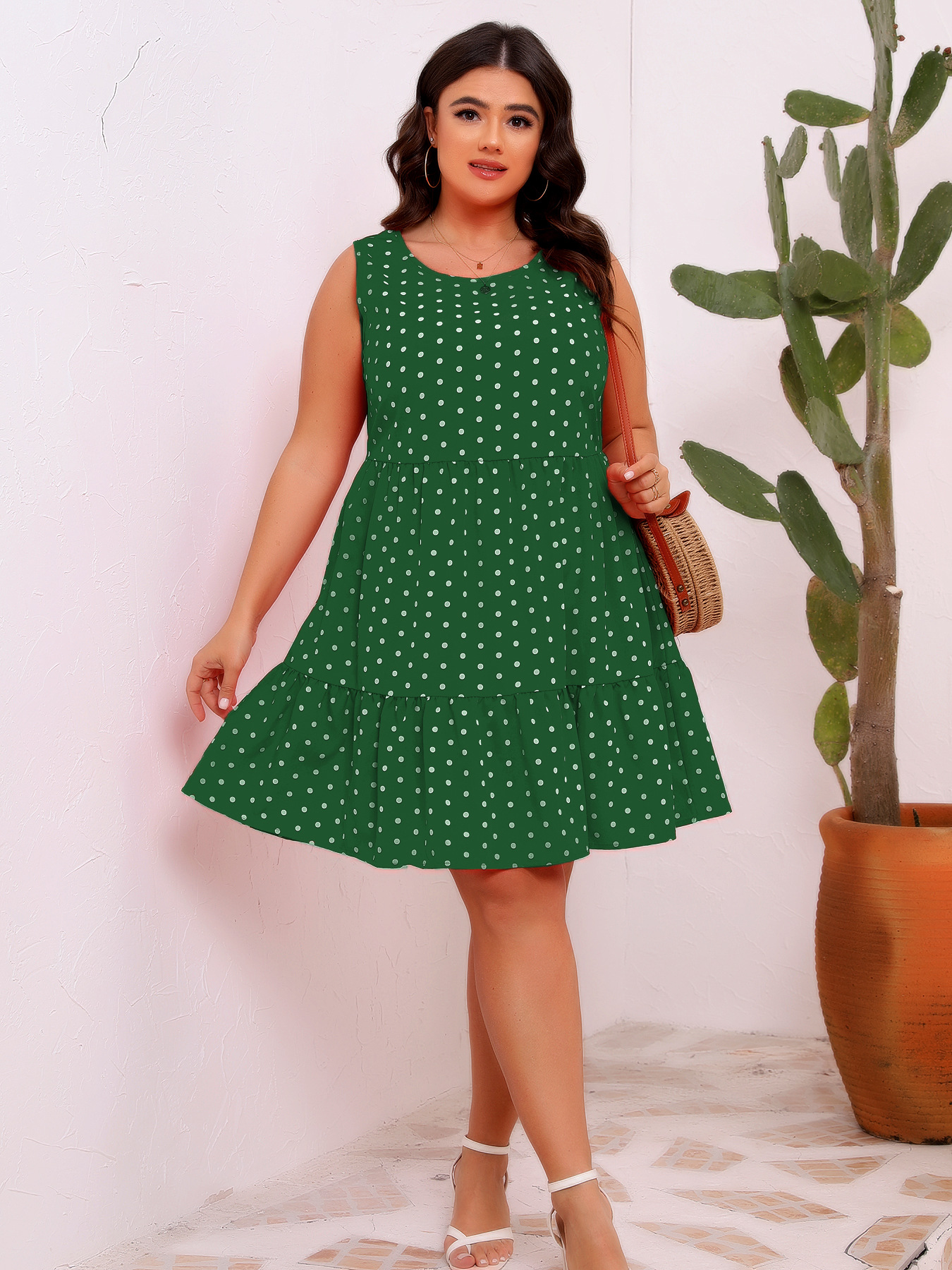 Round Neck Sleeveless Polka Dot Loose Fitting Large Hem Ruffled Dress