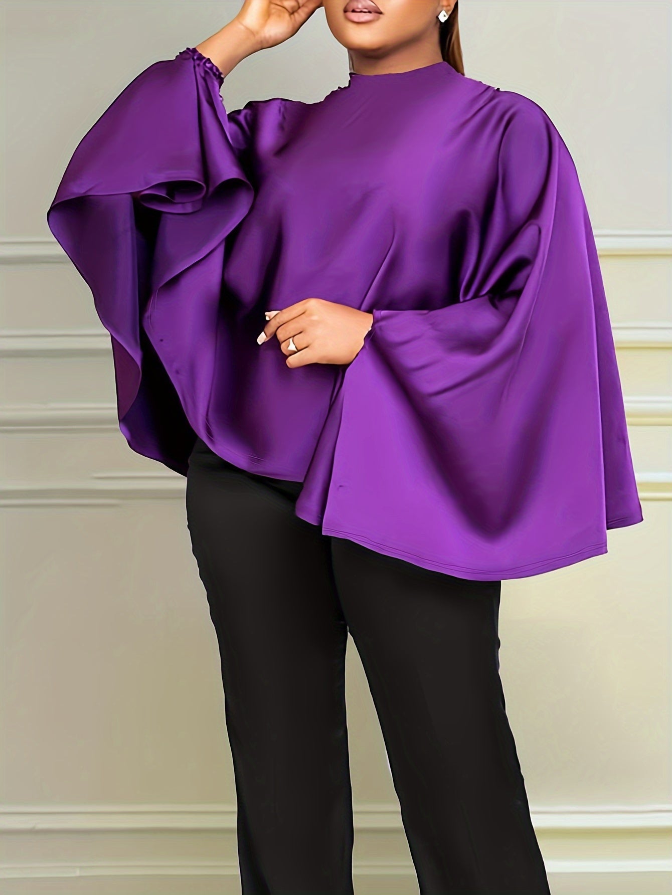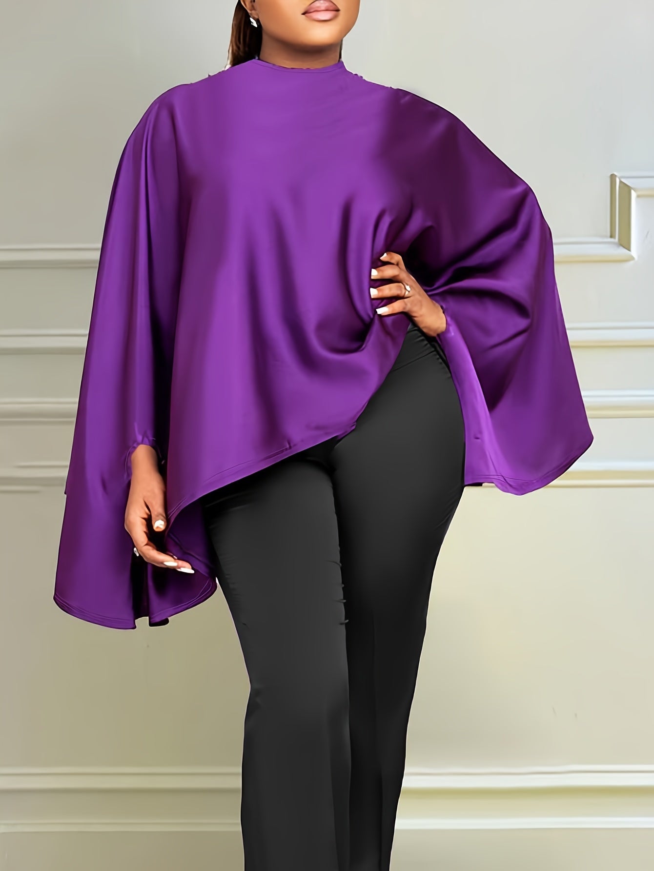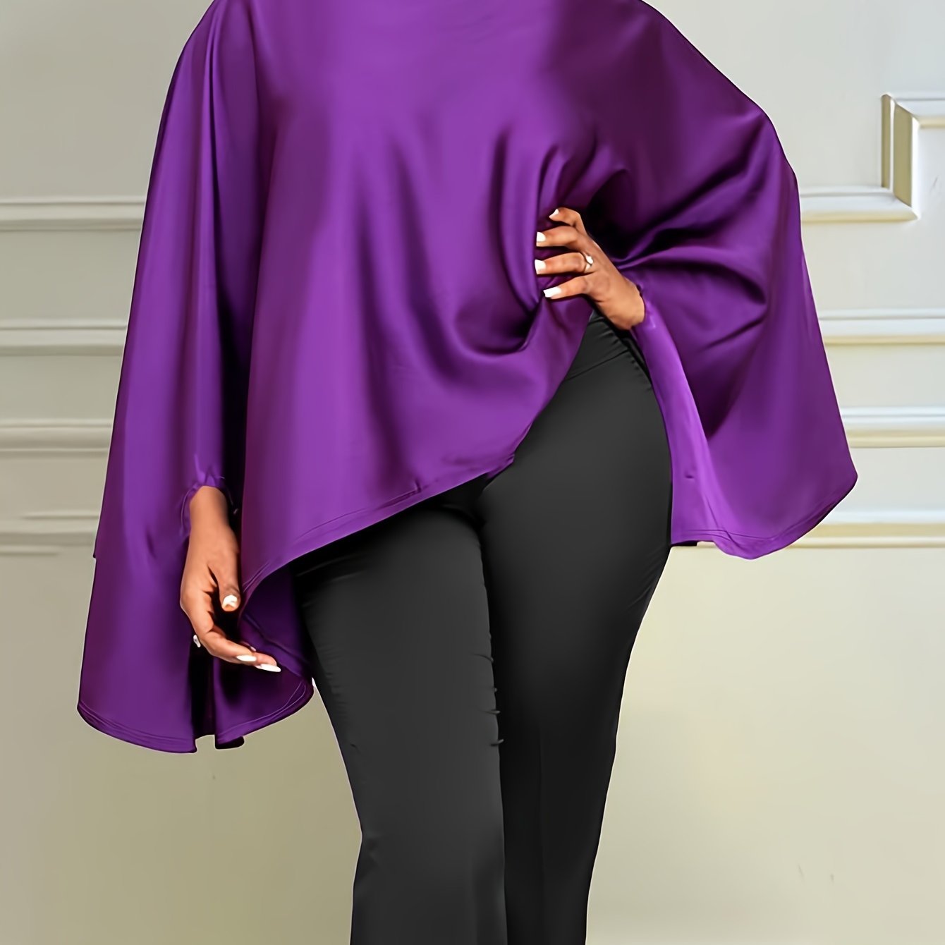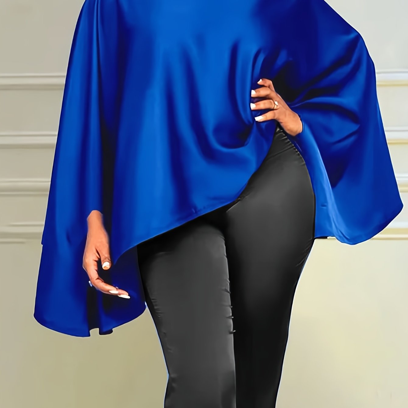 [Royal Blue Cape-Style Top] Royal Blue Plus Size Women's Cape-Style Top - Flowing, Loose Fit, Polyester & Elastane Blend - Batwing Sleeves, Round Neck, Non-Sheer