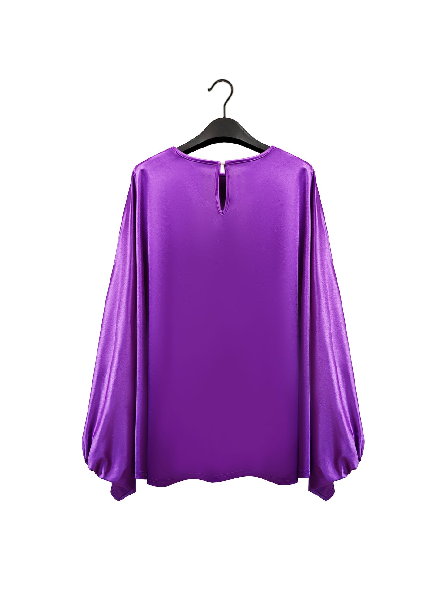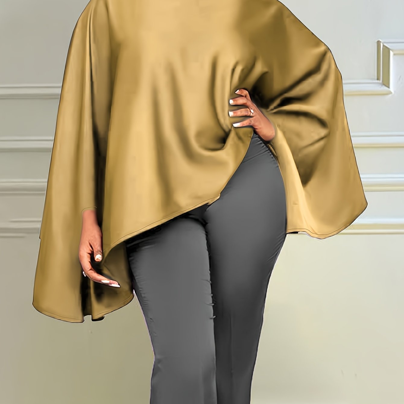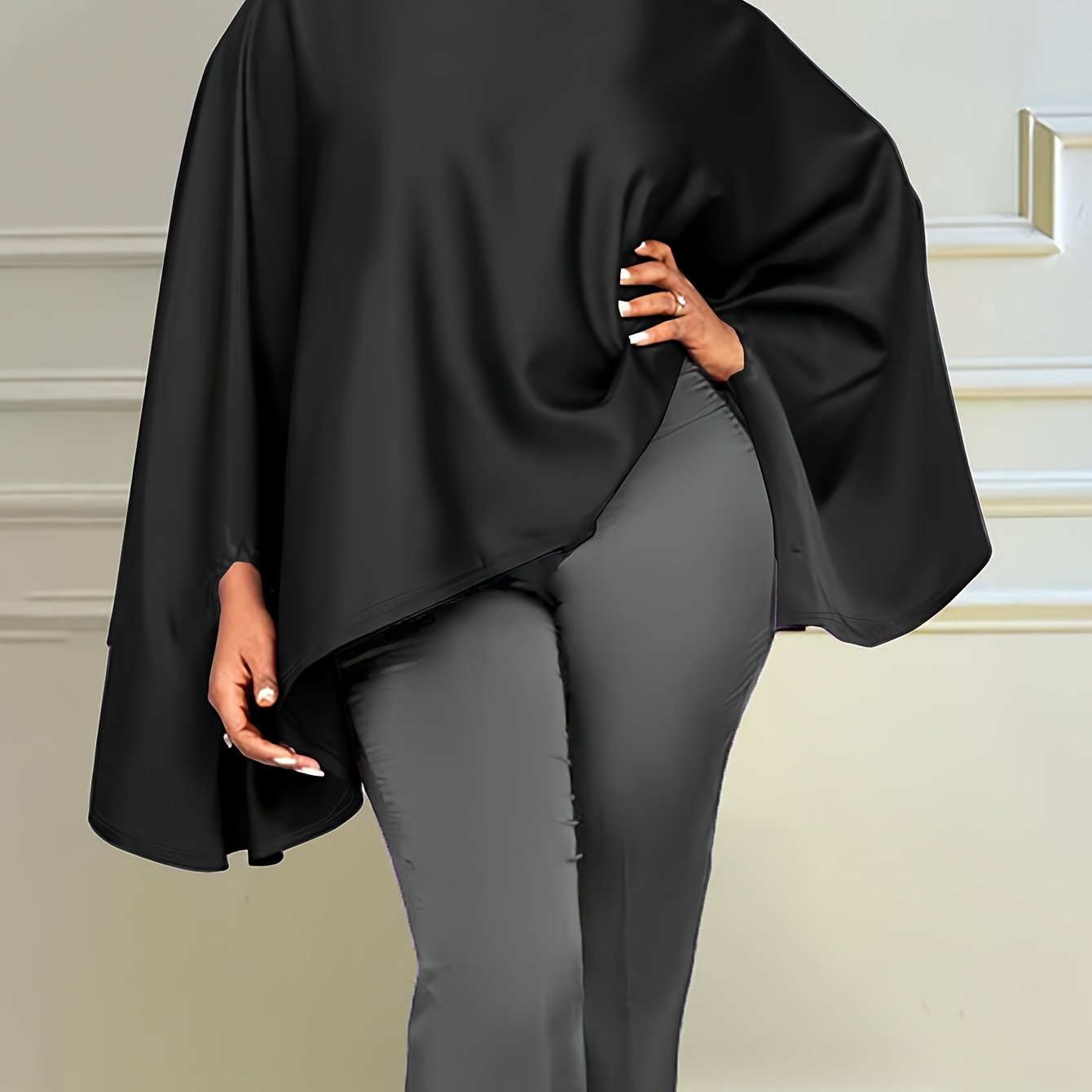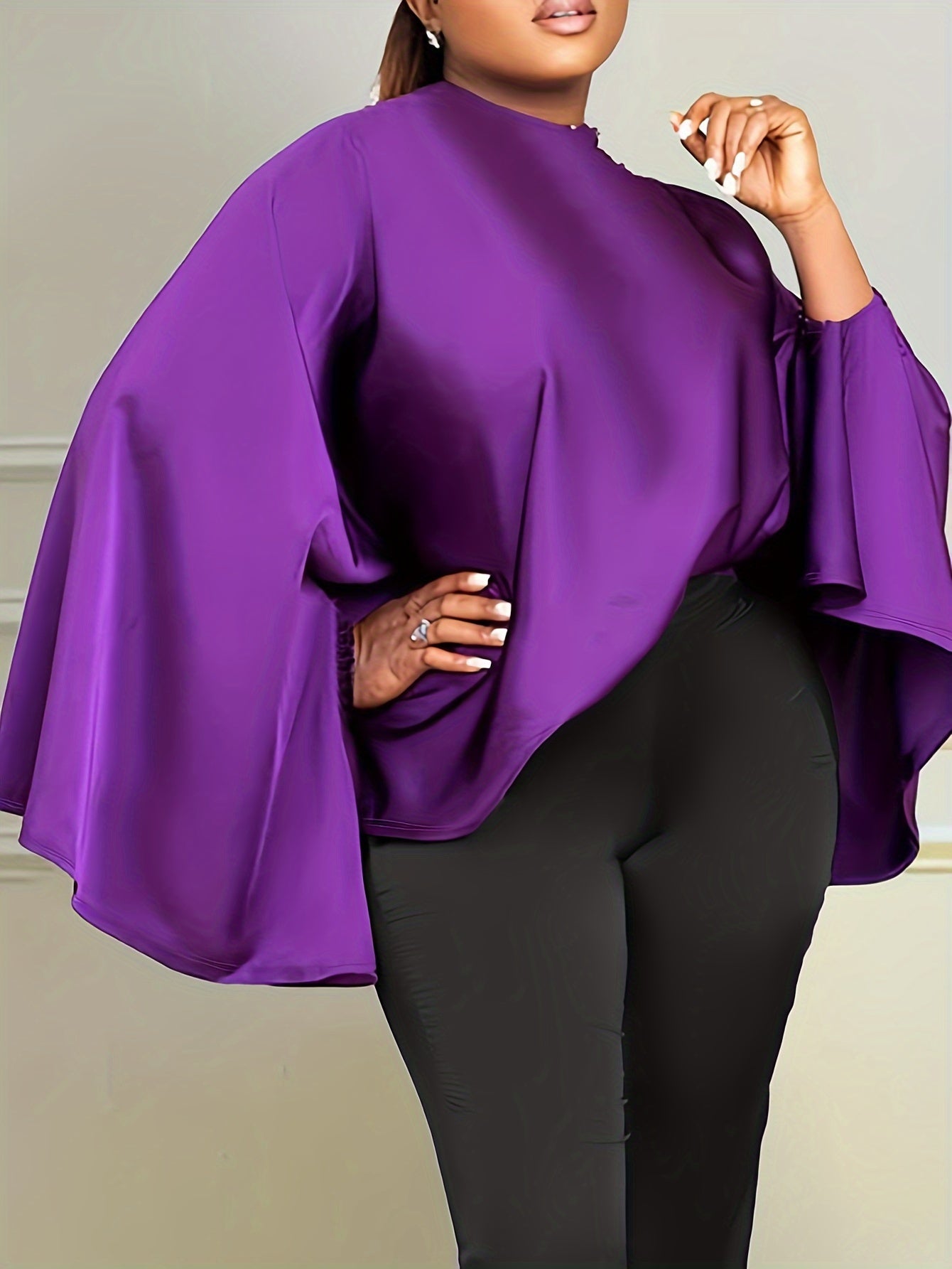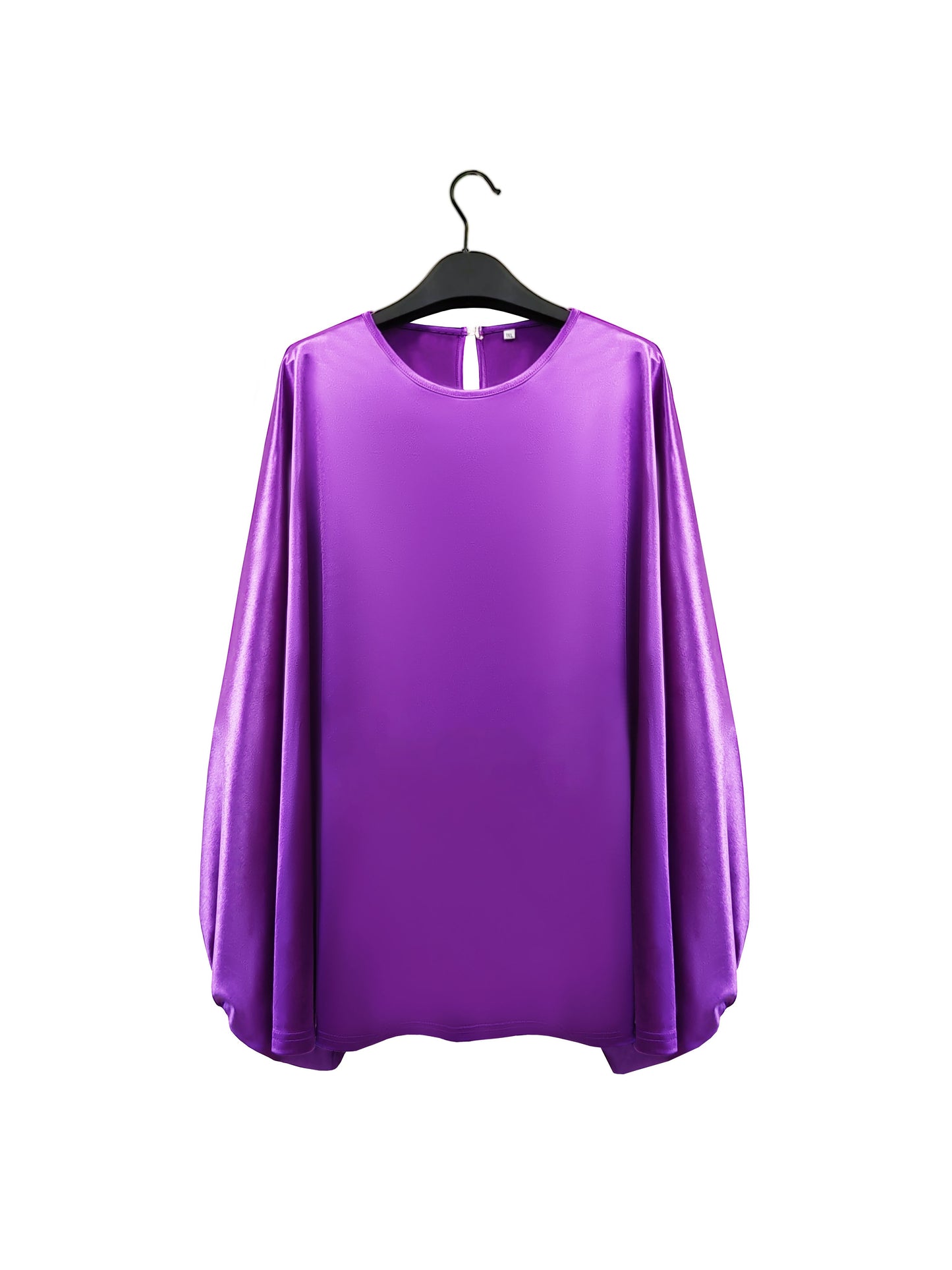 [Royal Blue Cape-Style Top] Royal Blue Plus Size Women's Cape-Style Top - Flowing, Loose Fit, Polyester & Elastane Blend - Batwing Sleeves, Round Neck, Non-Sheer