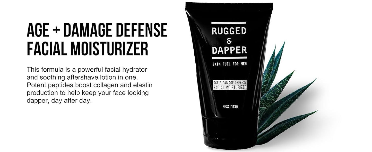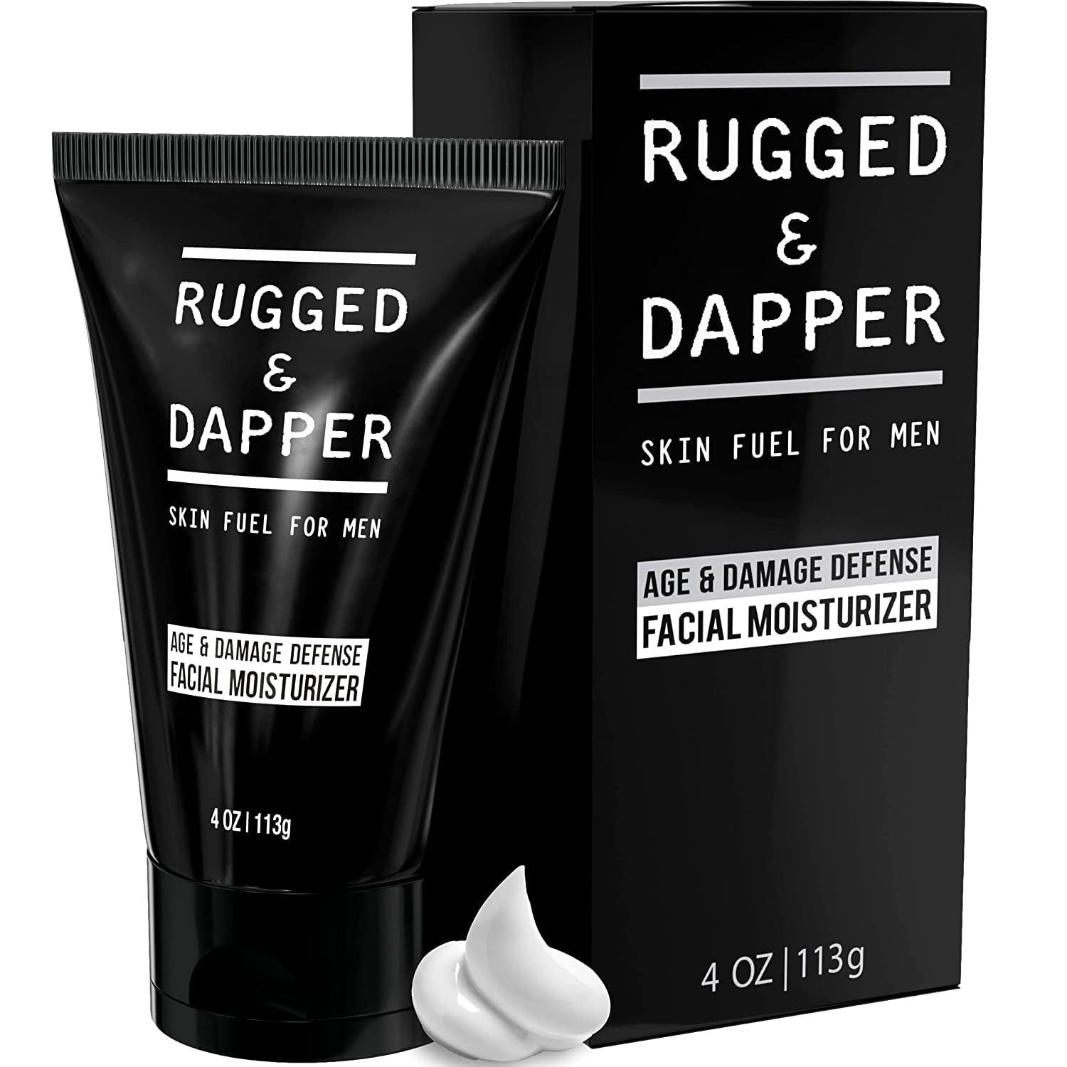 RUGGED & DAPPER Age Defense Mens Face Moisturizer | 4oz | Hydrating Mens Face Lotion | Unscented + Anti- Aging Formula for Clear Skin | Natural Ingredients | Made in USA