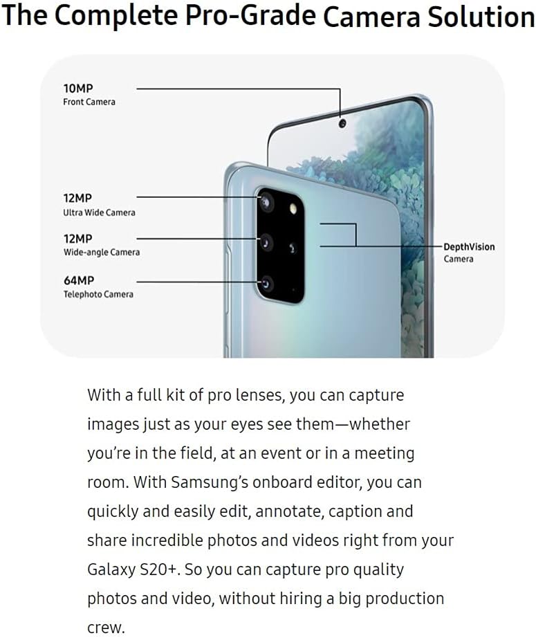 Samsung Galaxy S20+ 5G, US Version, 128GB - Unlocked