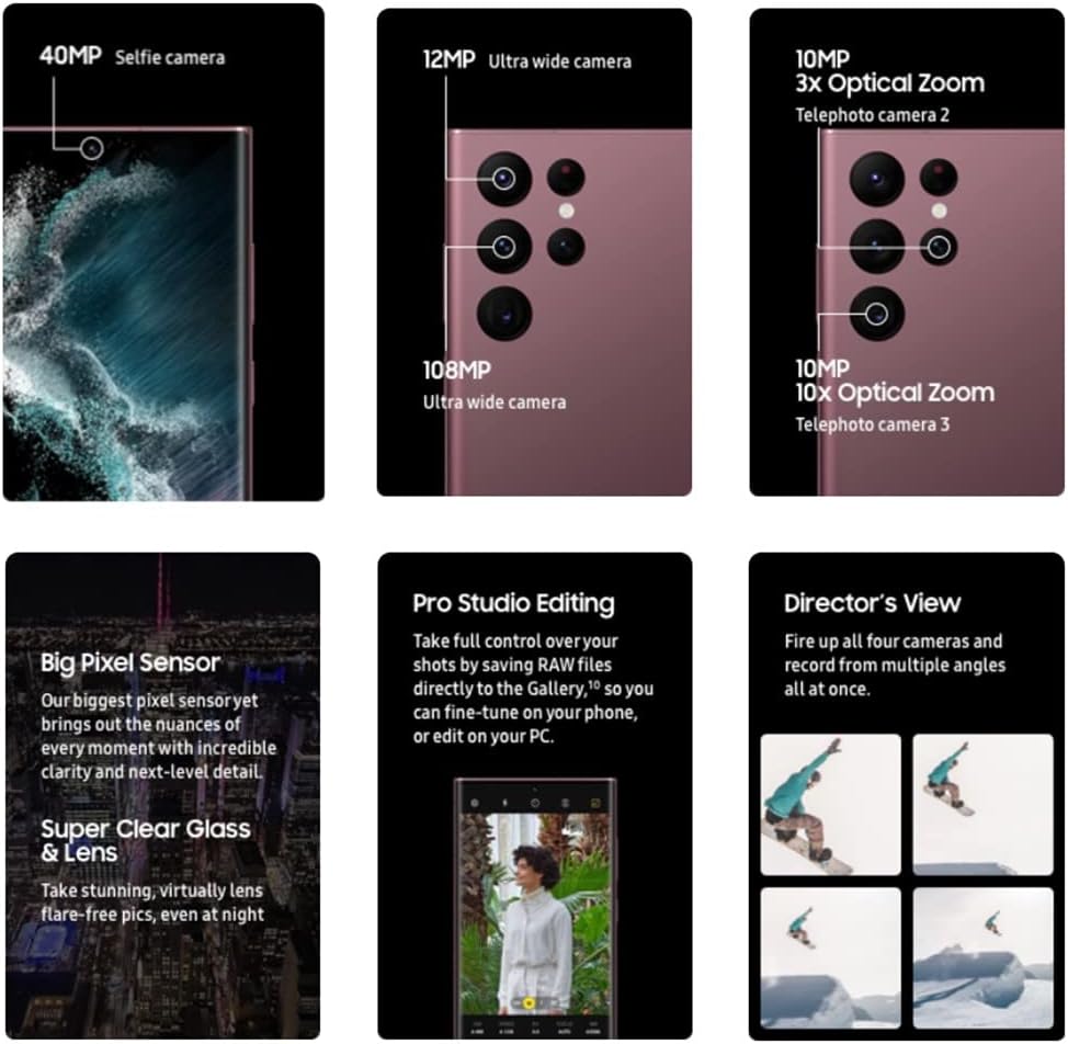 Samsung Galaxy S22 Ultra 5G Factory Unlocked Android Smartphone, 256GB, 8K Camera, 120Hz Refresh Rate, S Pen, Long Battery Life, Fast Processor, US Version, Phantom Black