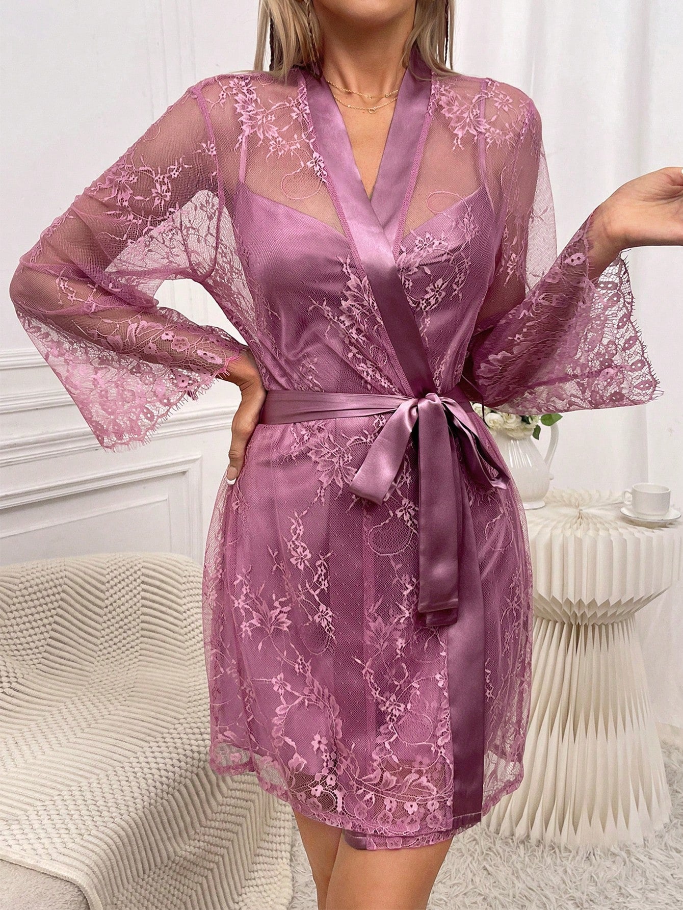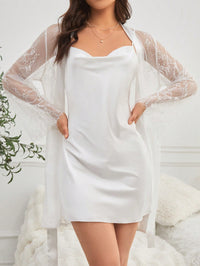 Satin Cami Nightdress & Contrast Lace Robe PJ Set / Pajama Set