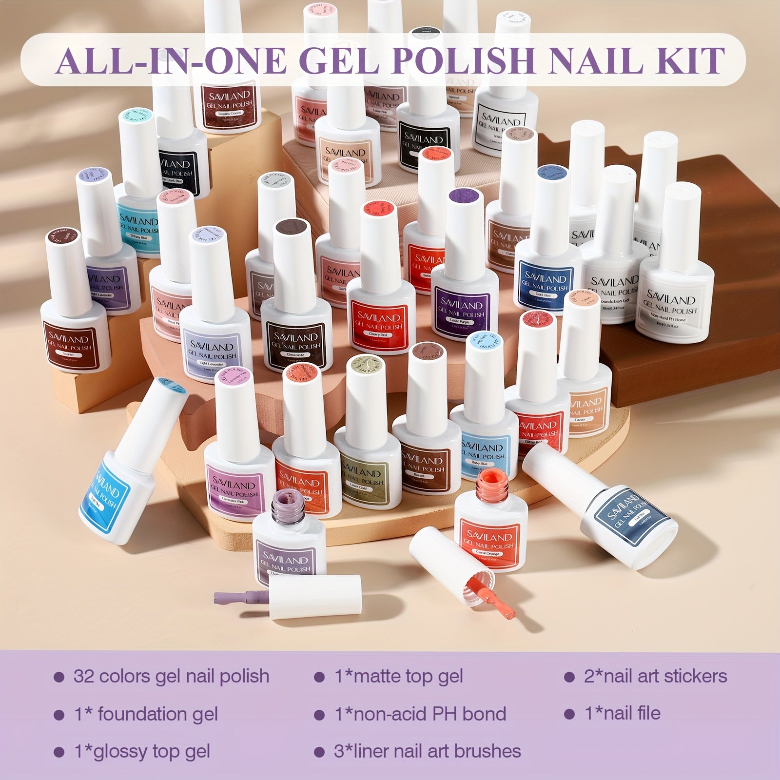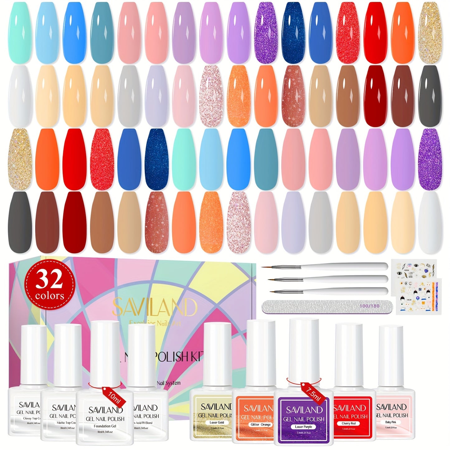 SAVILAND 42pcs Gel Nail Polish Kit-32 Color Nail Polish Set with Bases & Top Gel Coat PH Bond Red Purple Glitter Gel with Nail Brush & File Professional Manicure Kit DIY Nail Art Daily Gift