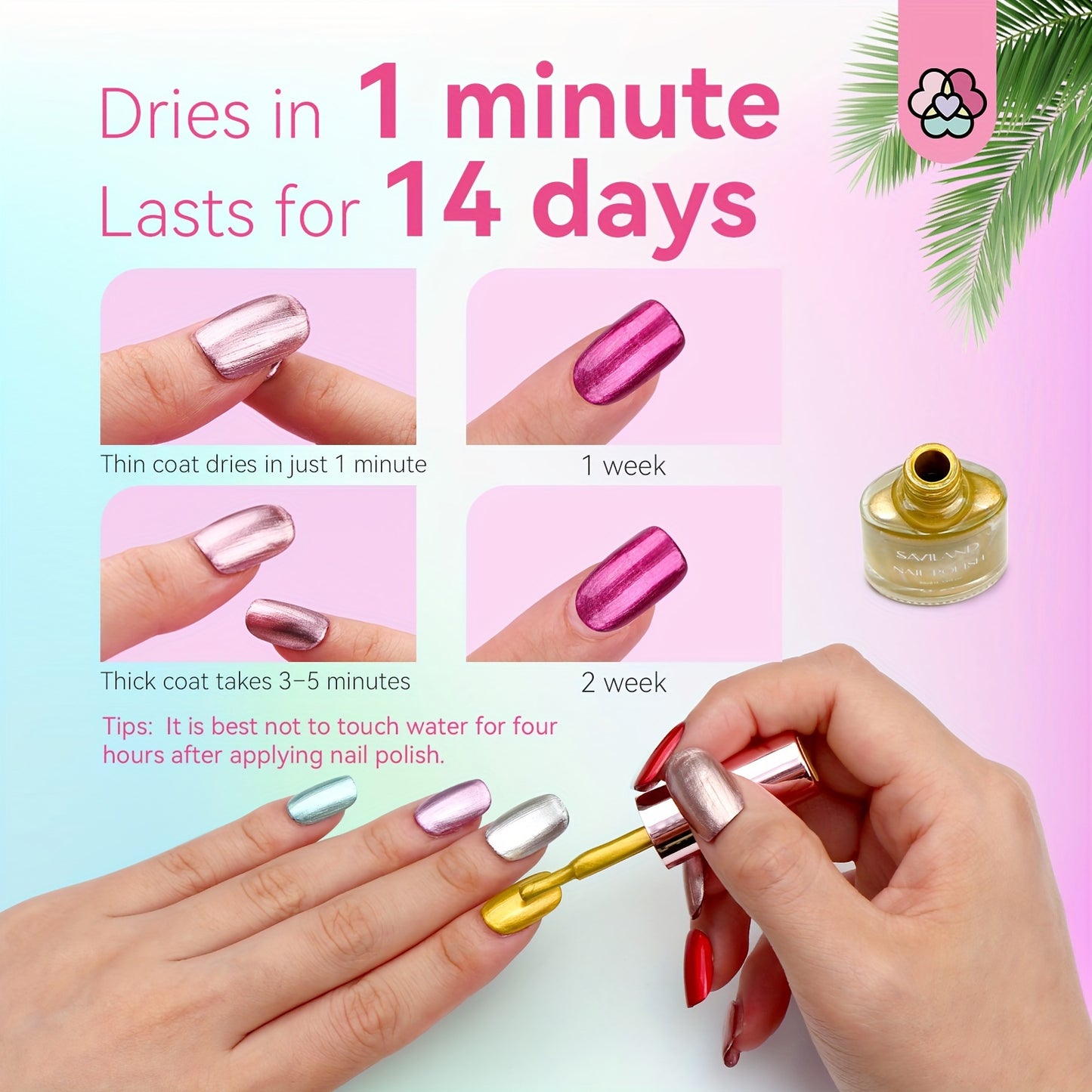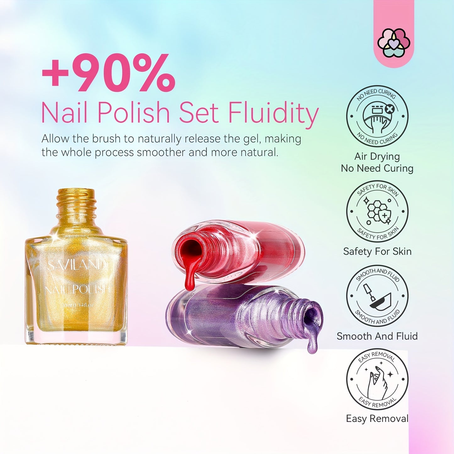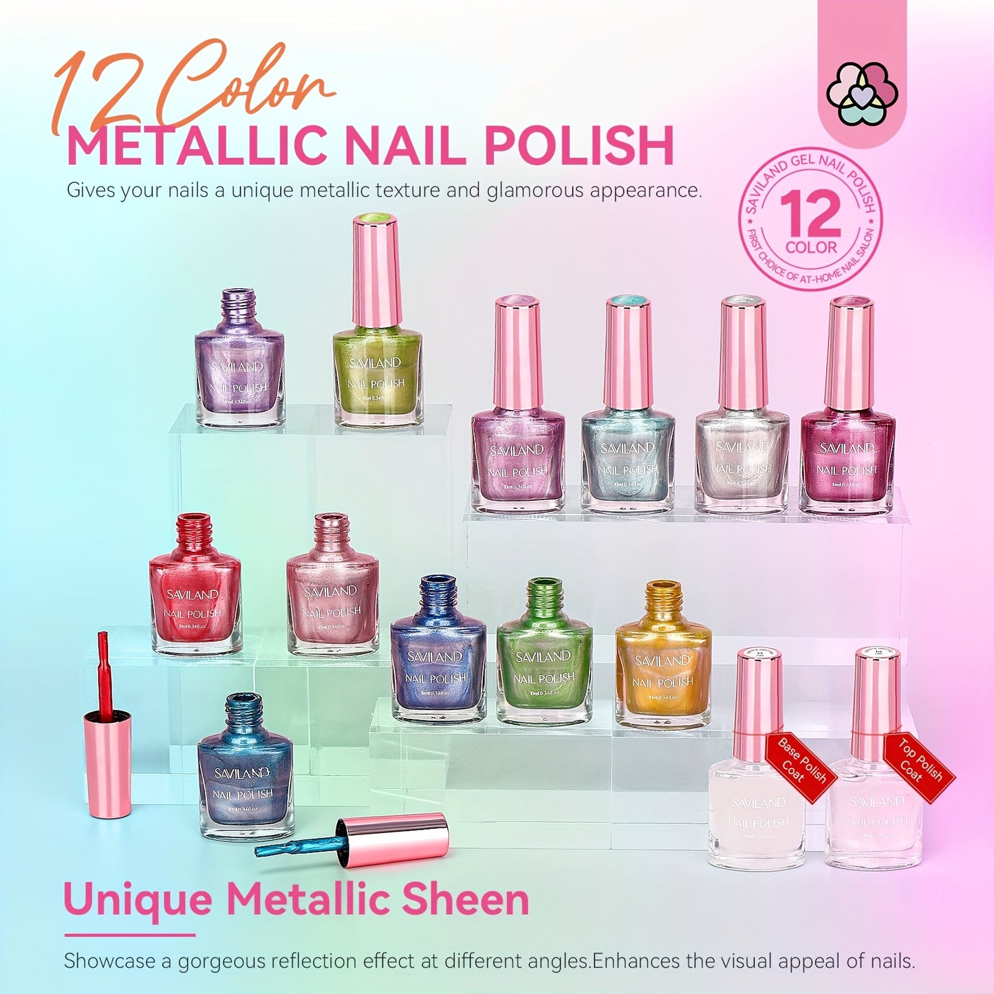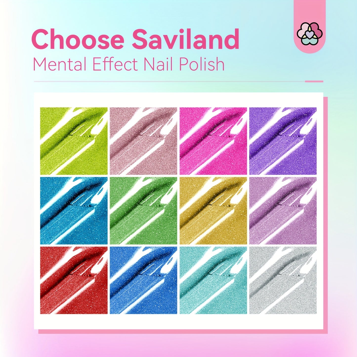SAVILAND Chrome Nail Polish Collection: 12 Shades of Reflective Metallic Glitter Nail Polish 0.34Oz Holographic Red, Silver, Pink Nail Polish Fast-Drying Base And Top Coat for Fingernails, Toenails, And French Manicure Designs