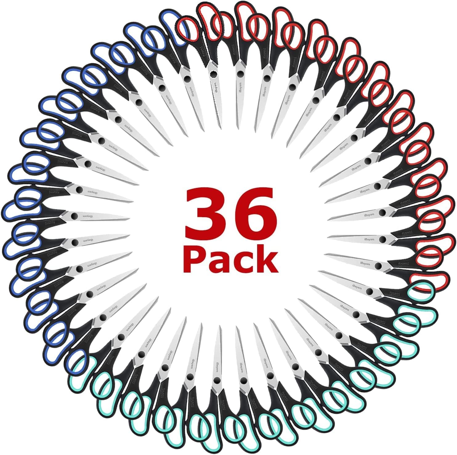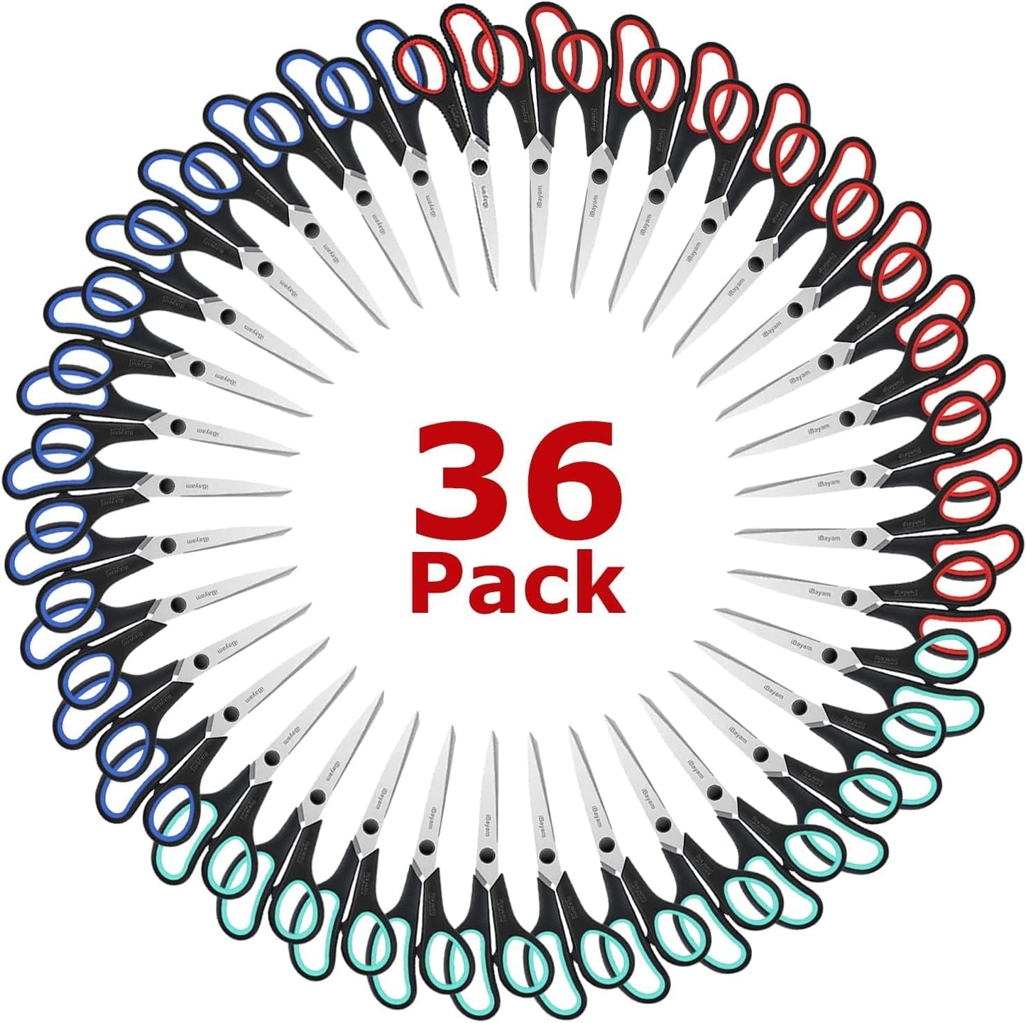 Scissors, iBayam 8" All Purpose Scissors Bulk 3-Pack, Ultra Sharp 2.5mm Thick Blade Shears Comfort-Grip for Office Desk Accessories Sewing Fabric Home Craft Teacher School Supplies, Right/Left Handed