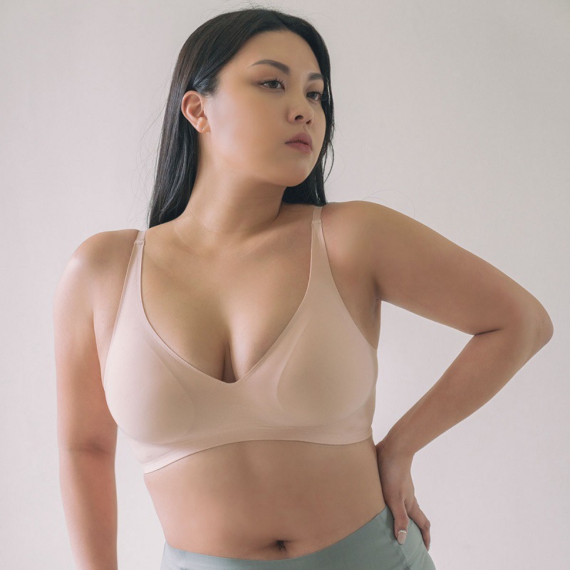 Seamless Underwear V neck Non Steel Ring Big Breast Detachable Chest Pad Thin Soft Support Comfortable Bra