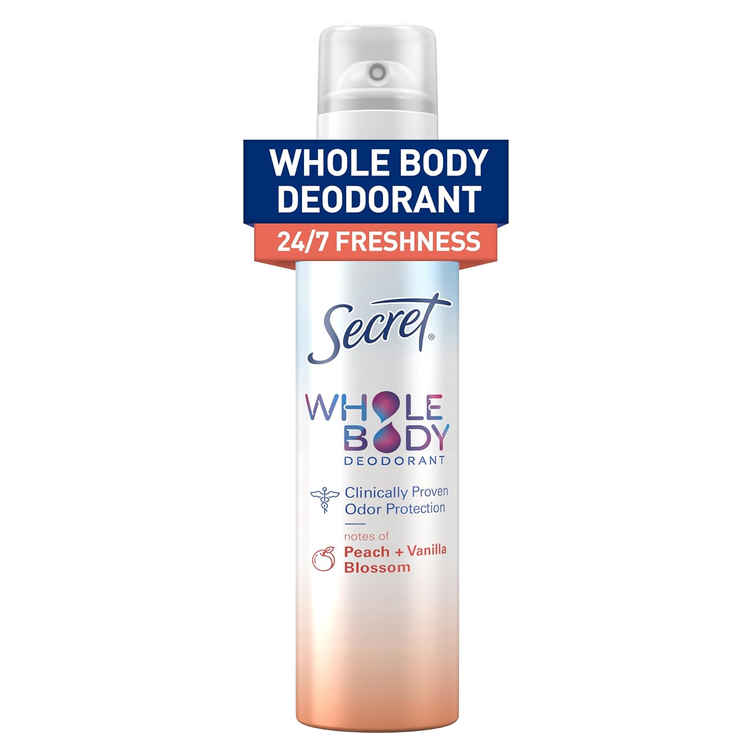 Secret Whole Body Deodorant Spray for Women, Peach & Vanilla Scent, Aluminum Free Deodorant Spray, 72 HR Odor Protection, 3.5 oz