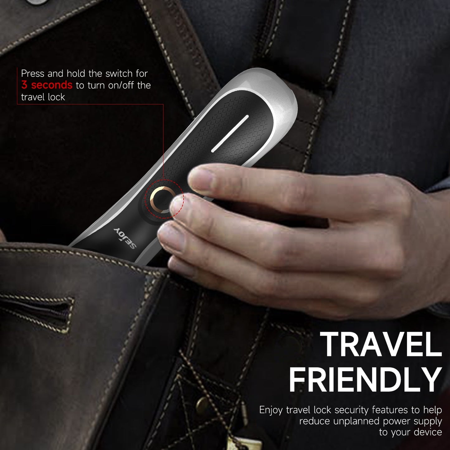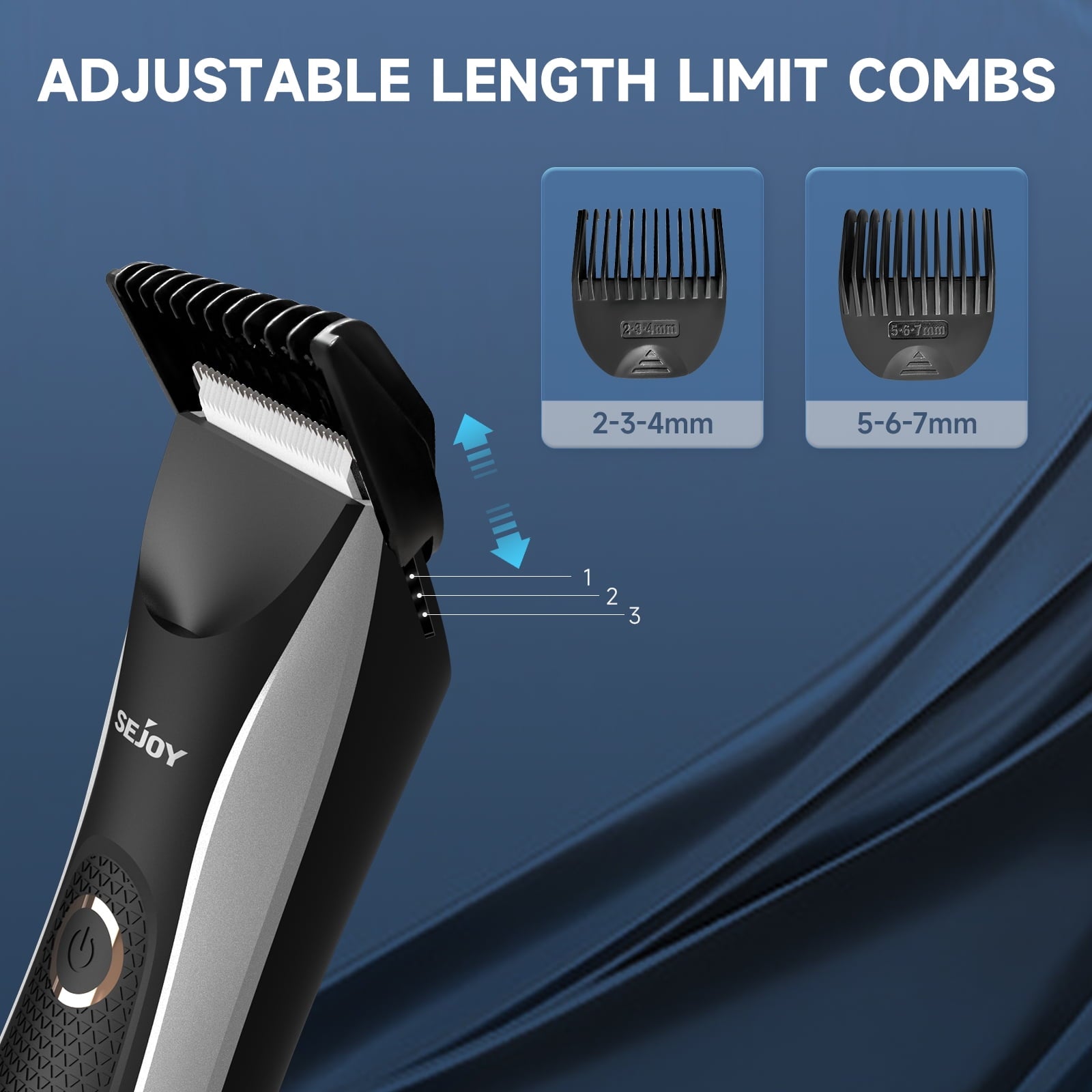 Sejoy body hair trimmer for men supports IPX7 waterproof for wet or dry use, even in the shower. Rinseable under running water, easy to clean. The special built-in LED light helps to trim your hair easily in dim light and see the thinnest hair clearly to ensure you get a safe and thorough shaving hair experience.