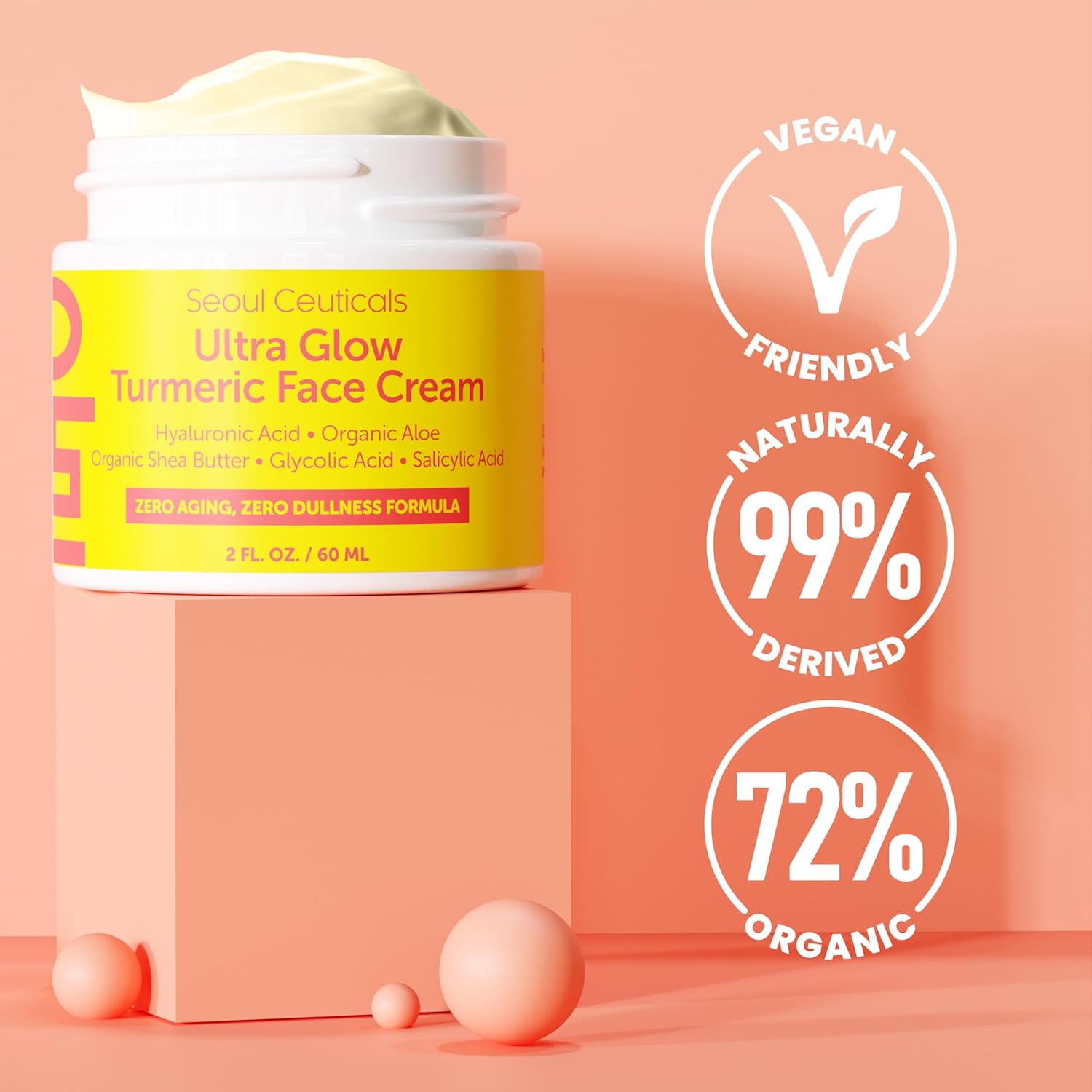 SeoulCeuticals Korean Skin Care Turmeric Cream – Face Moisturizer for Dull Dry Skin - Korean Skincare K Beauty for Glass Skin 2oz