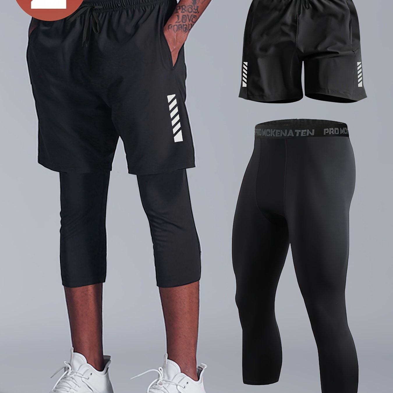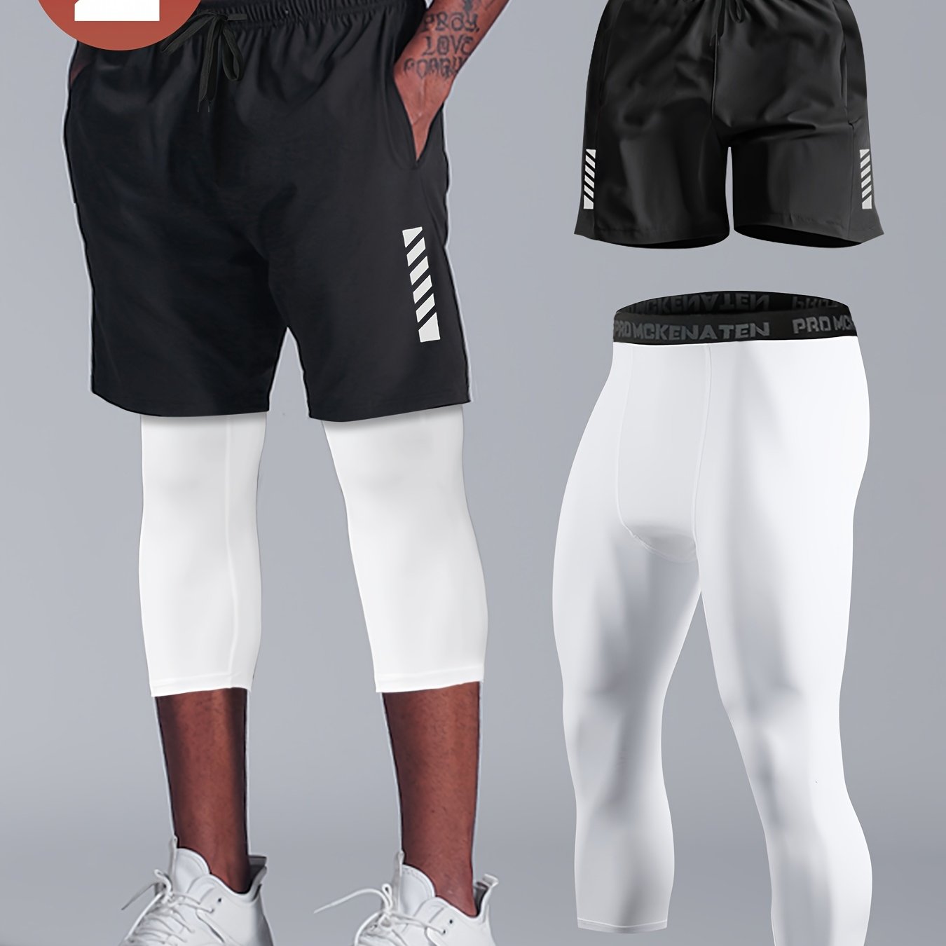 Set Of 2, A Combination Of Large Shorts And Skinny Cropped Pants, Men'S Sports Shorts - Quick-drying, Breathable, Sweat-wicking, Suitable For Running, Cycling, Hiking And Swimming.